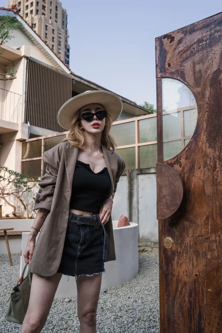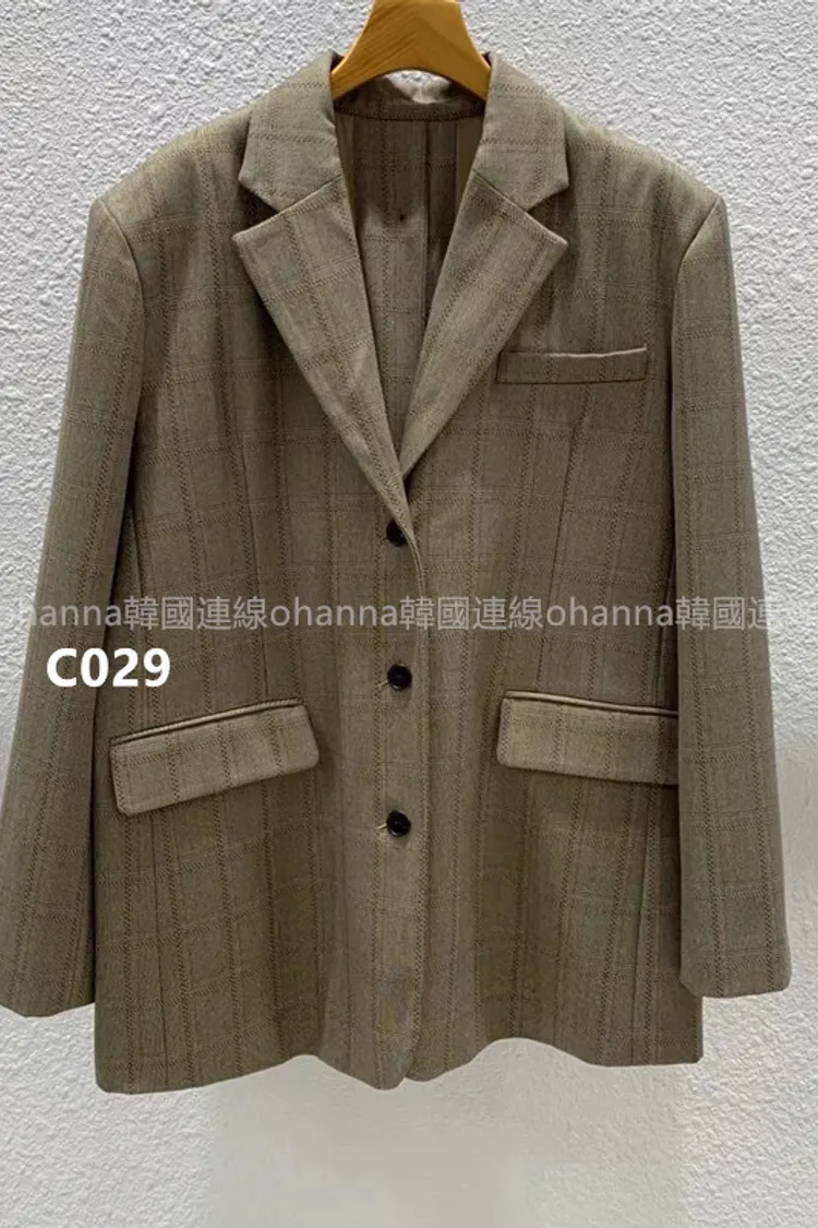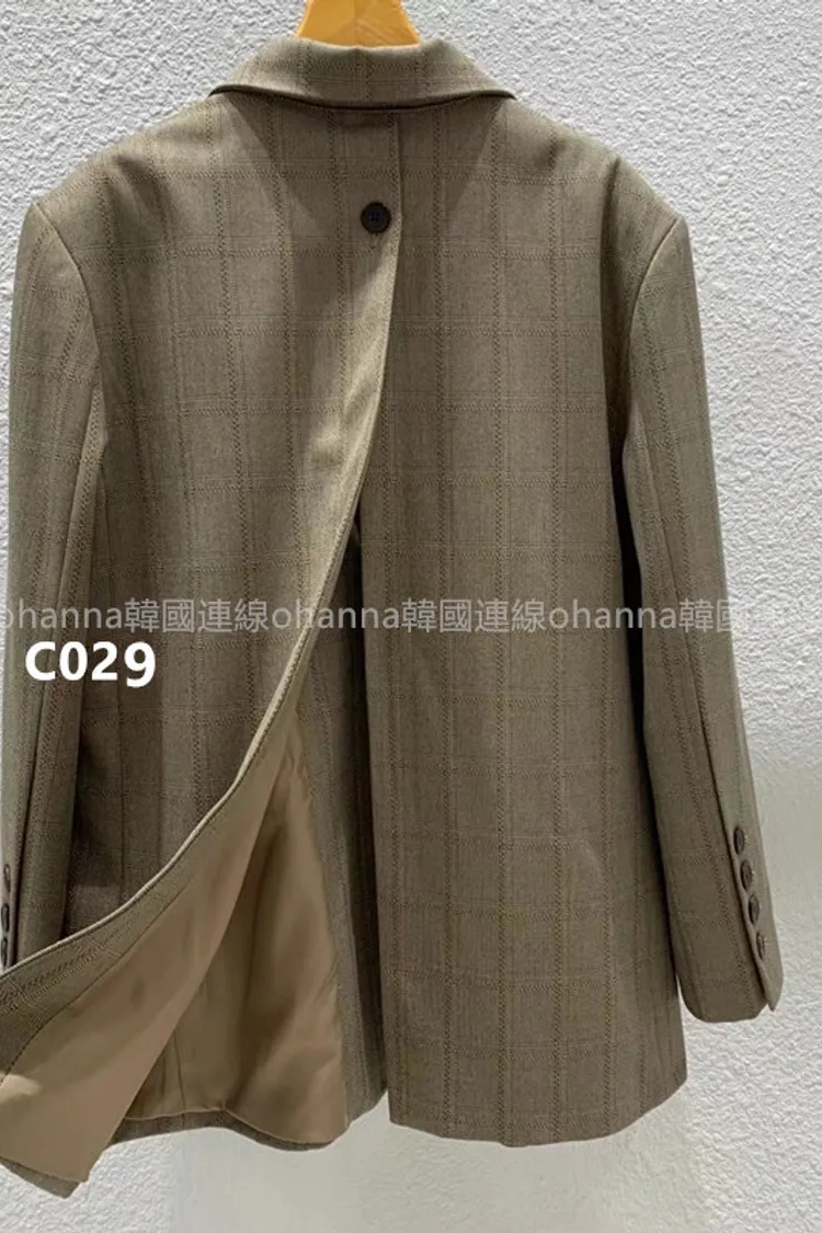 C029駝格紋後開叉西裝外套