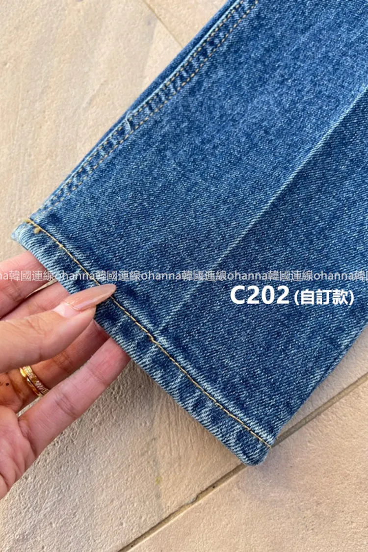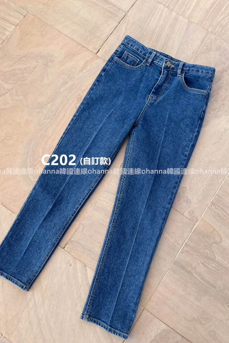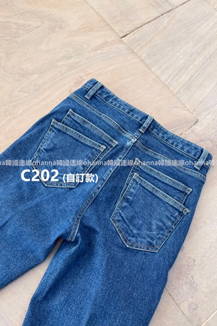 C202(自訂款)深藍前刷白線小直筒百搭牛仔褲