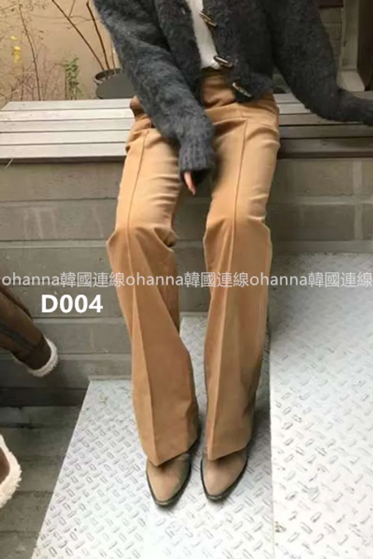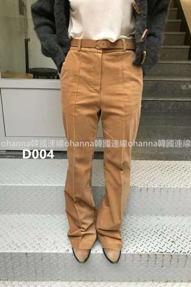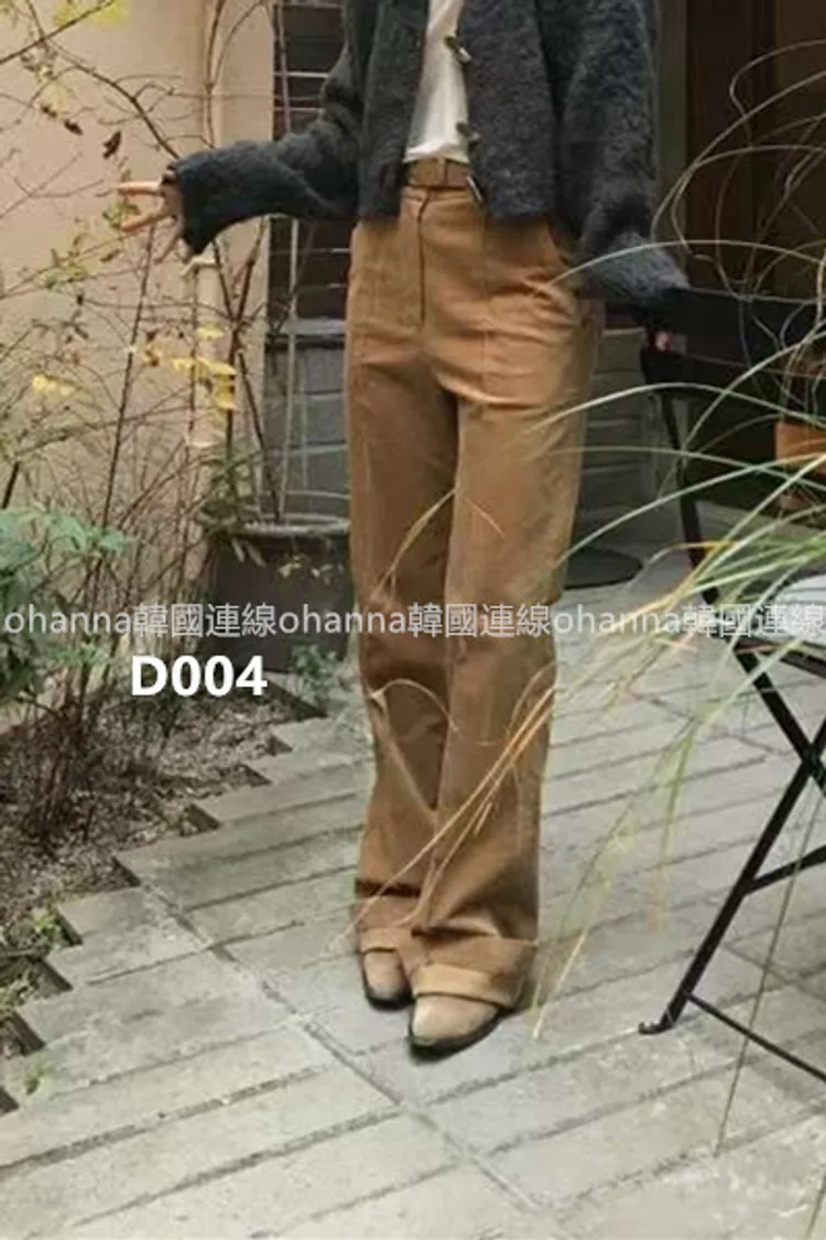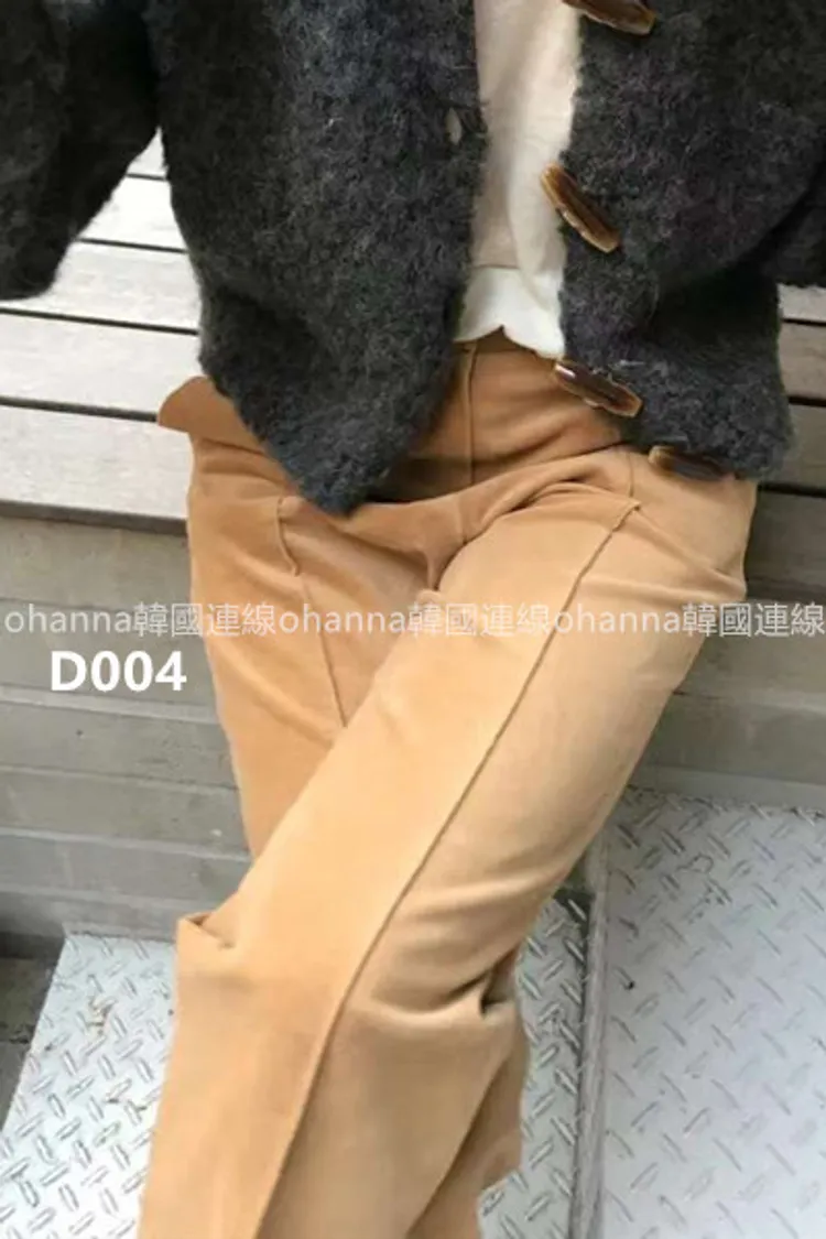 D004燈芯絨駝色前壓線復古款小直筒褲