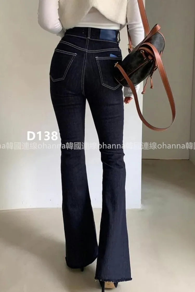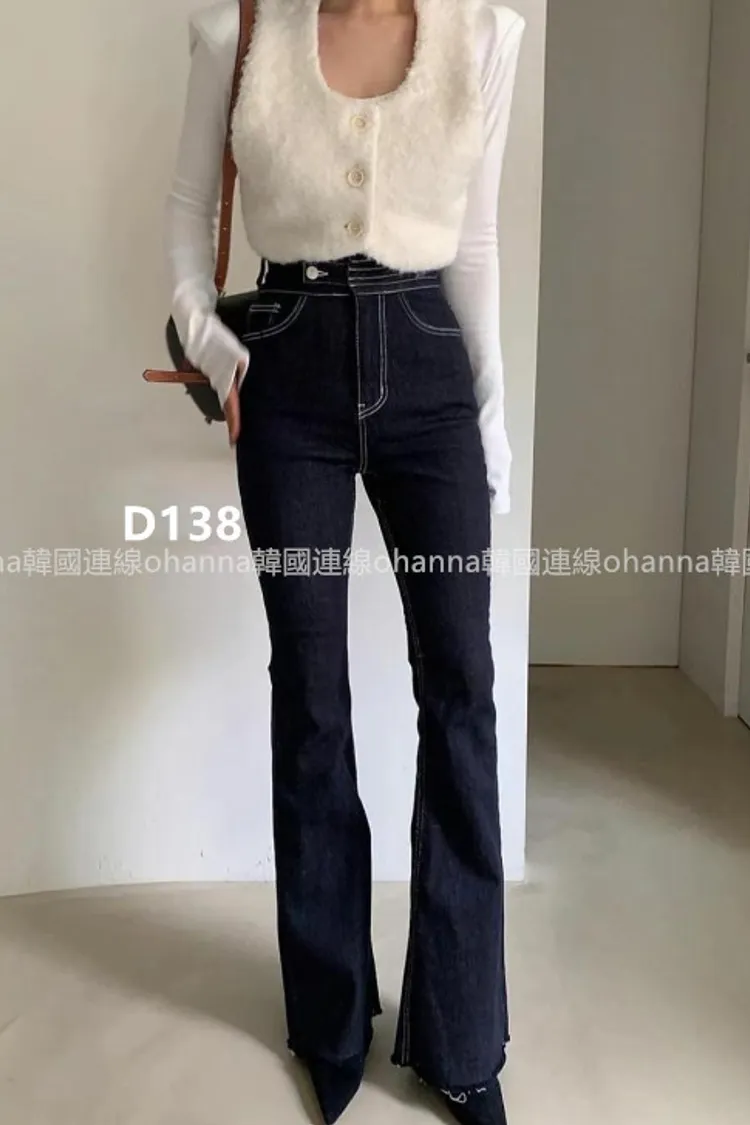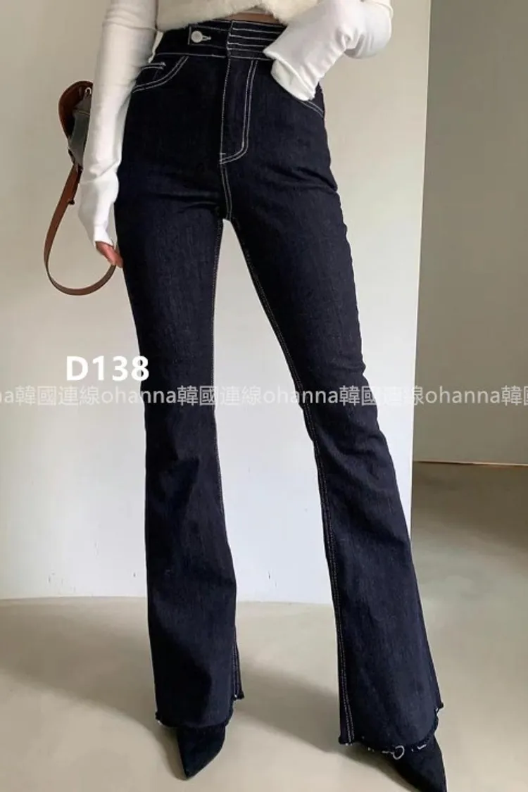 D138藍色滾白邊顯瘦靴型牛仔褲