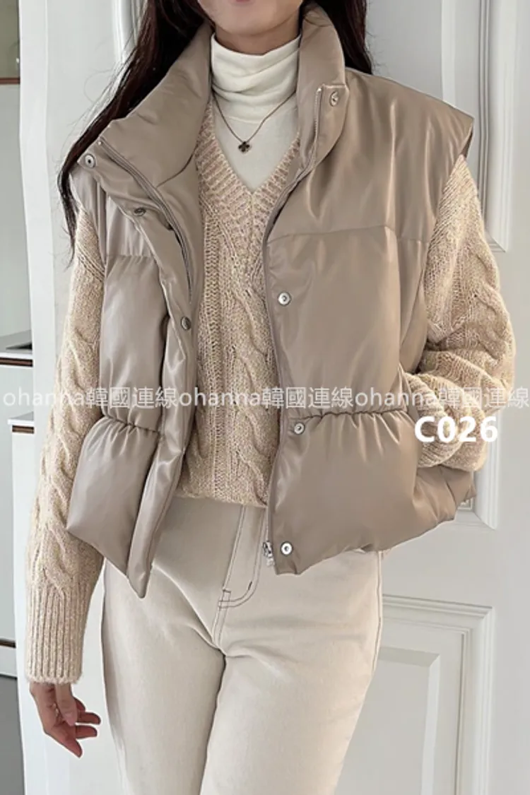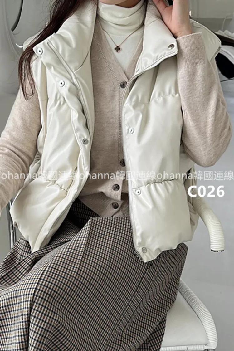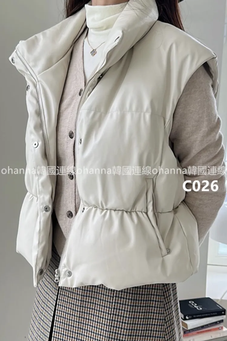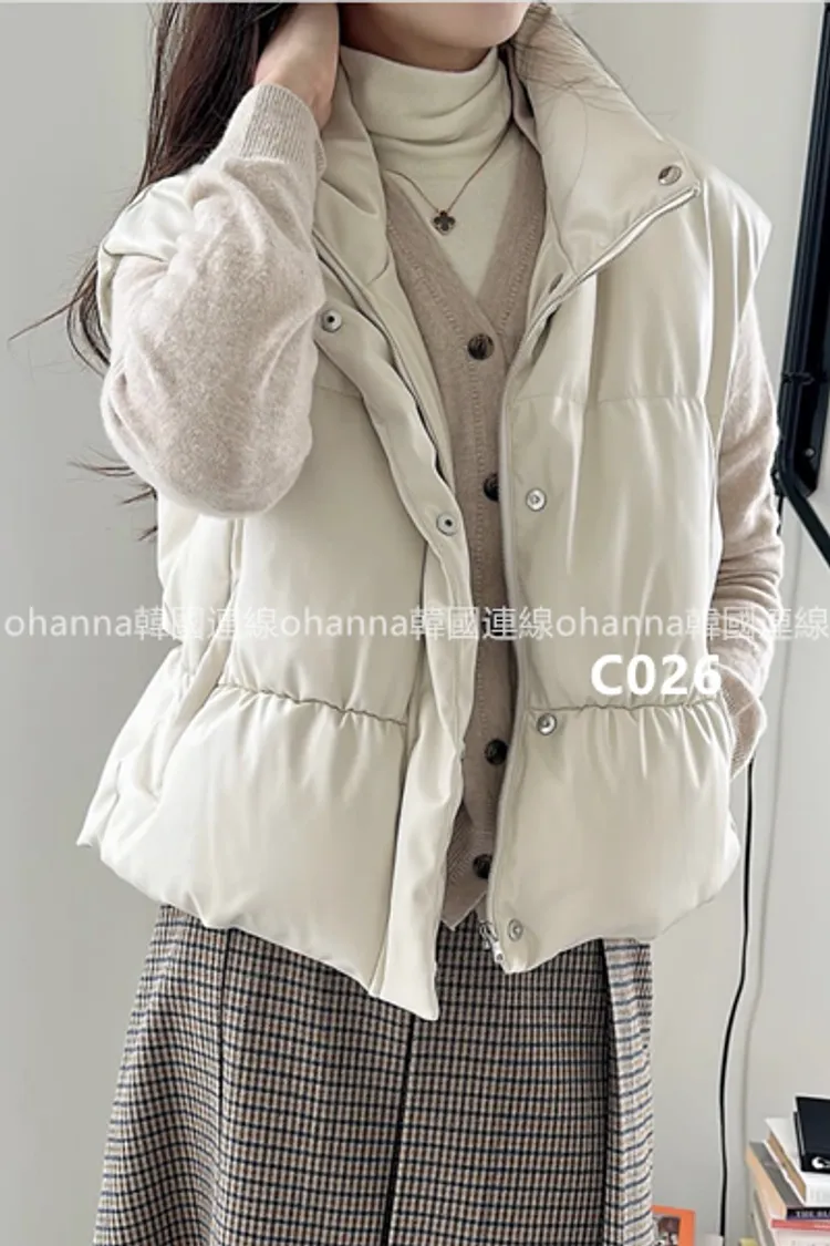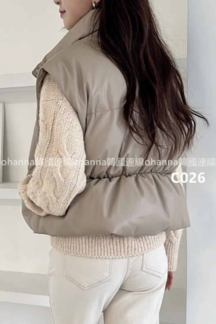 C026後腰抓皺鴨絨皮革背心