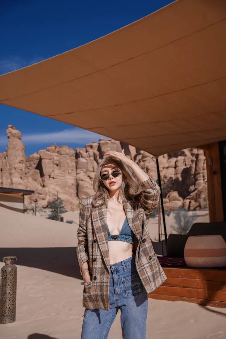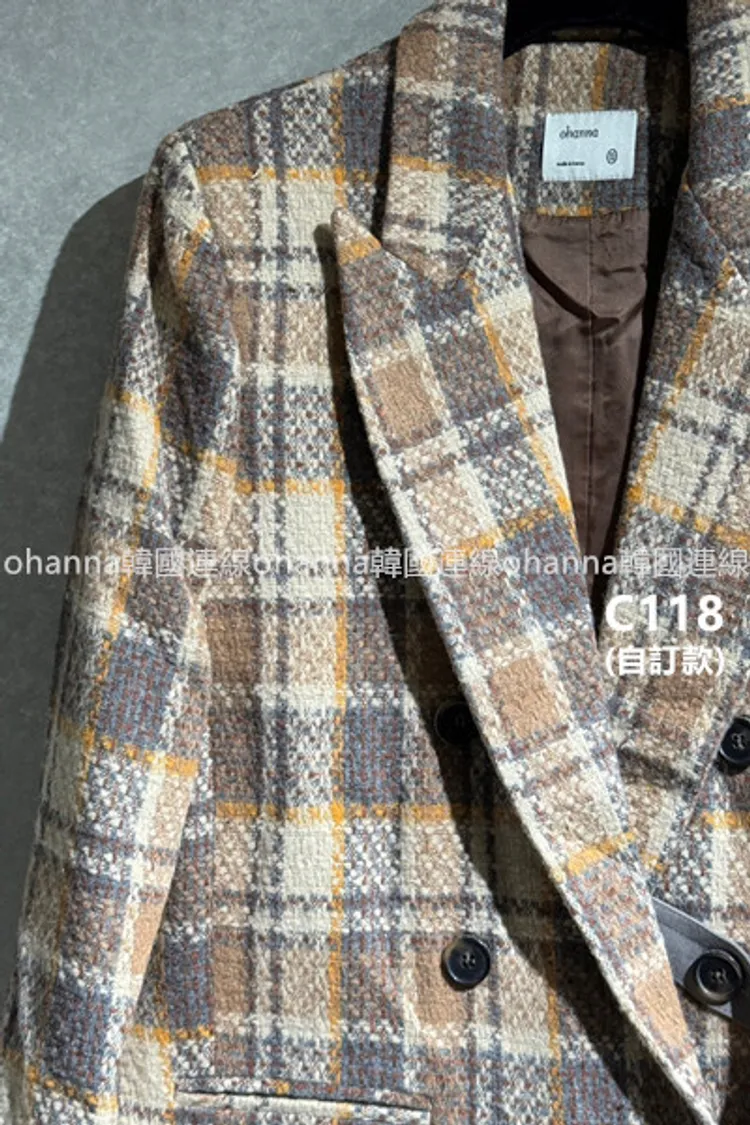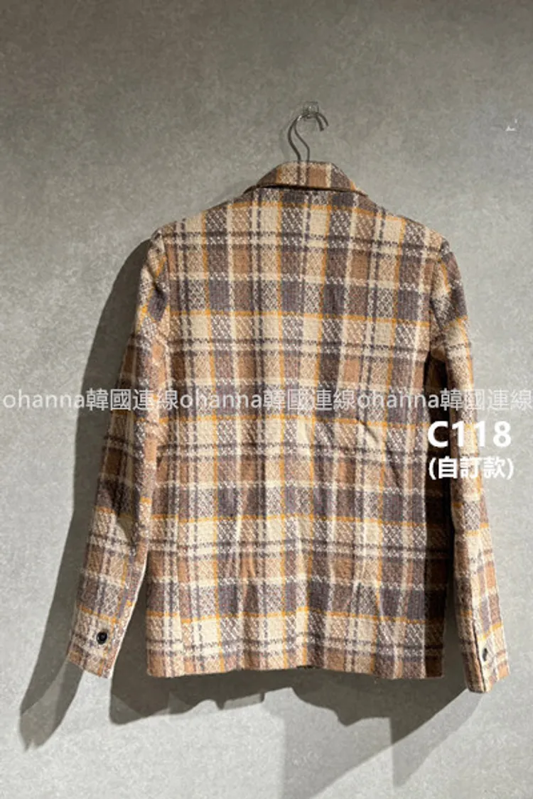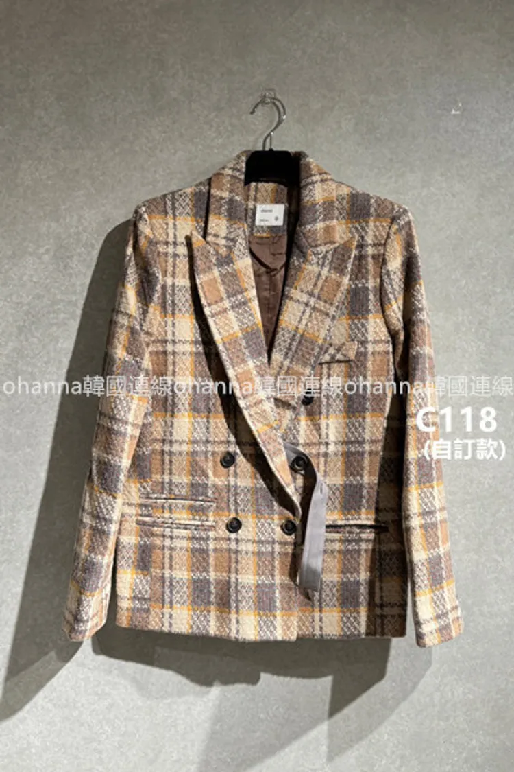 C118(自訂款)黃咖色混色格紋西裝外套