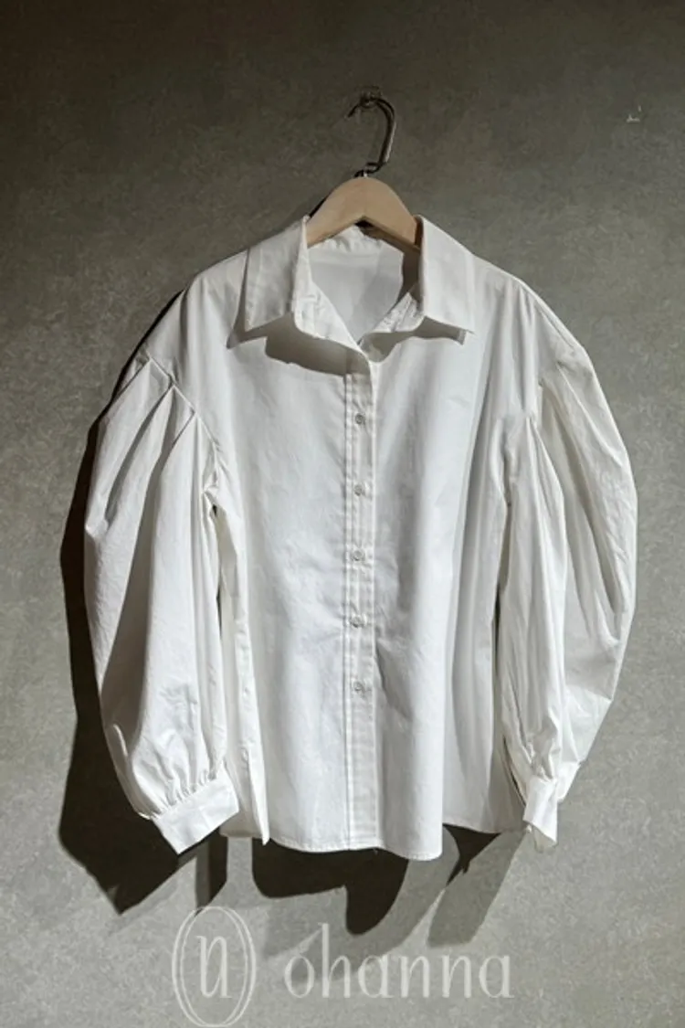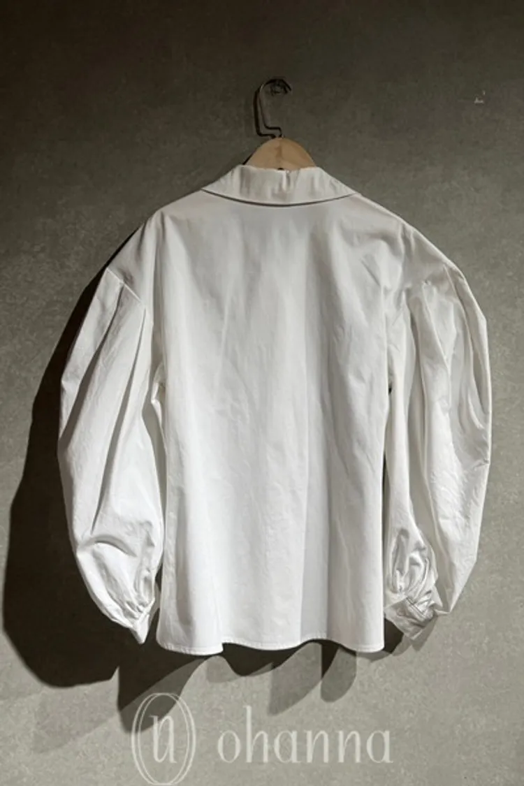 D181(自訂款)白色肩壓褶澎袖襯衫