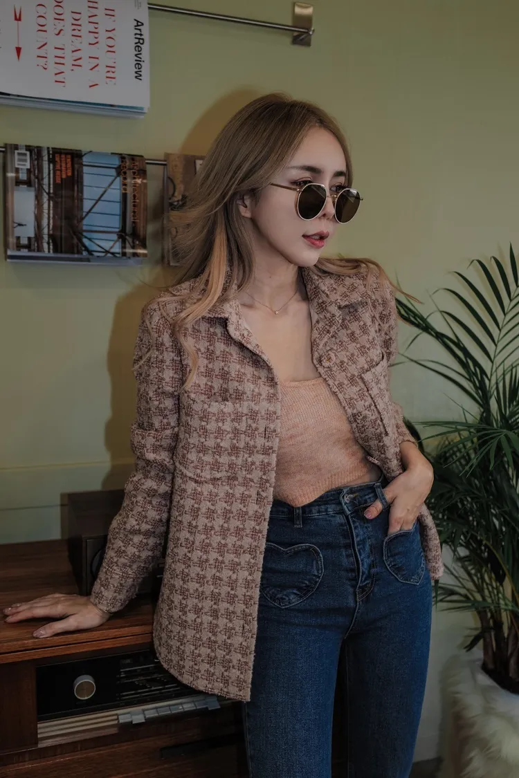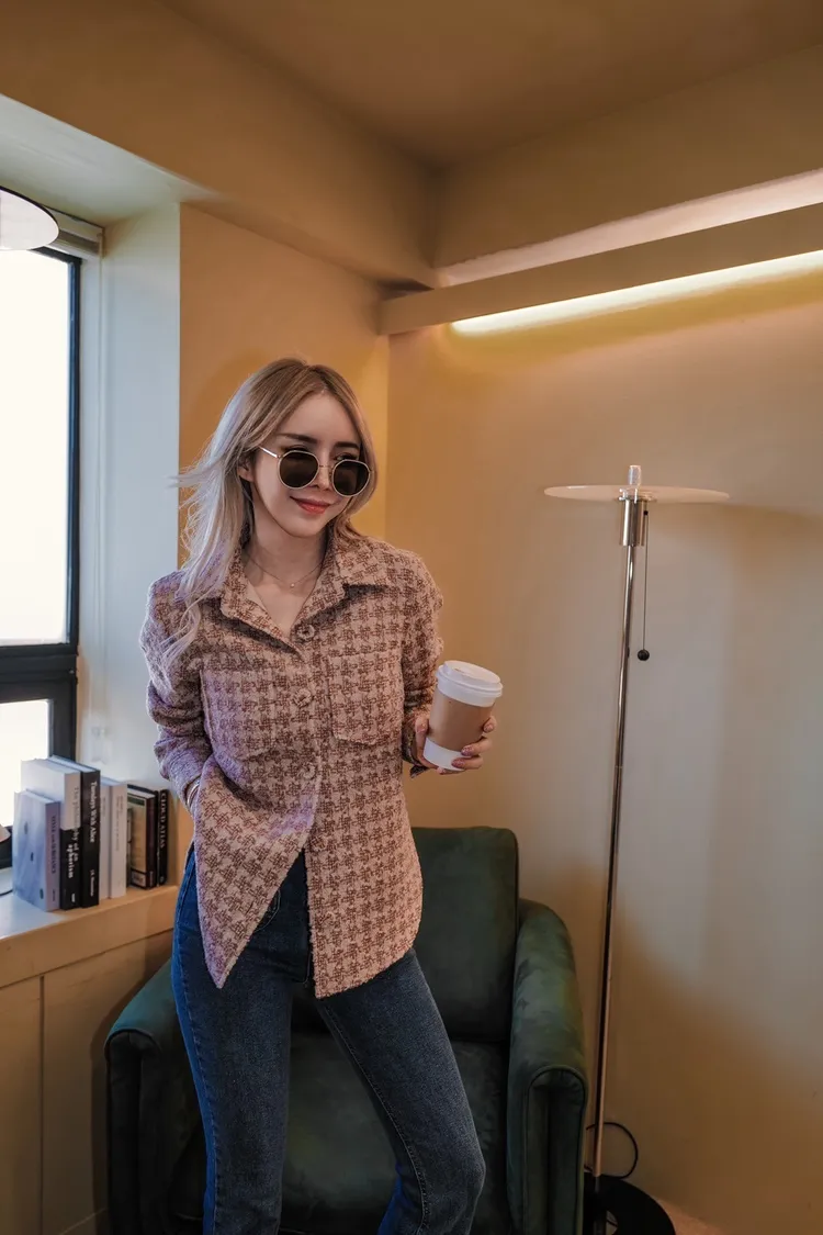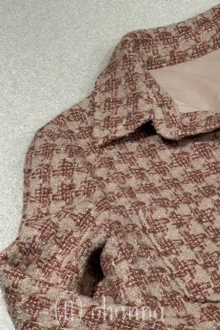 D184(自訂款)駝咖混色格紋下擺圓弧襯衫
