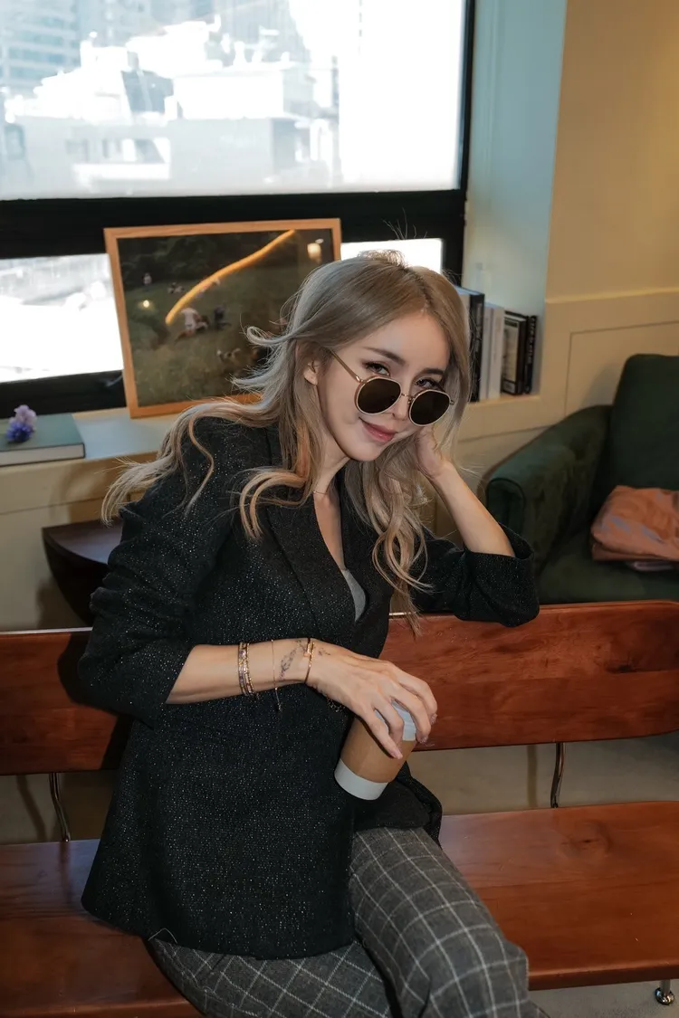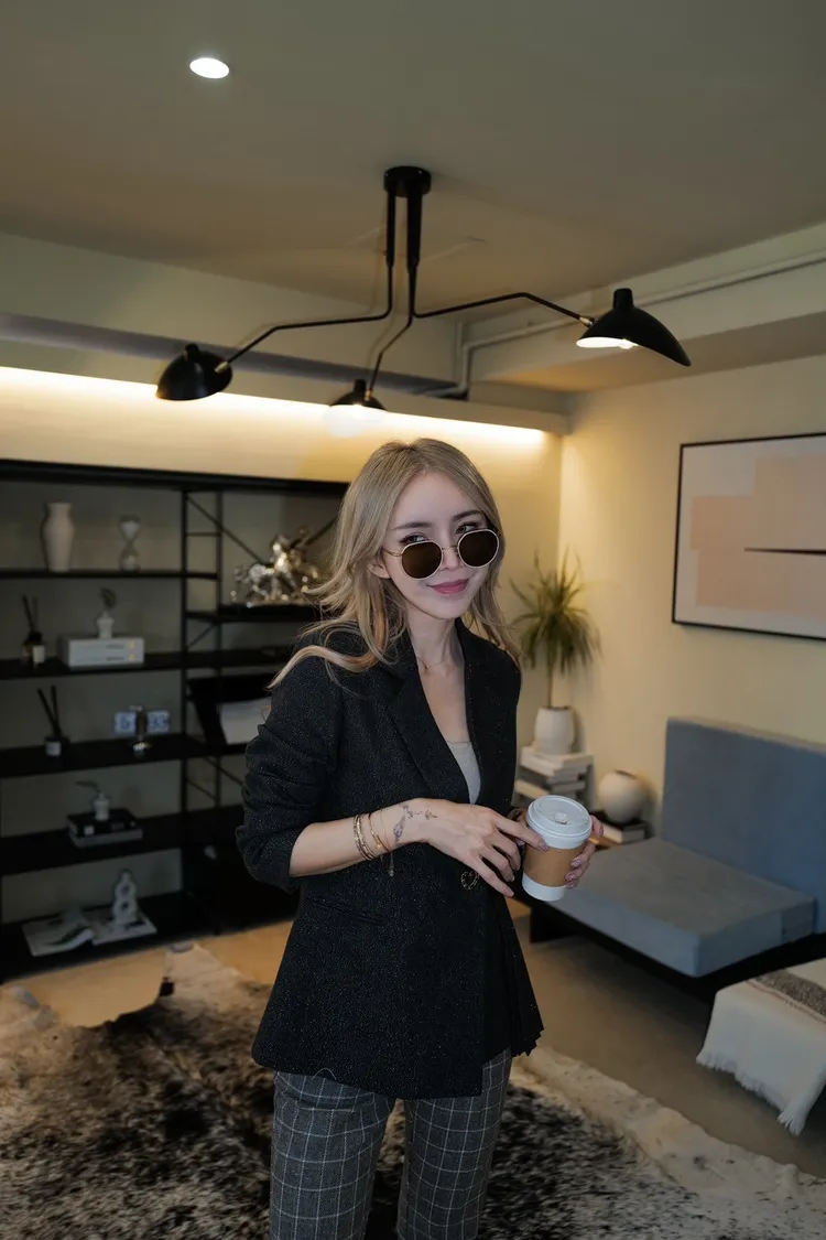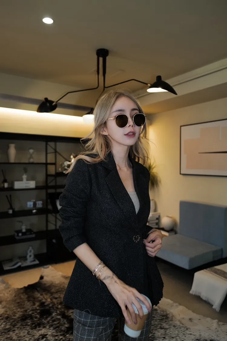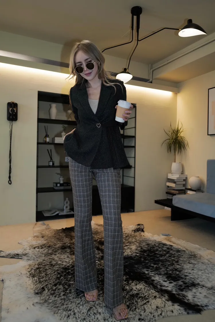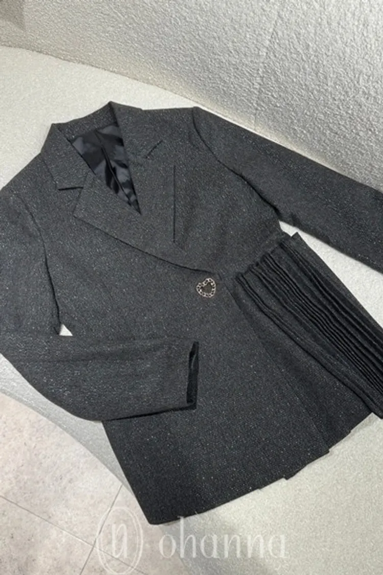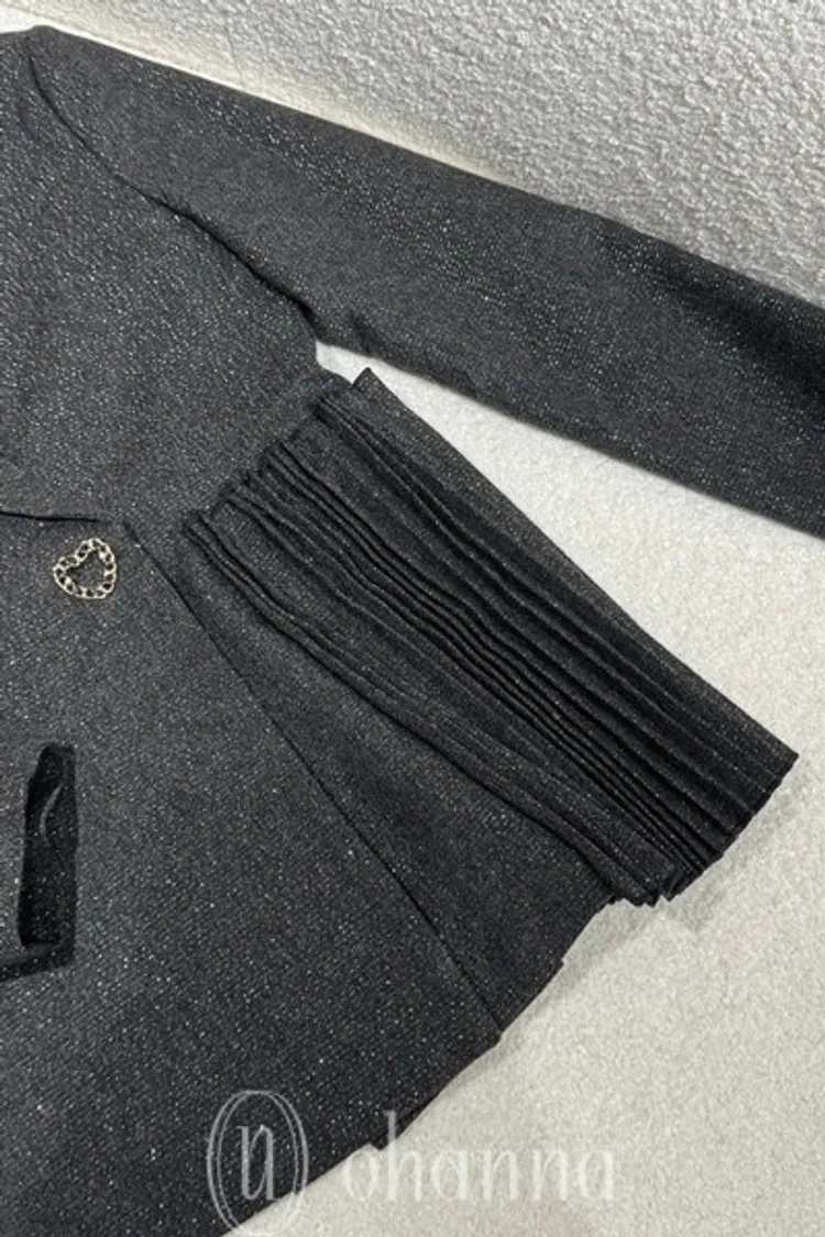 D185(自訂款)深灰閃亮側接百褶簍空愛心釦西裝外套