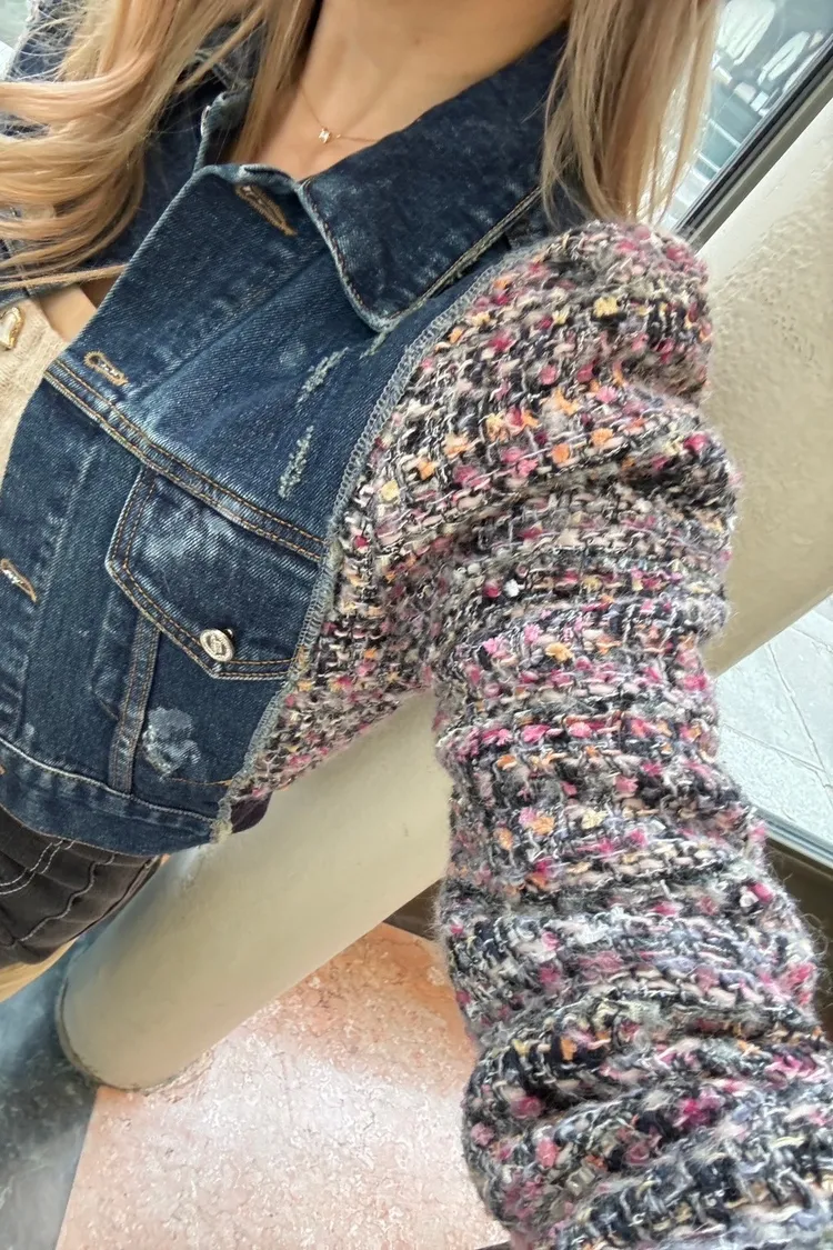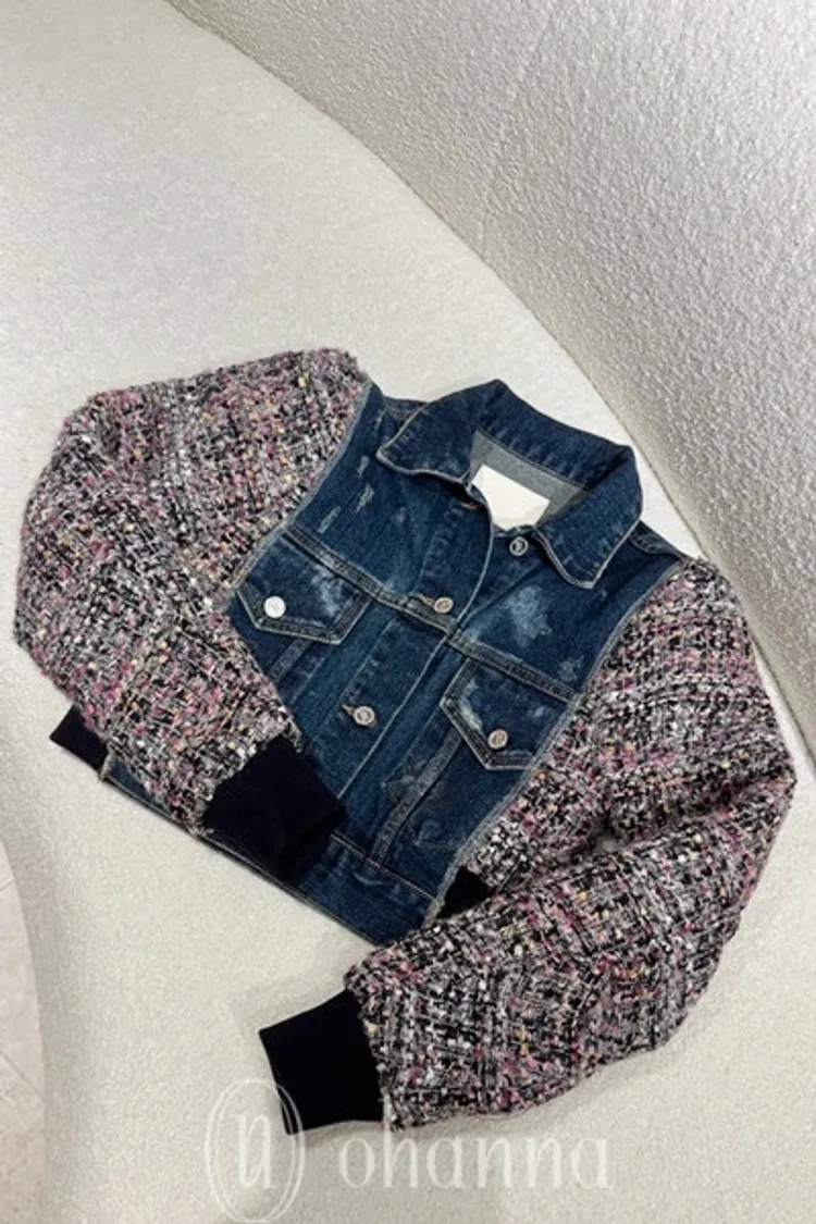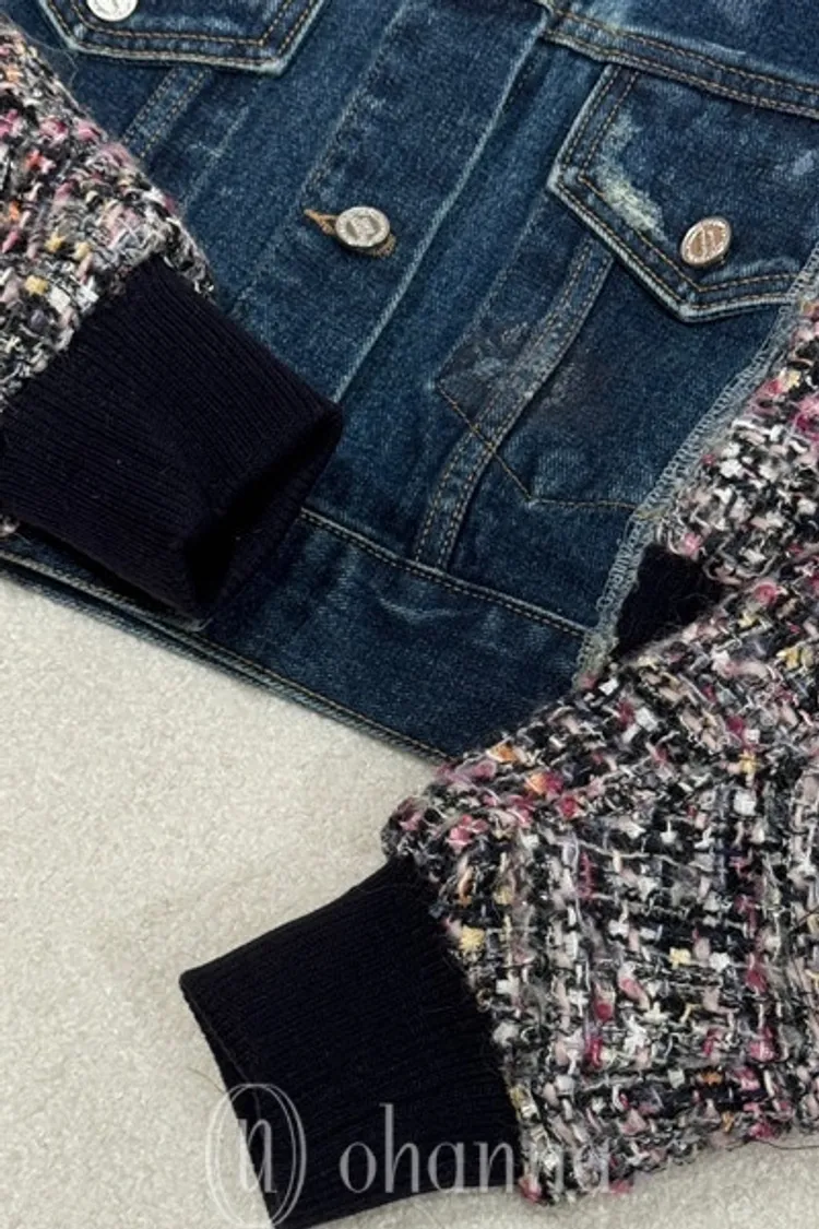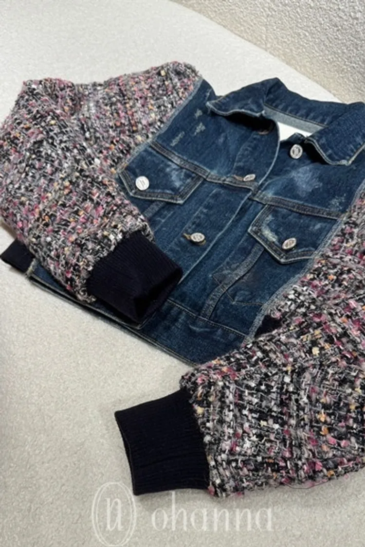 D196(自訂款)袖接紫混色毛呢牛仔外套