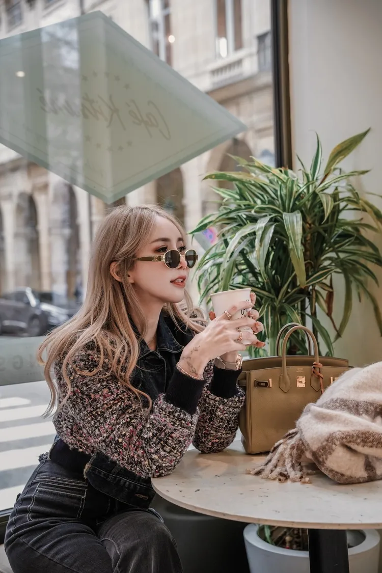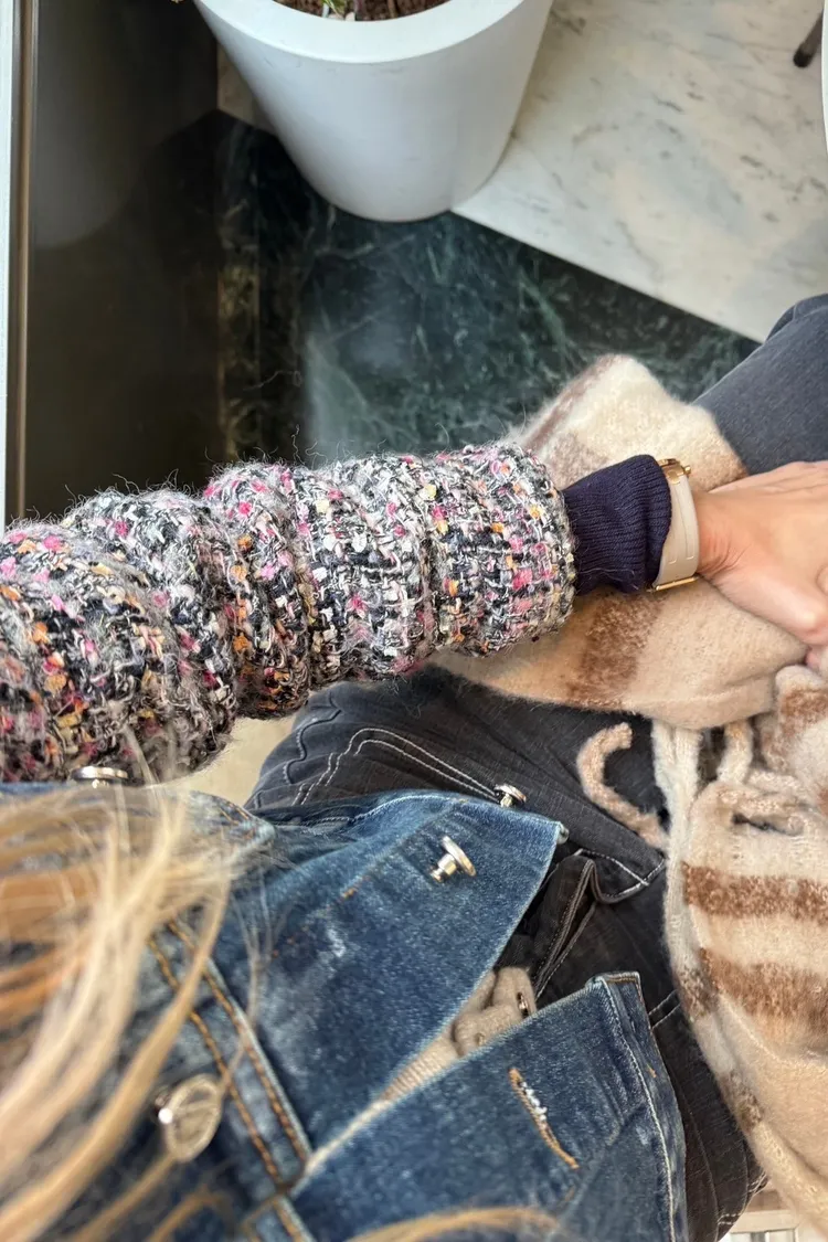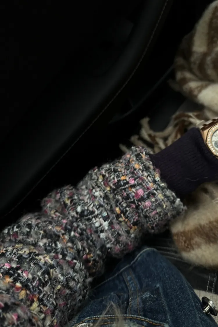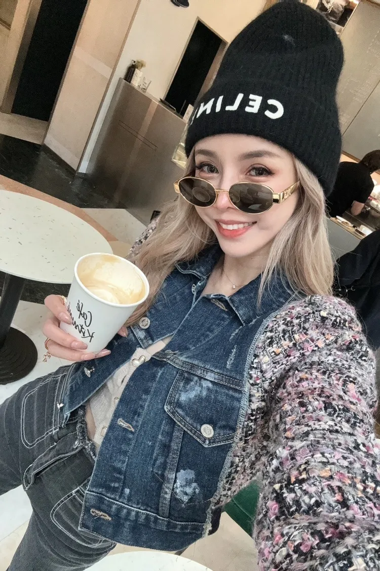 D196(自訂款)袖接紫混色毛呢牛仔外套