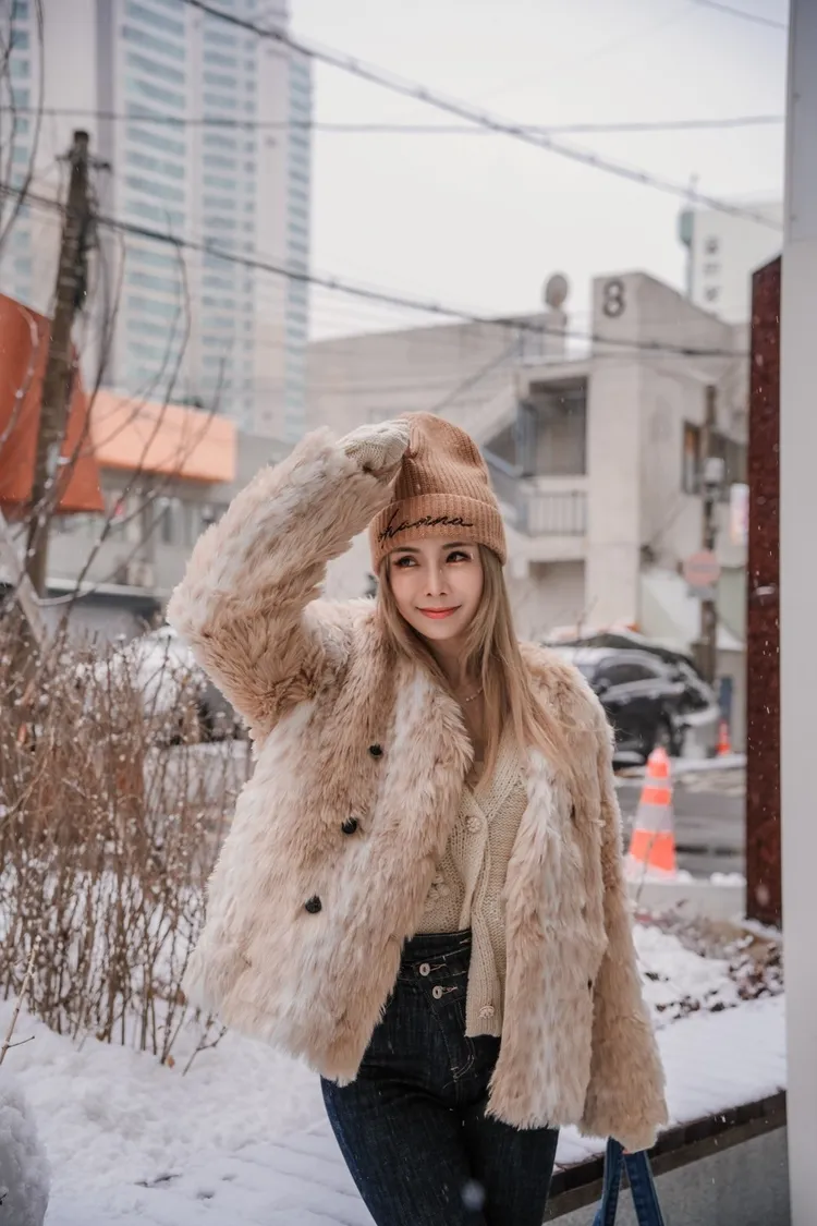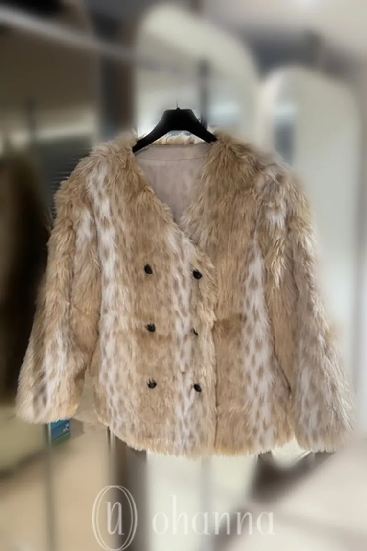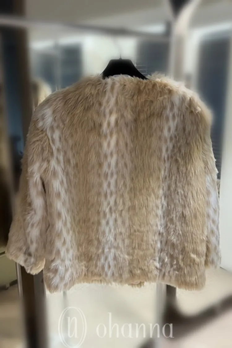 D201(自訂款)杏白漸層豹紋皮草外套