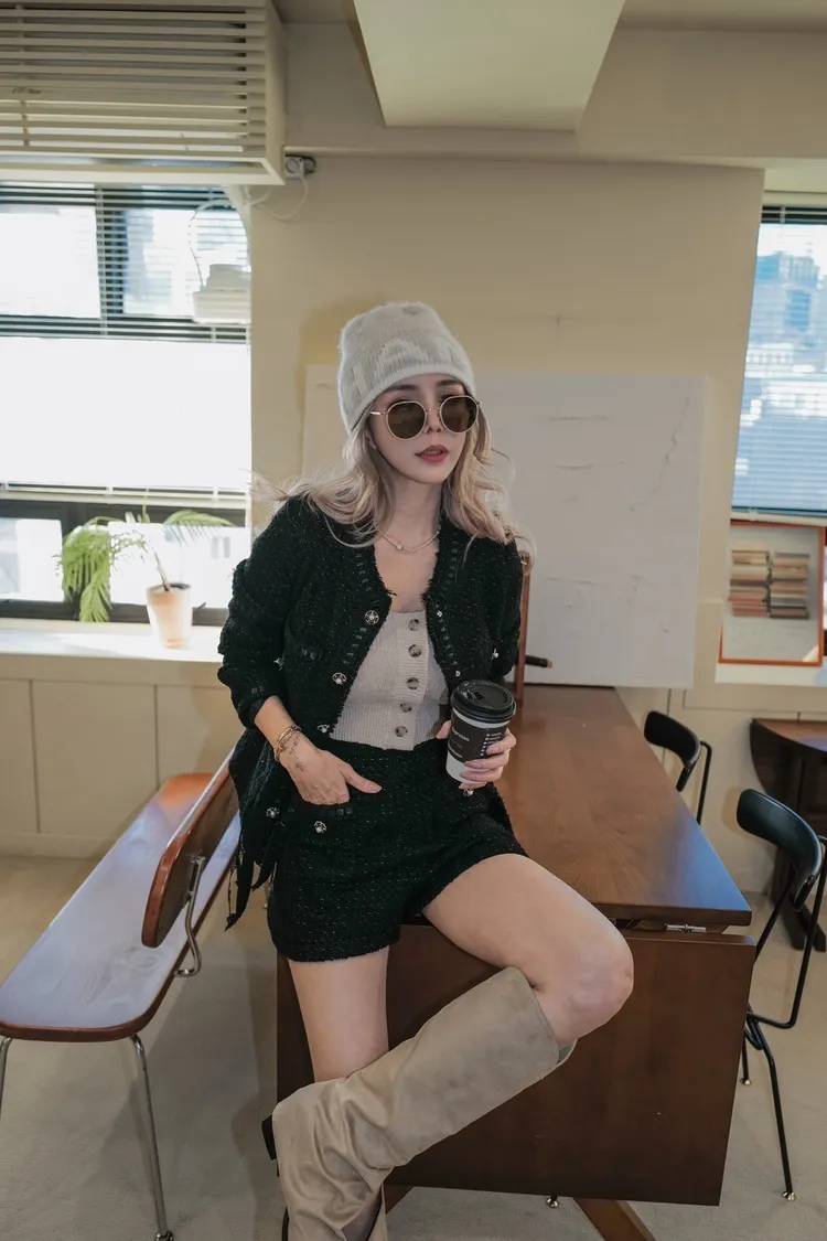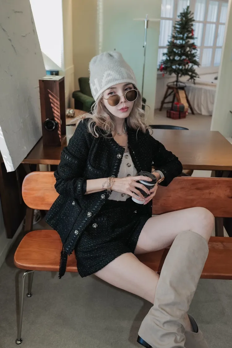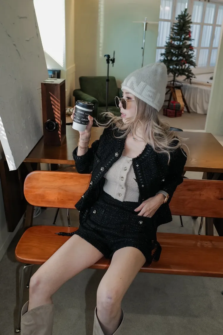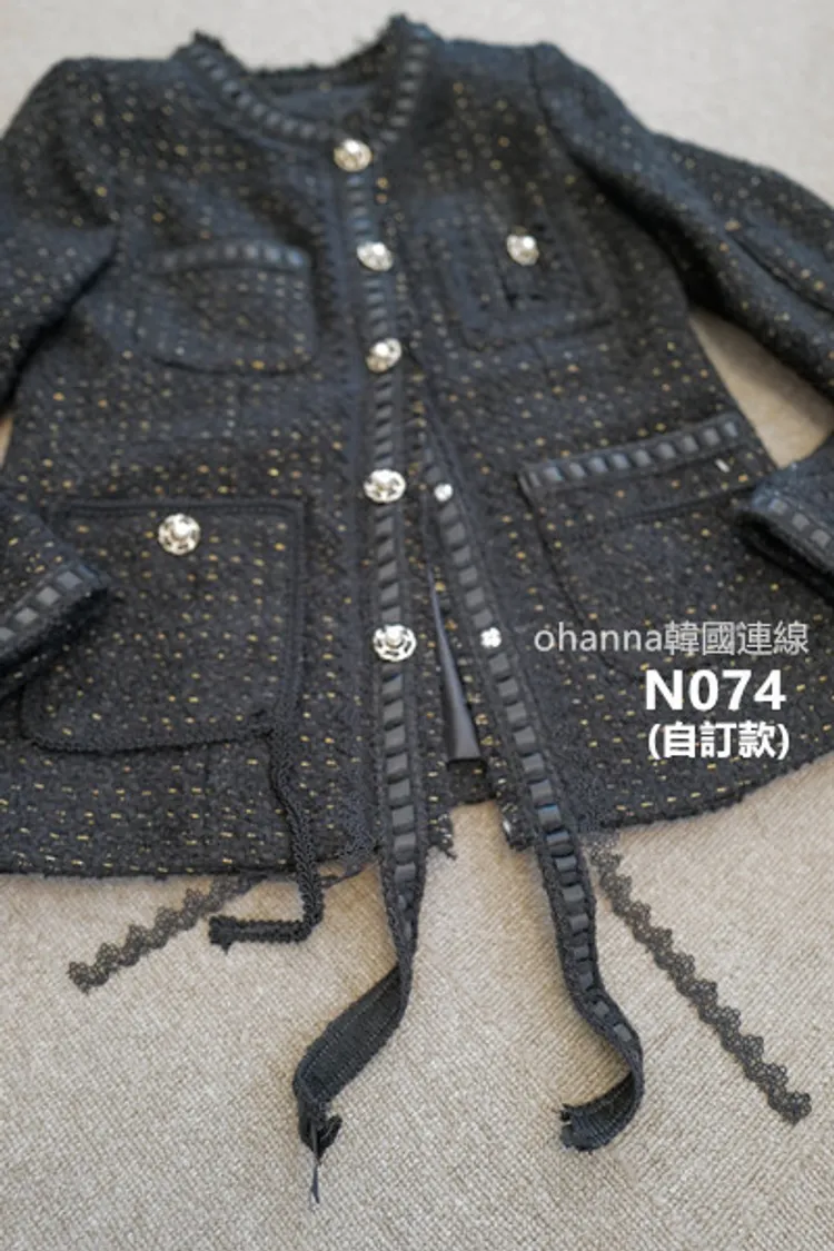 N074(自訂款)黑色金線滾蕾絲香香外套