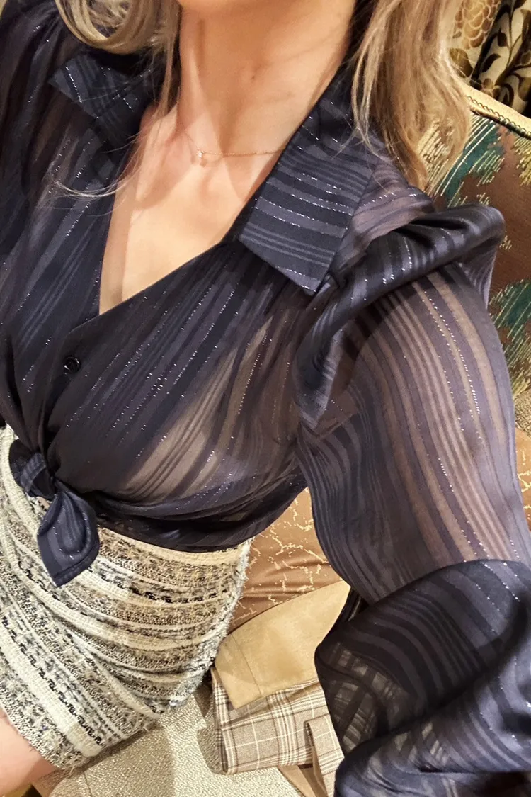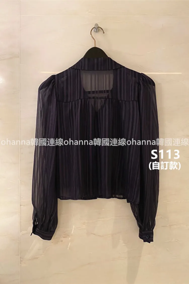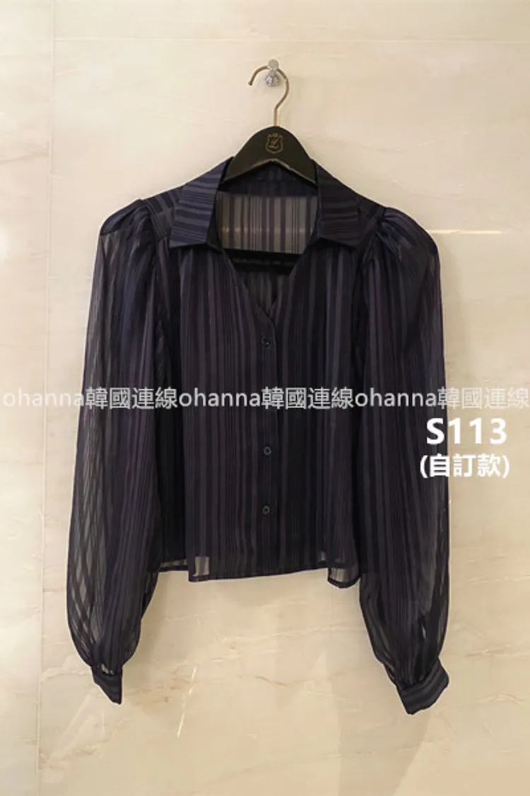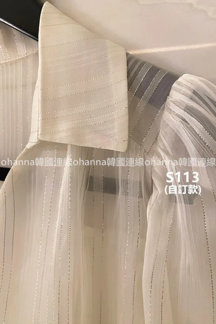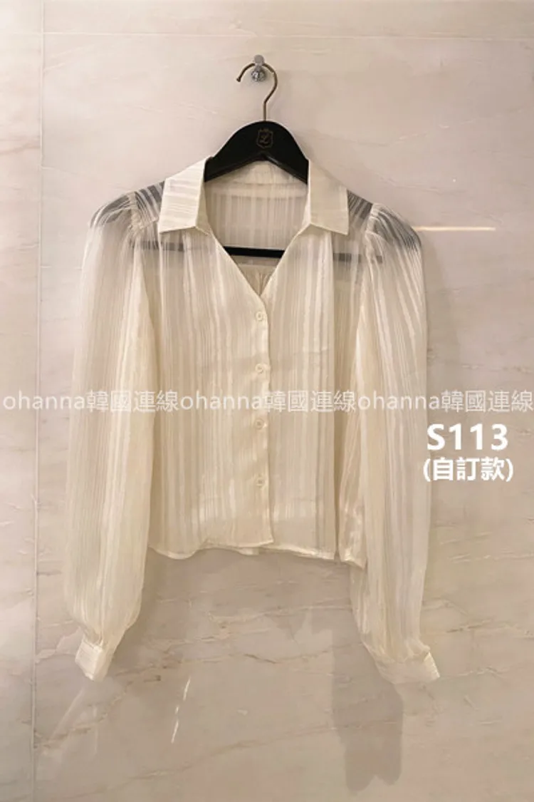 S113(自訂款)透膚金線v領公主袖襯衫