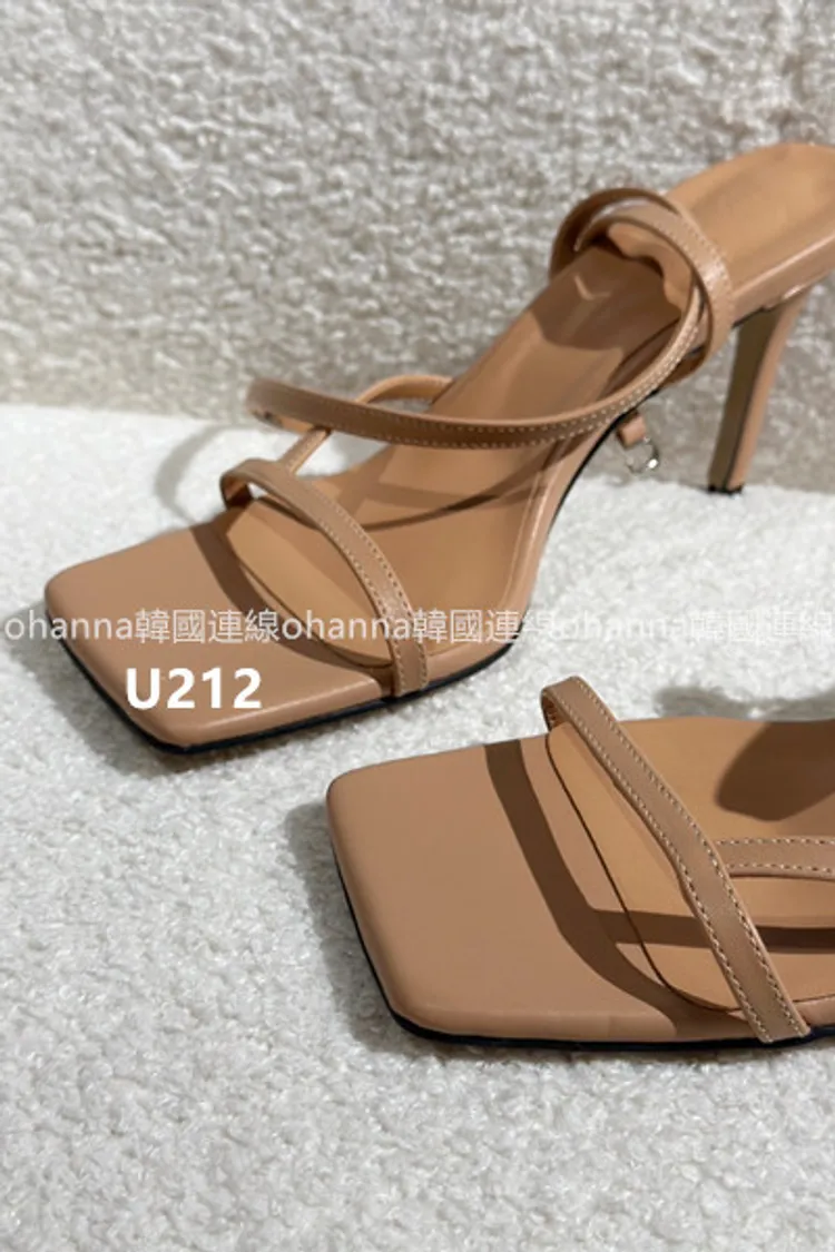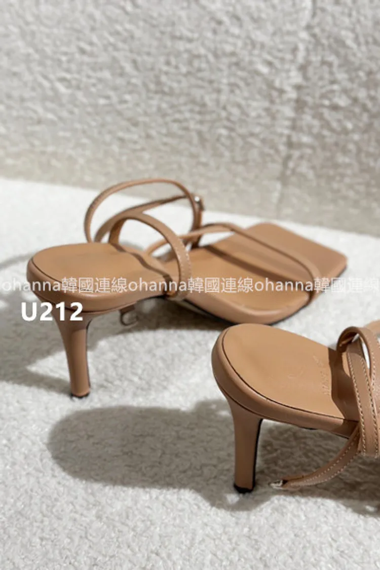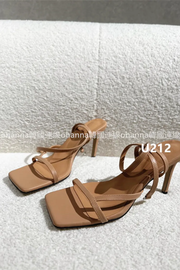 U212方頭一字帶繞踝高跟鞋