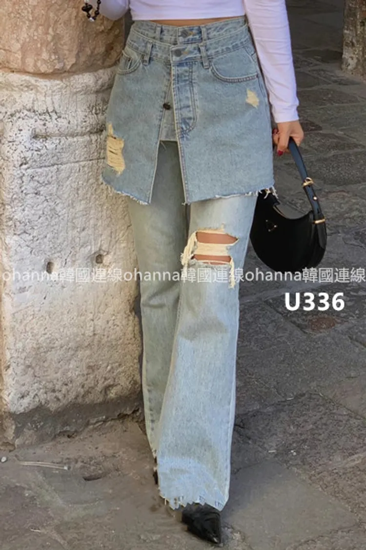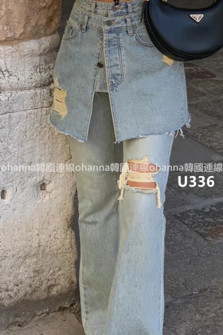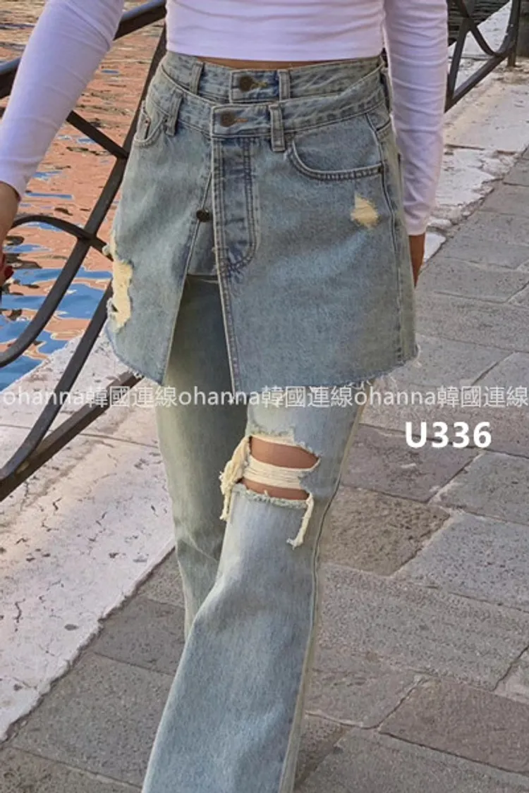 U336短裙造型腰封刷破牛仔褲