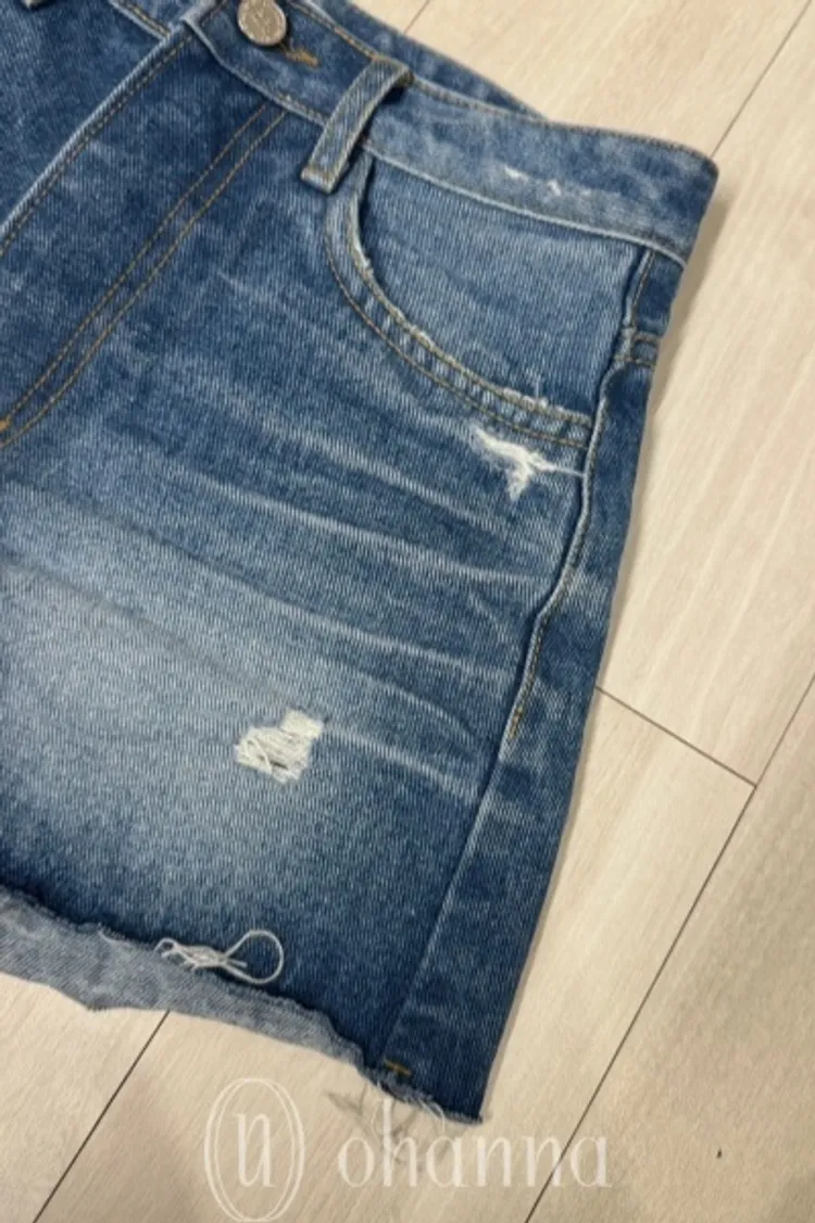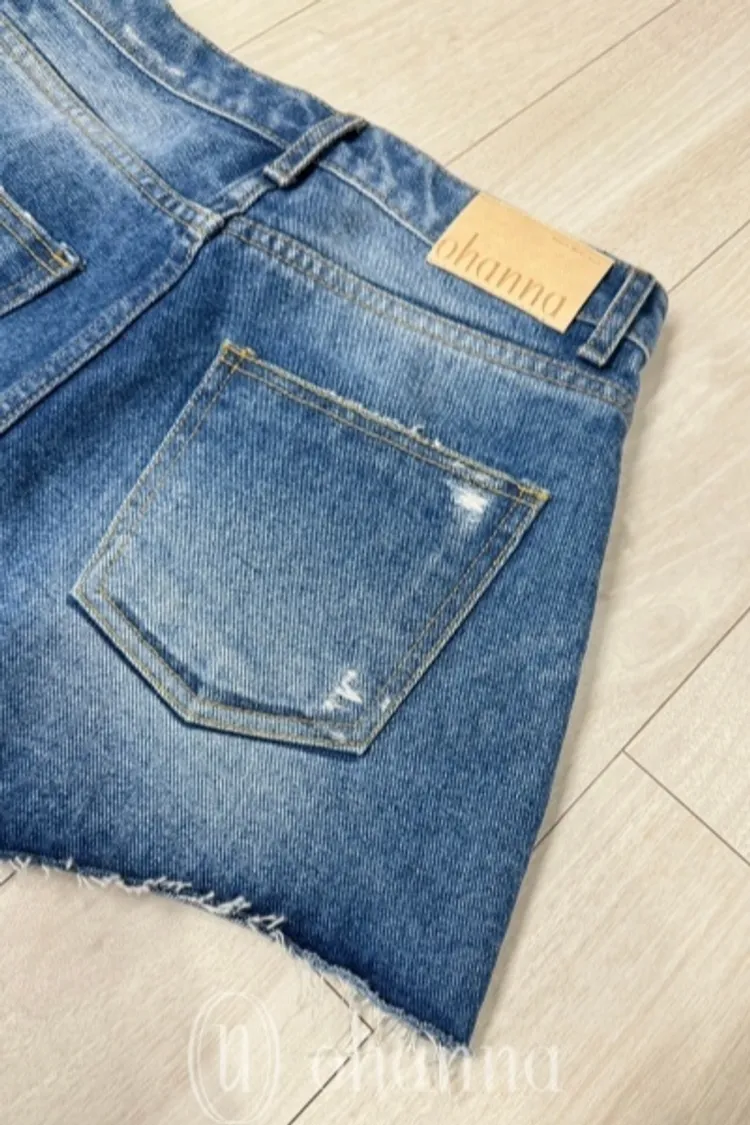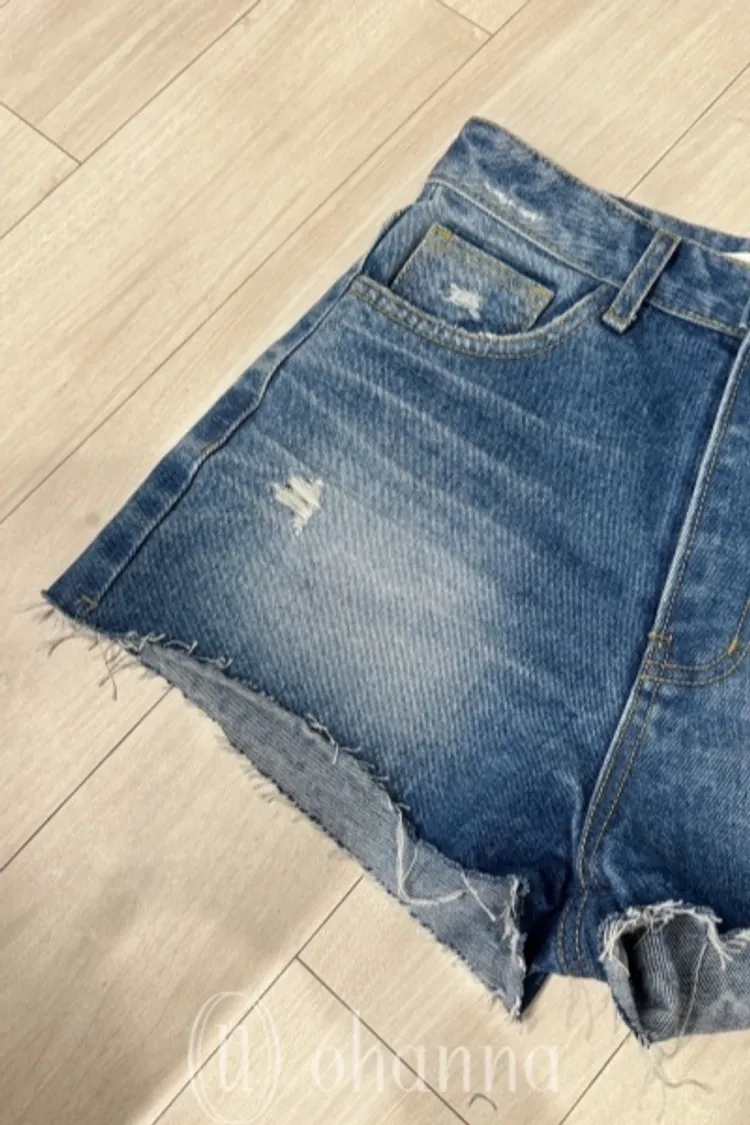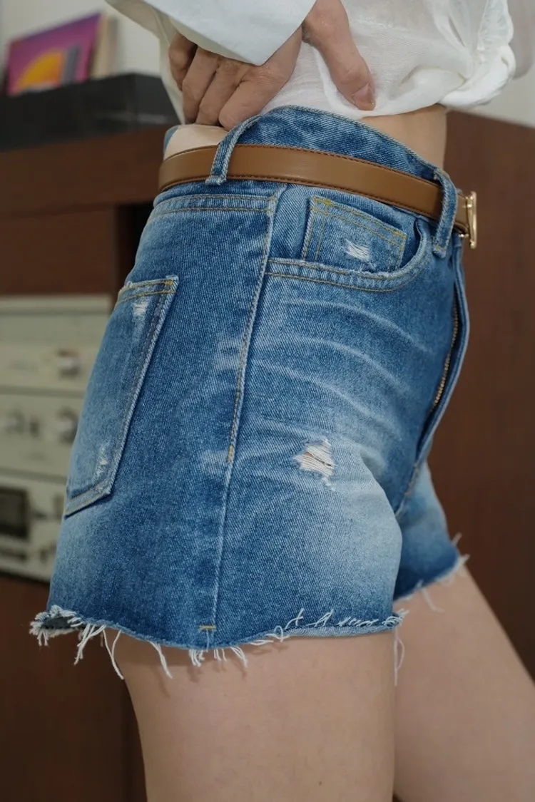 A075(自訂款)藍色刷白不收邊牛仔短褲