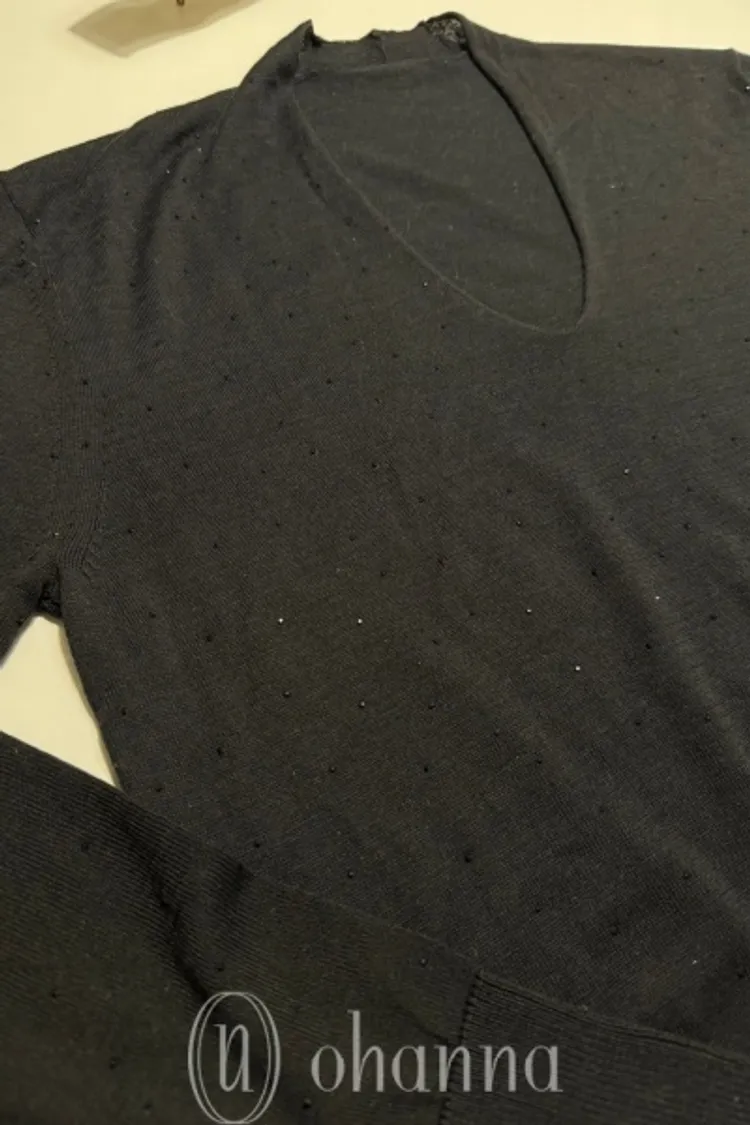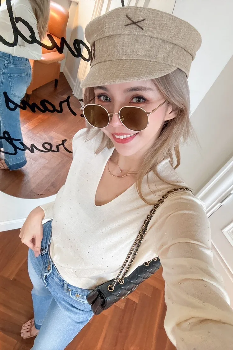 F009(自訂款)水鑽V領縮腰薄T