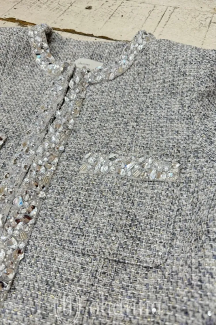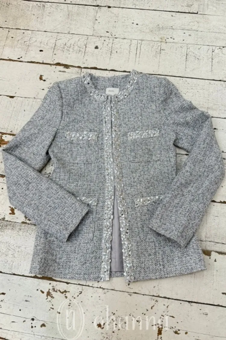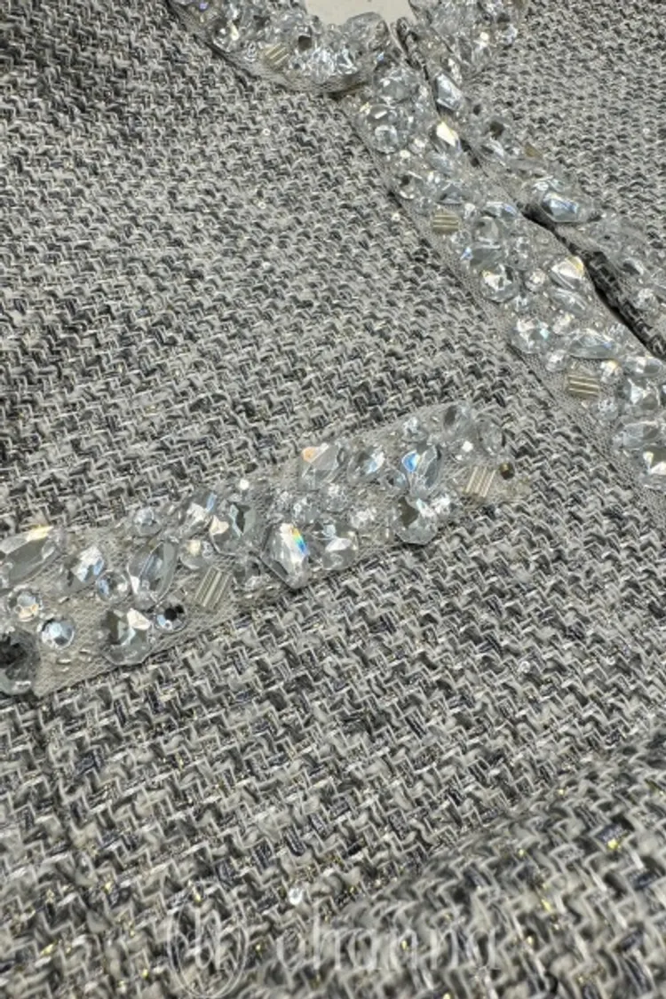 F017(自訂款)灰混色名媛款滾邊水鑽長版香香外套