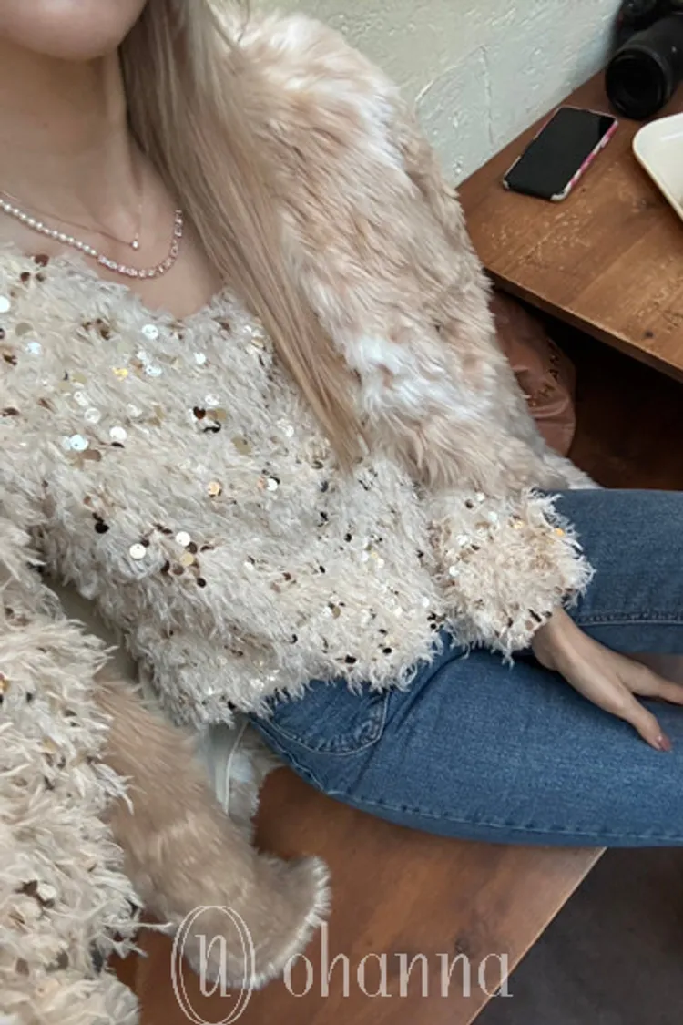 J063(自訂款)小姊姊流蘇亮片軟綿上衣