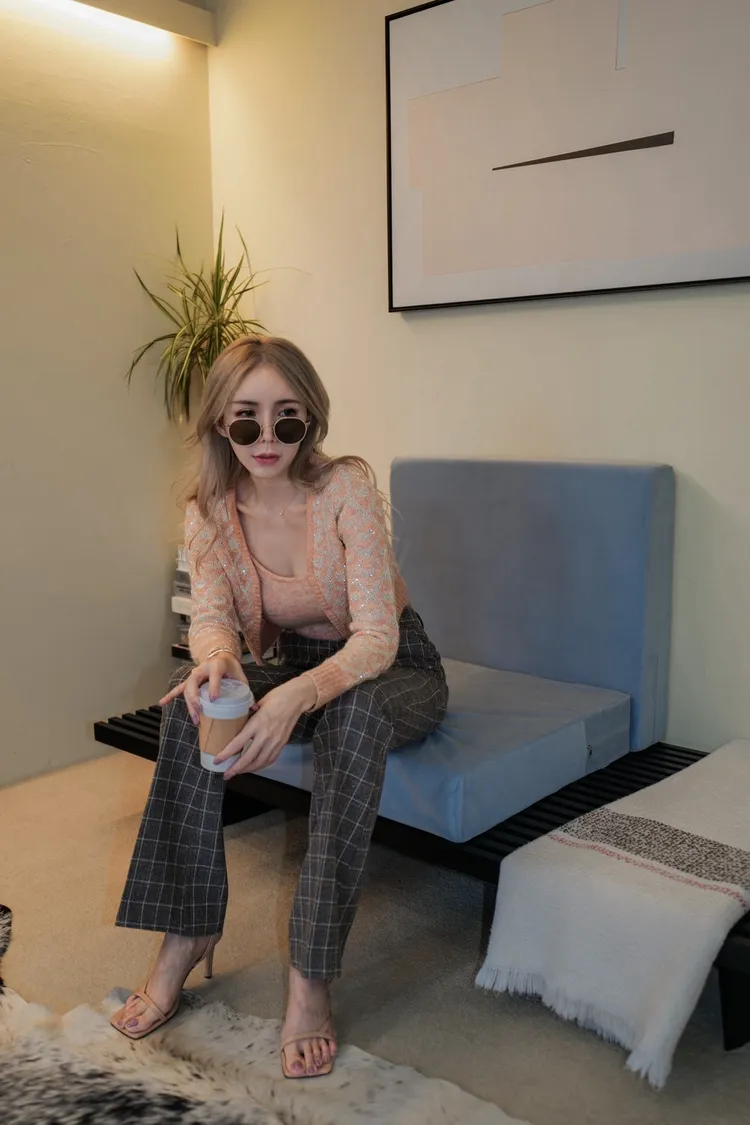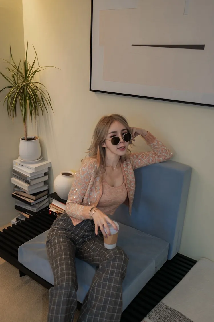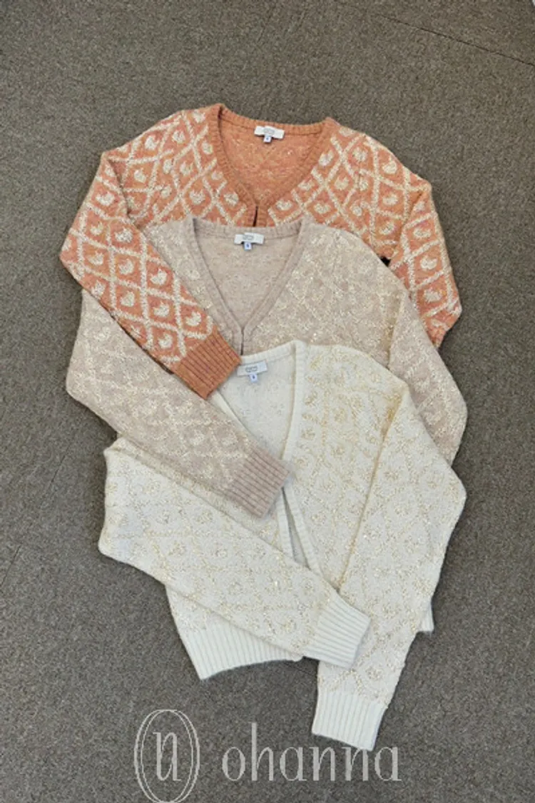 J068(自訂款)菱格愛心亮片針織開襟衫