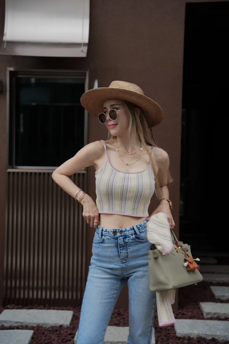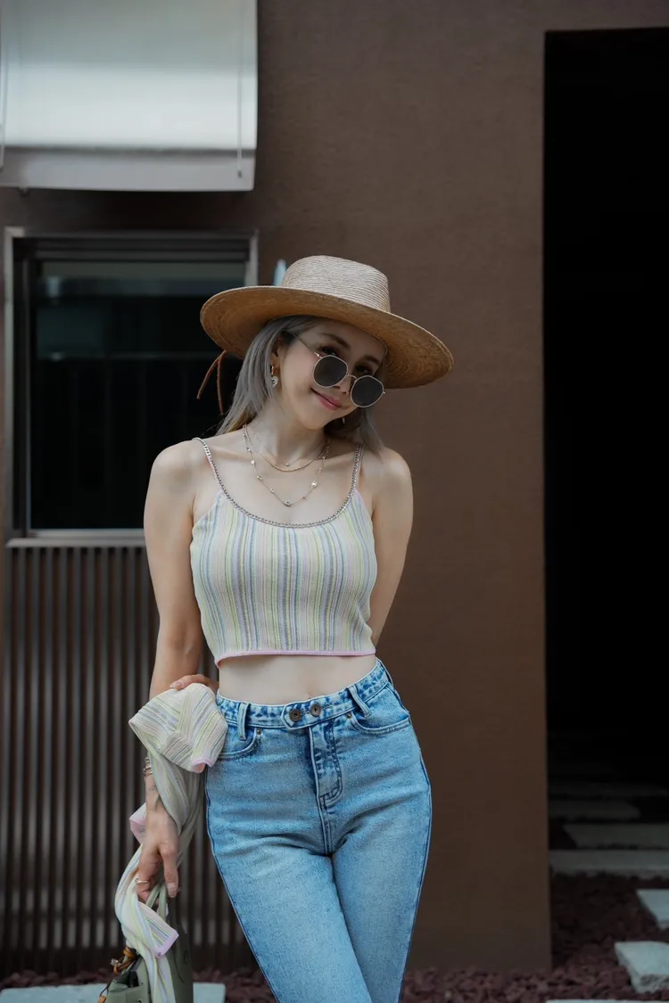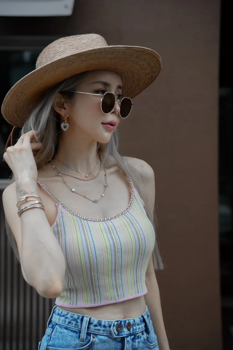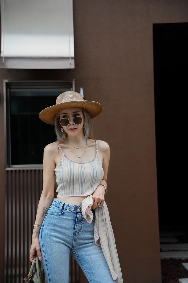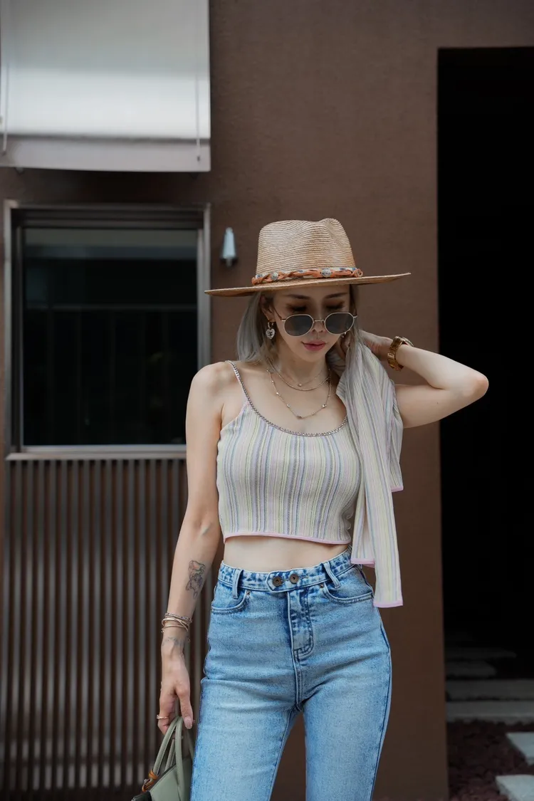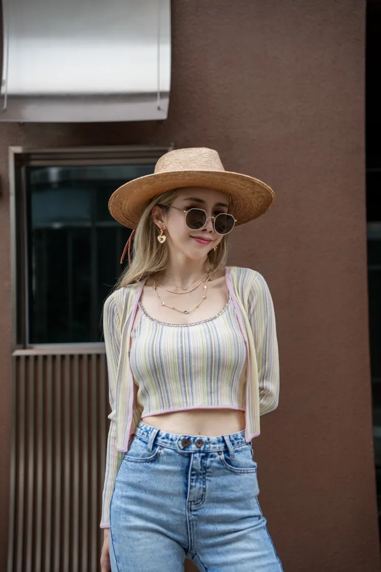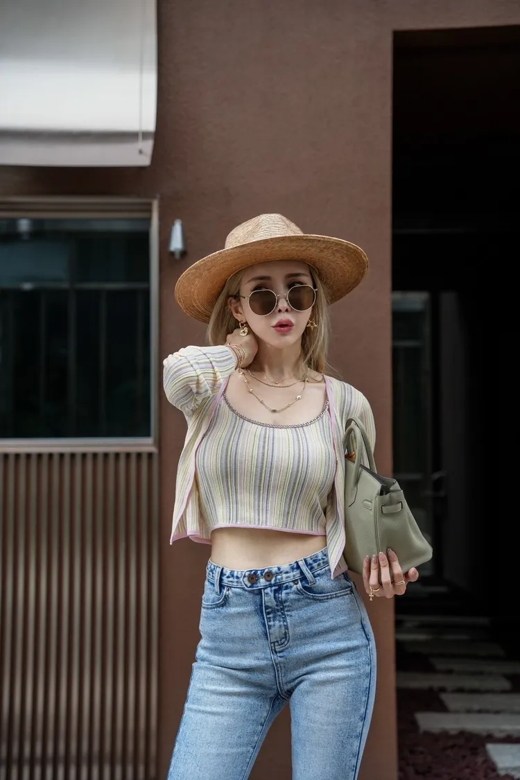 J252(自訂款)彩色亮蔥線條短腰背心+外套