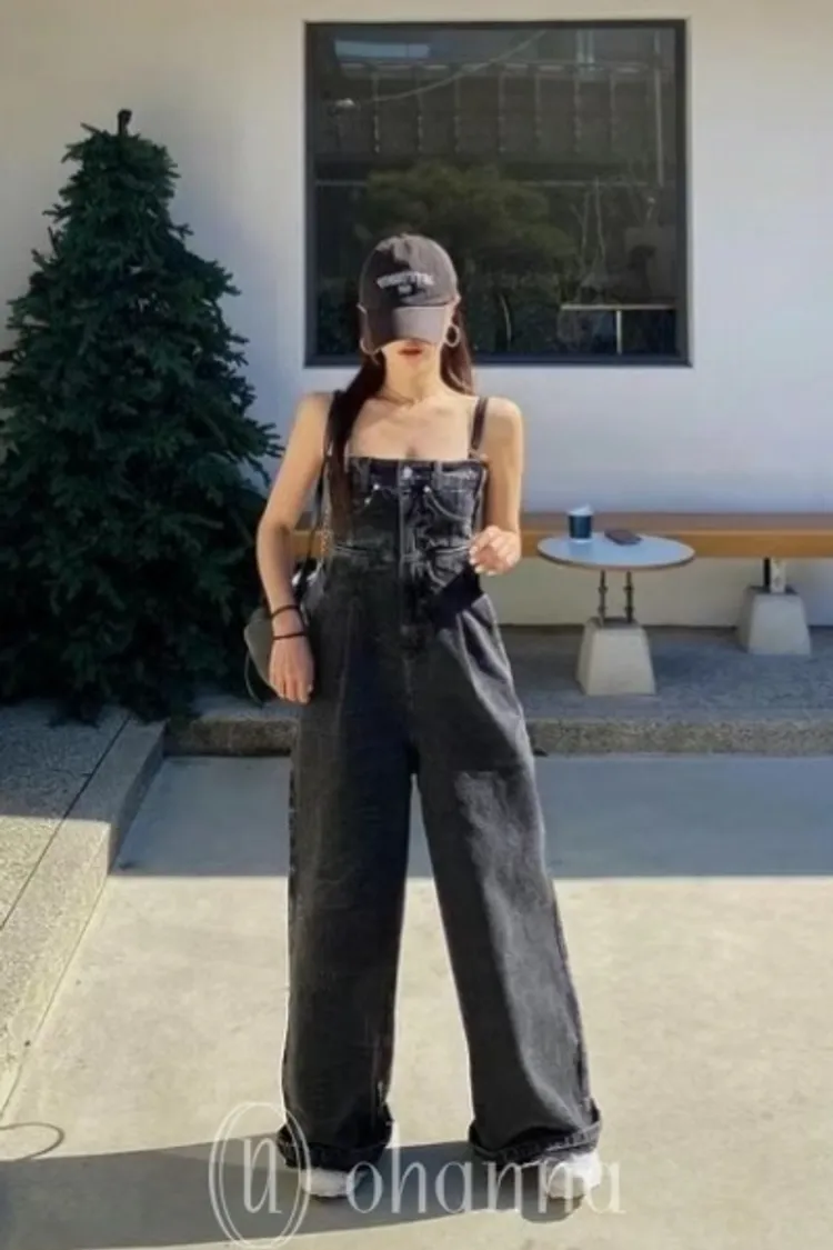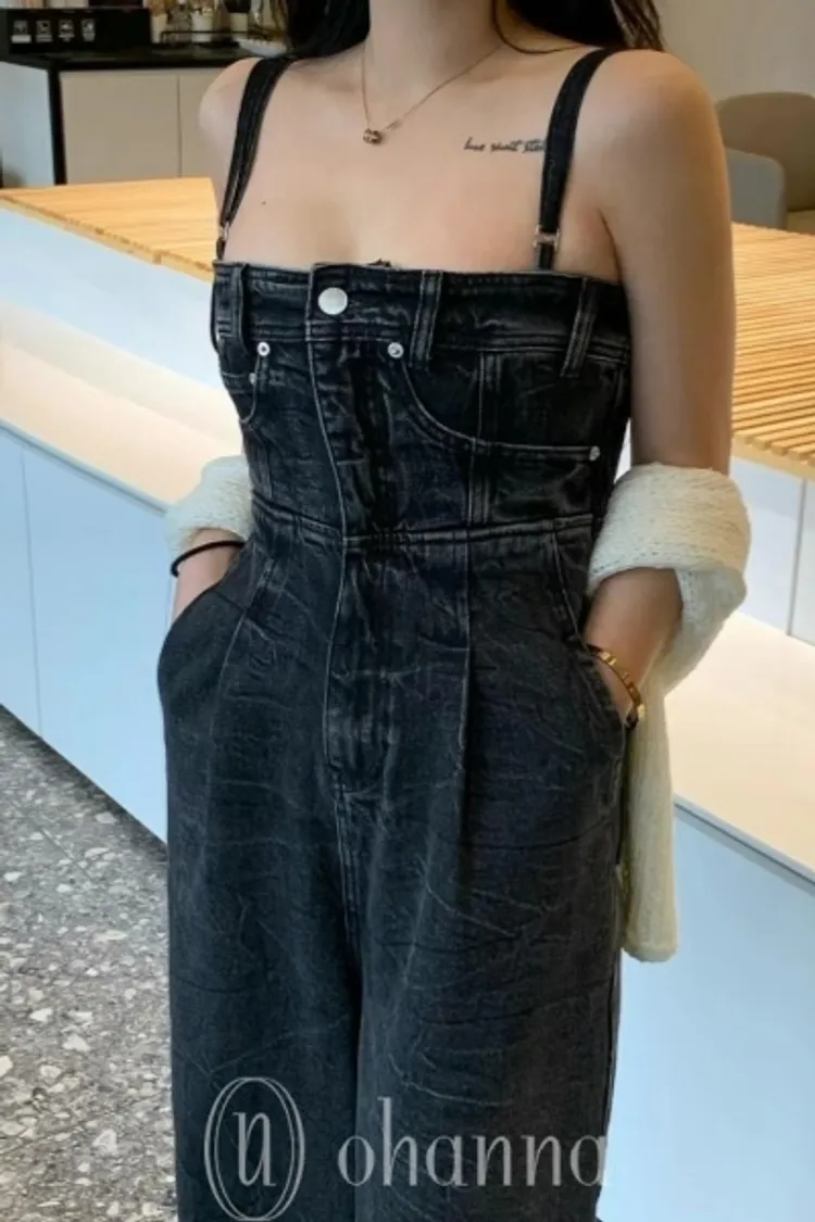 M060黑色水洗牛仔連身褲