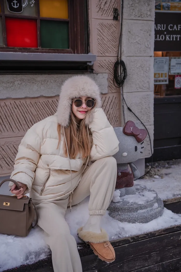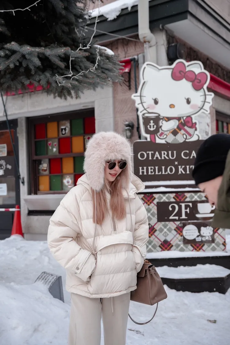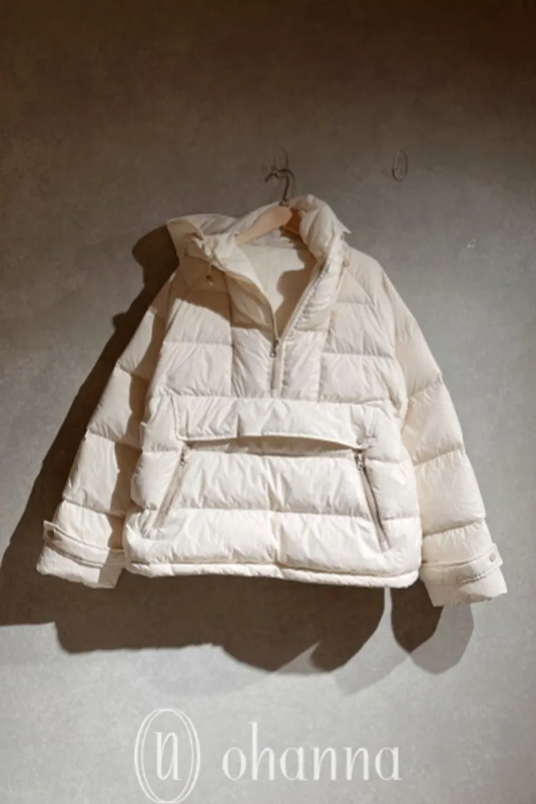 N003(自訂款)米白鴨絨拉鍊連帽上衣