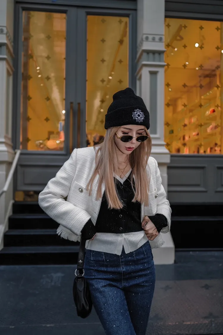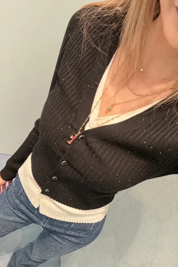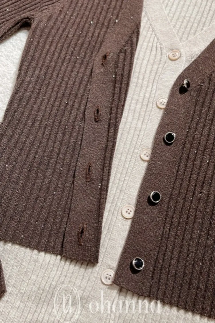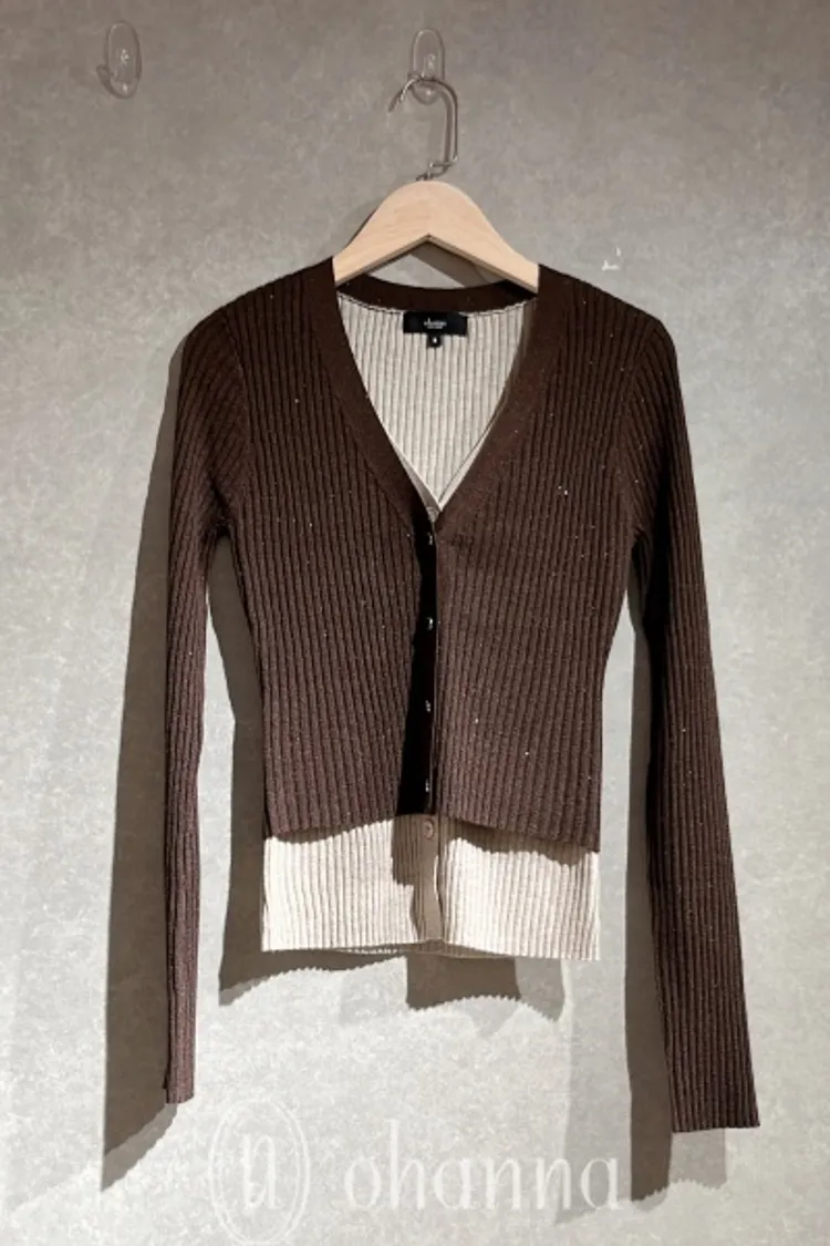 S081(自訂款)假兩件拼色小亮片坑條排釦上衣