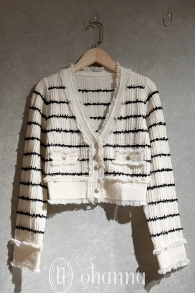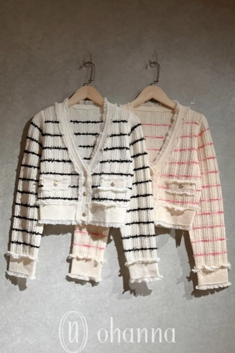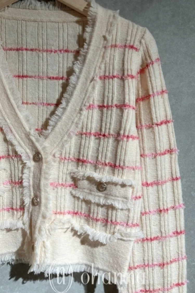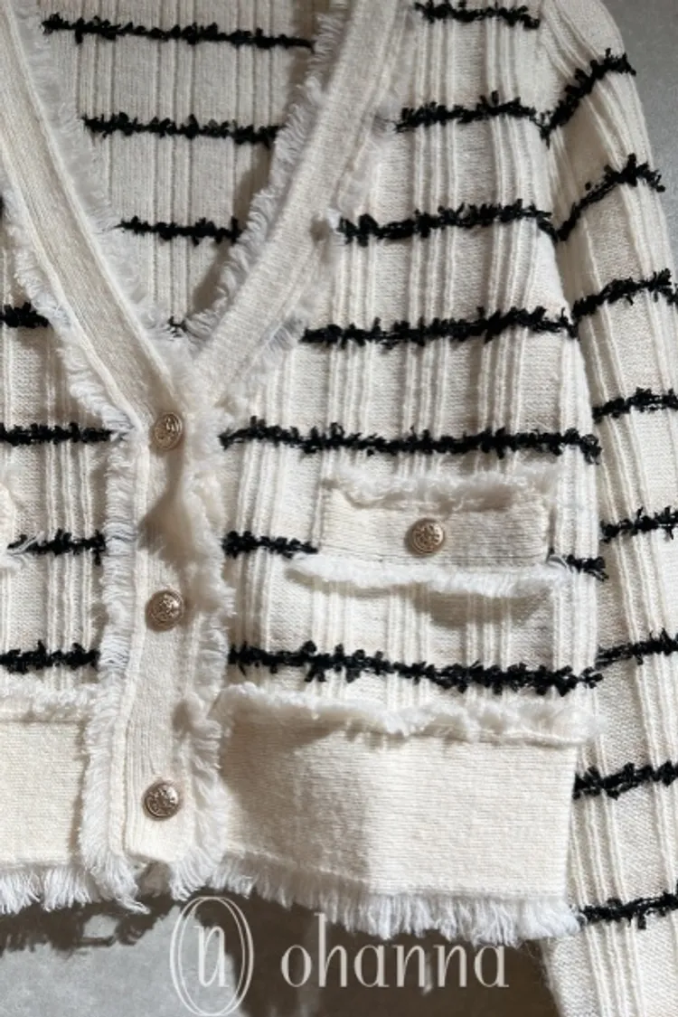 S082(自訂款)橫條鬚鬚羊毛針織排釦衫