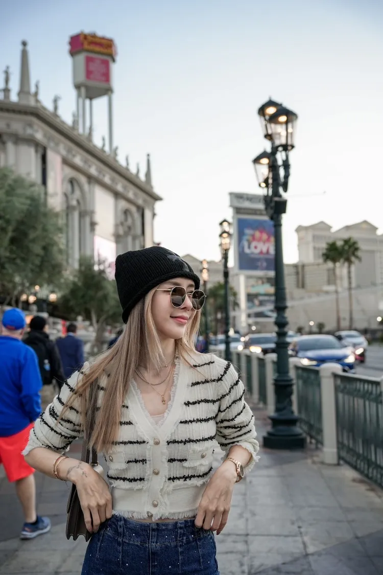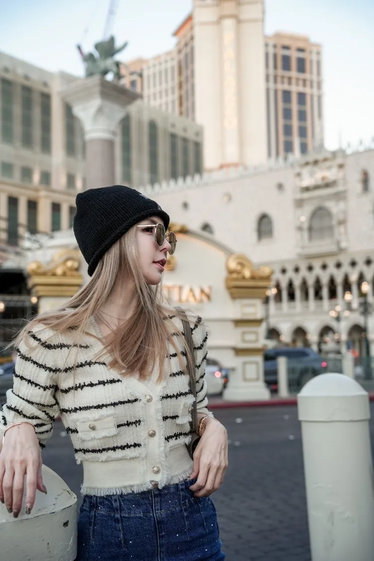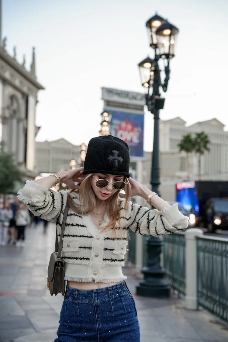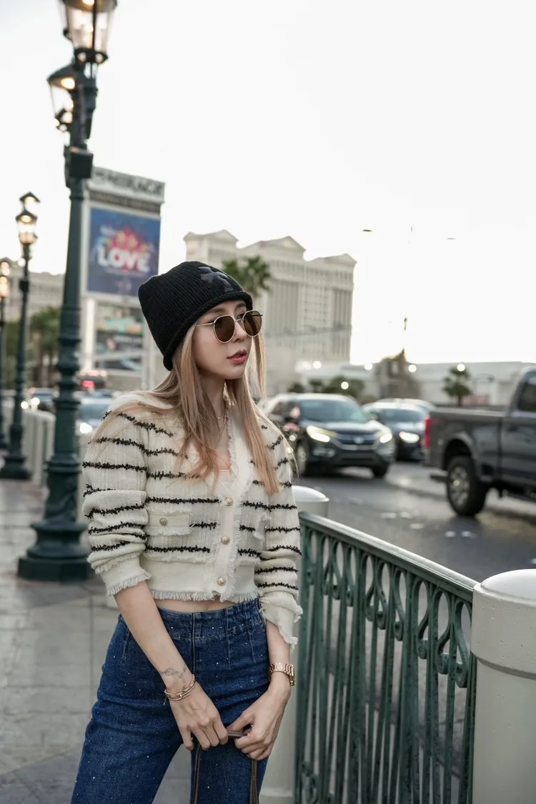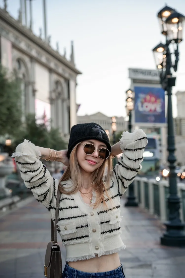 S082(自訂款)橫條鬚鬚羊毛針織排釦衫