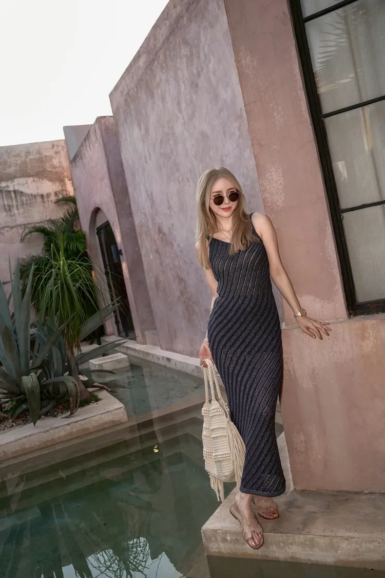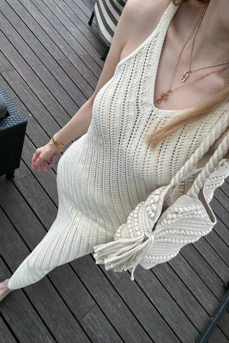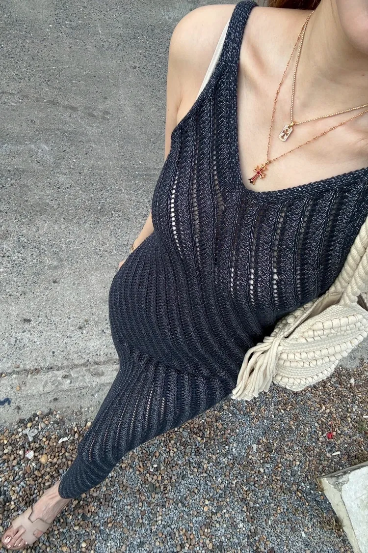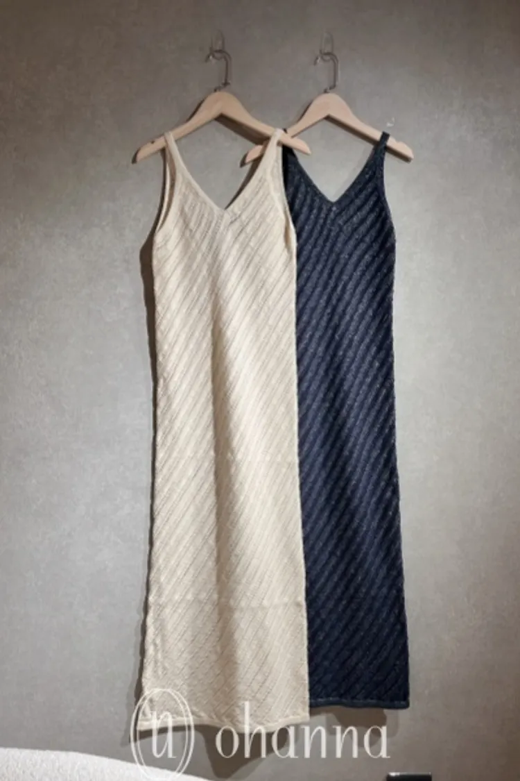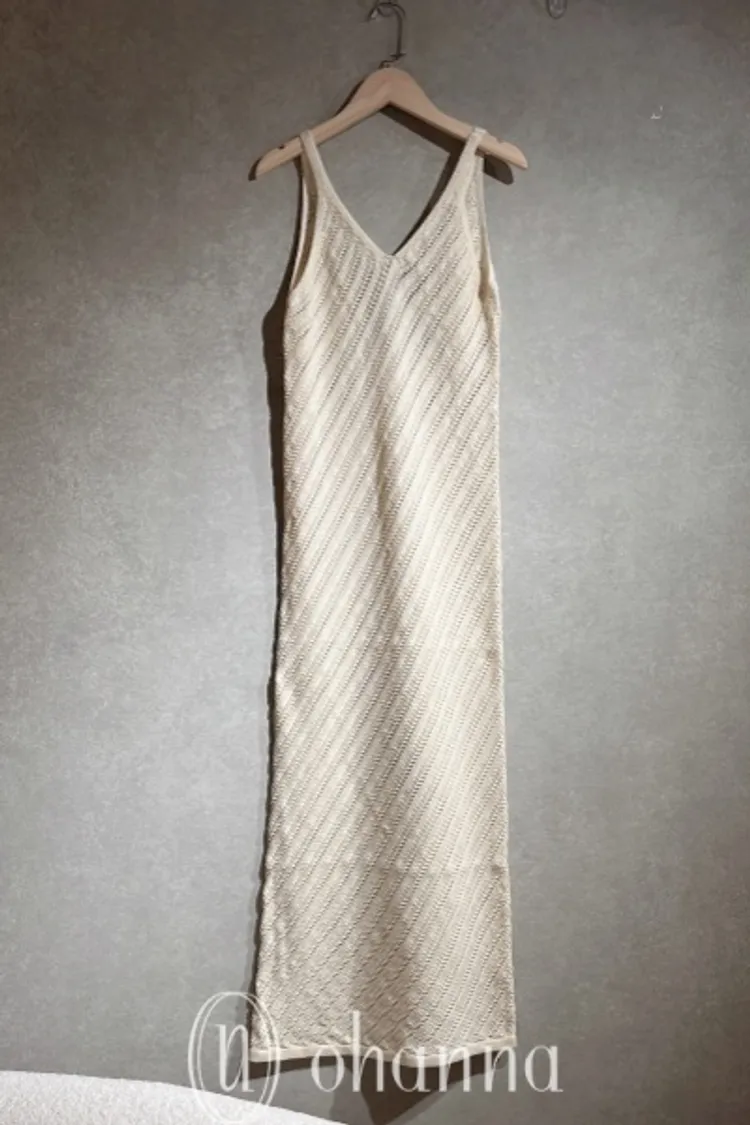 S086(自訂款)前後V領針織簍空長洋裝(附安全褲)