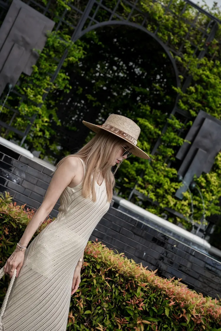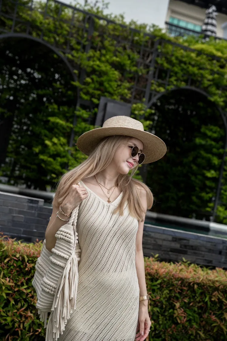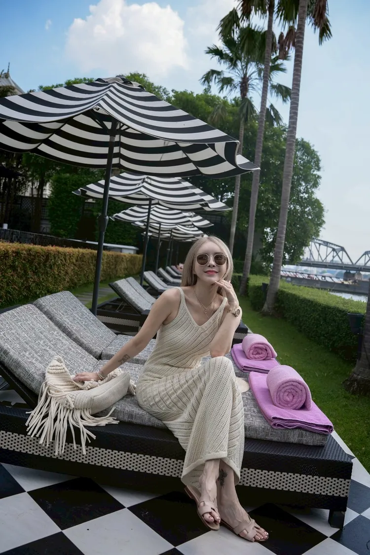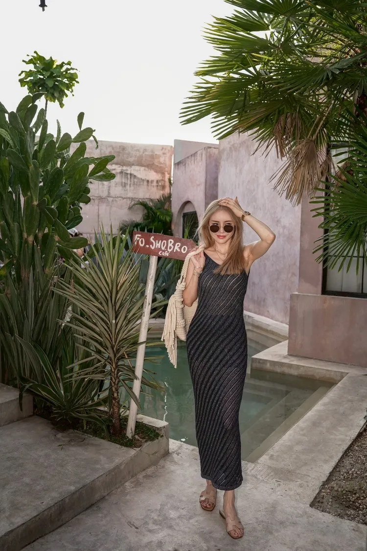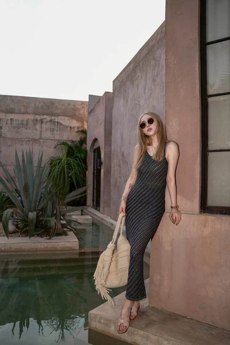 S086(自訂款)前後V領針織簍空長洋裝(附安全褲)