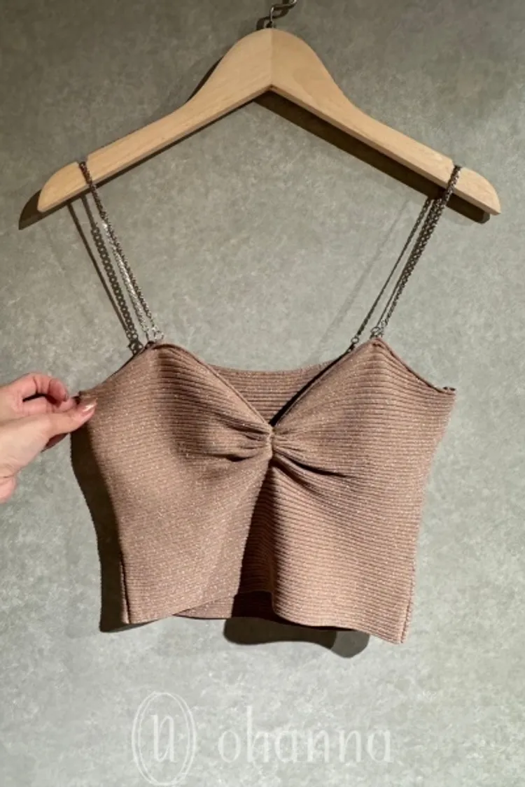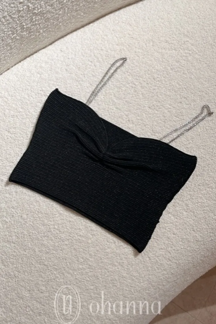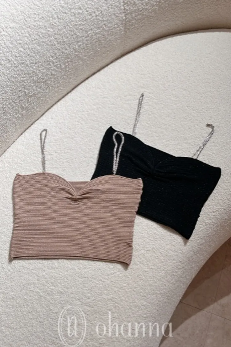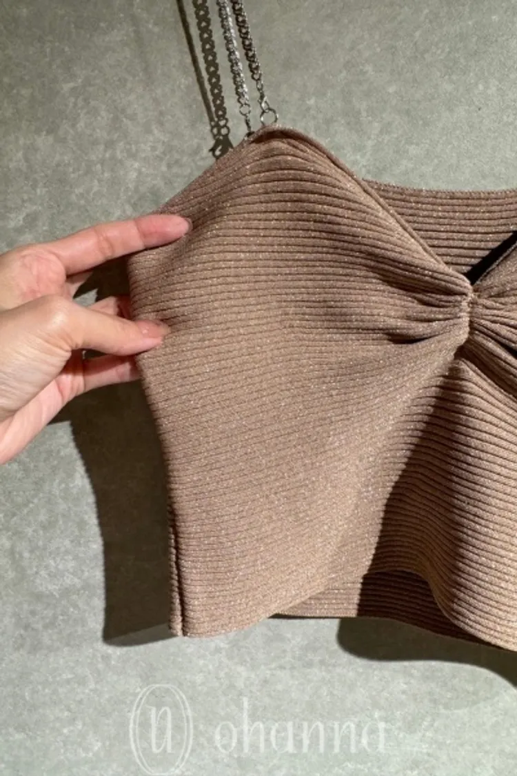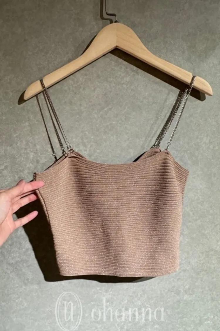 U003(自訂款)銀蔥胸抓皺銀鍊短背心