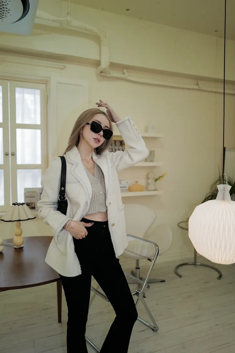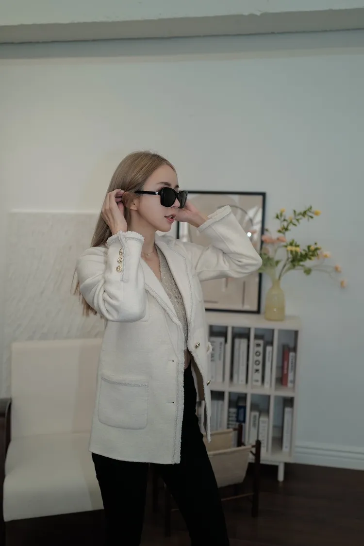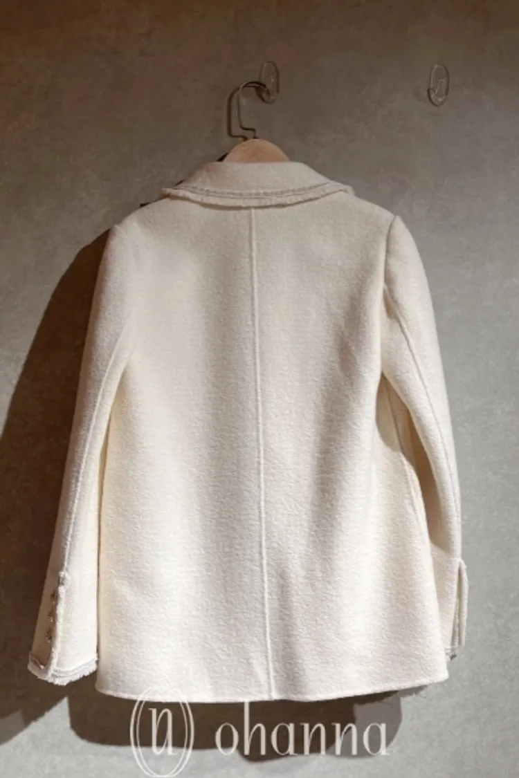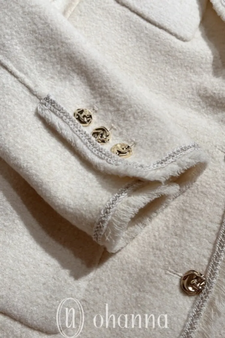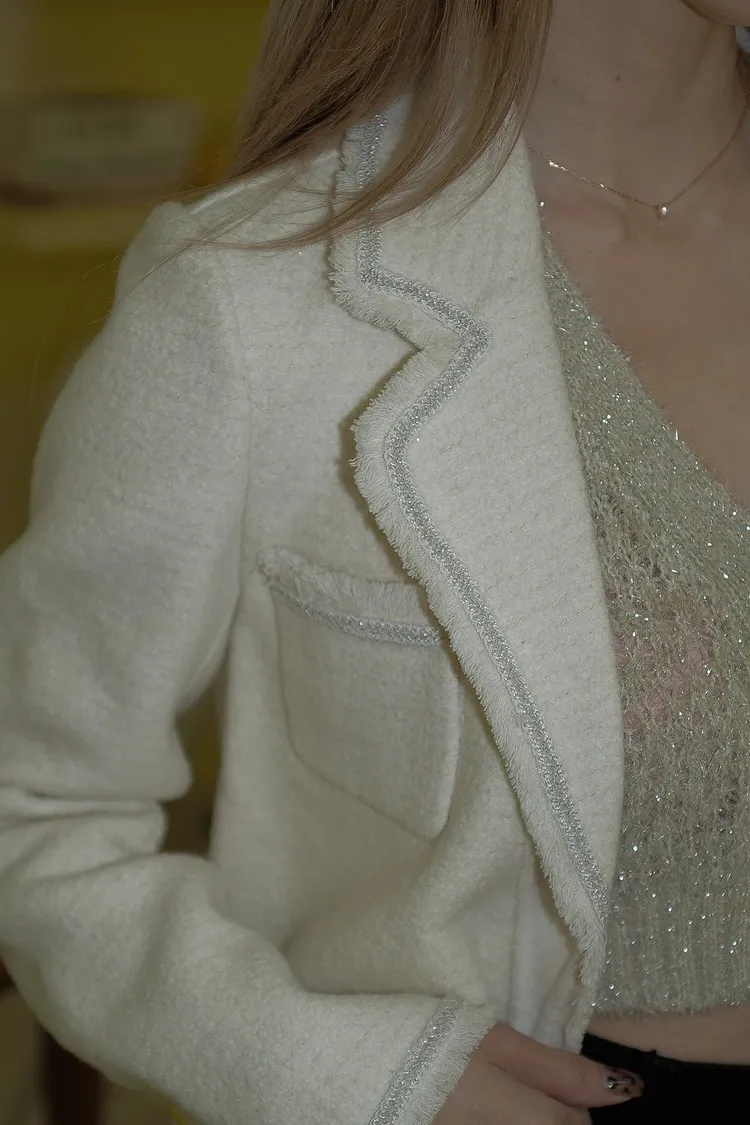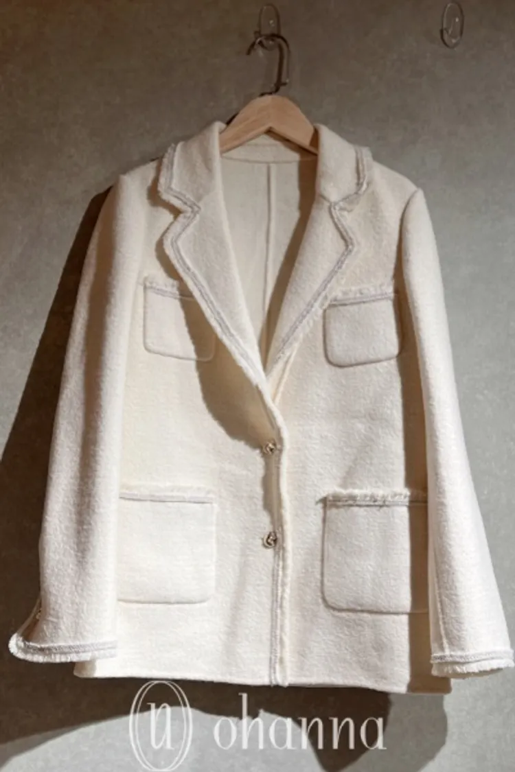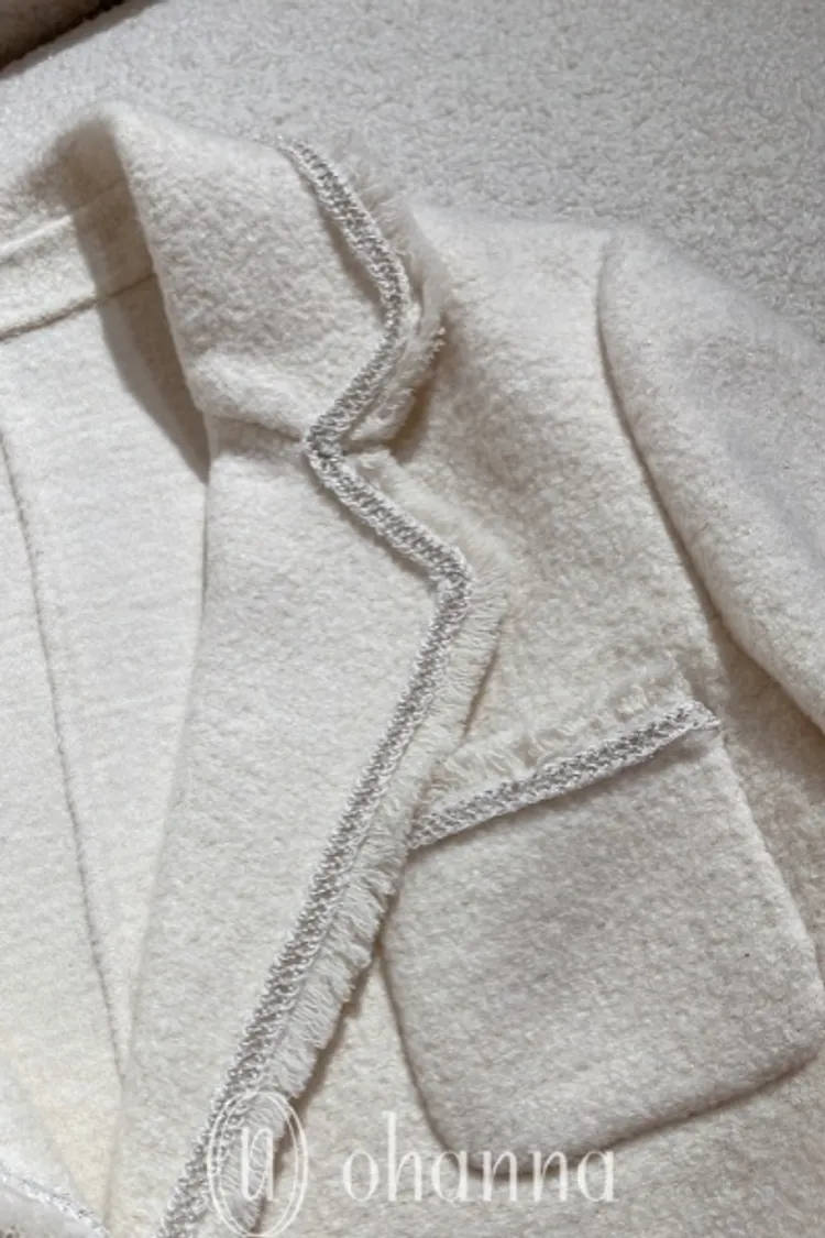 U106(自訂款)米白鬚鬚滾銀邊翻領外套