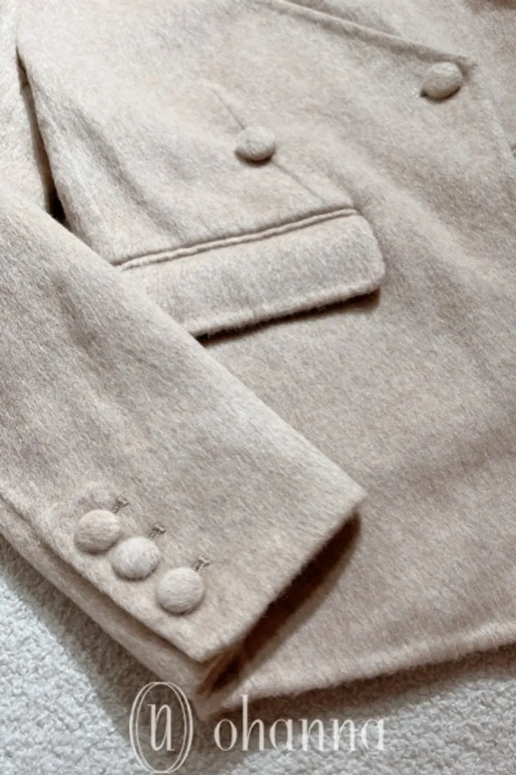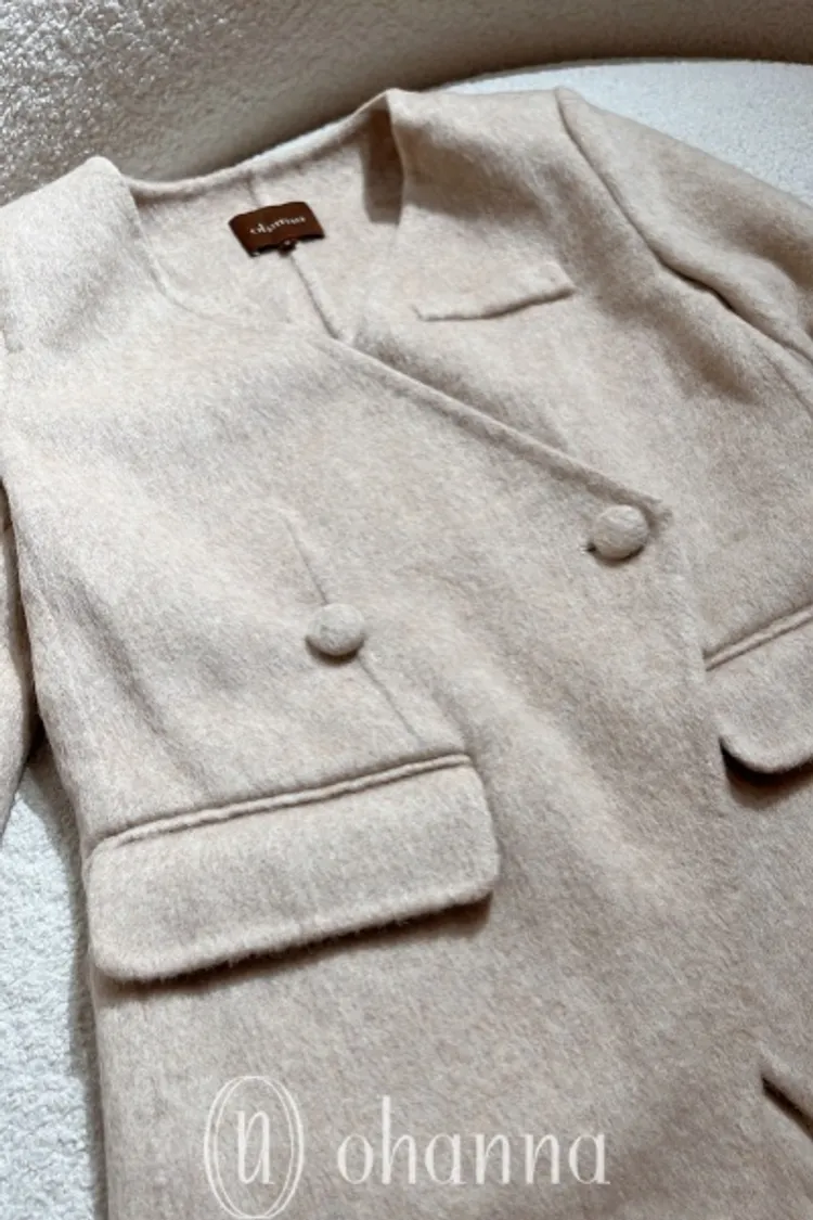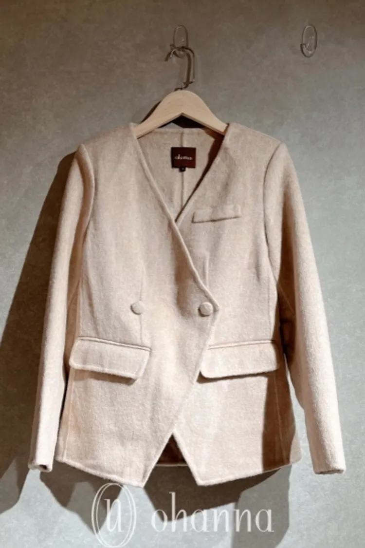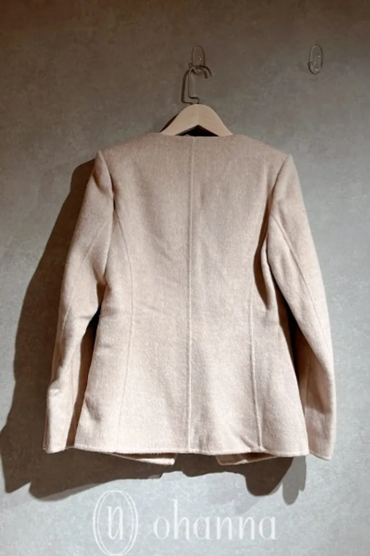 U114(自訂款)杏色無領質感西裝羊毛外套