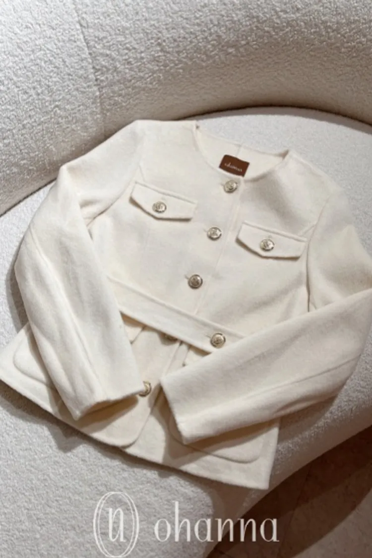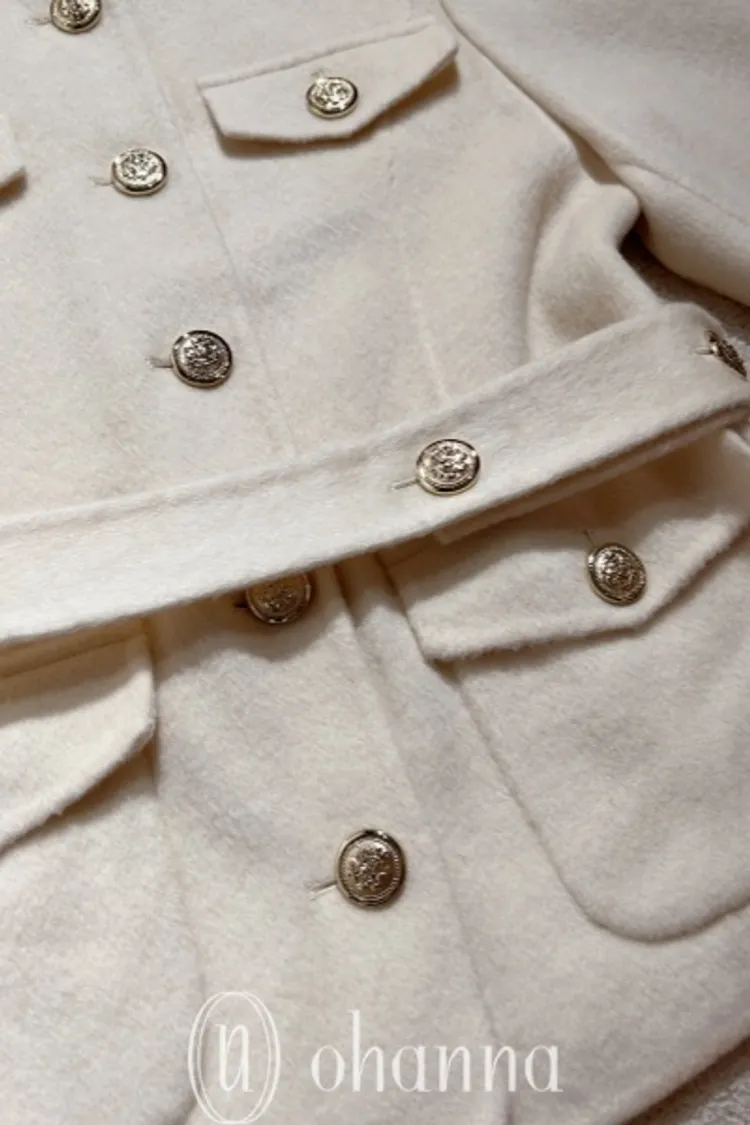 U116(自訂款)附腰帶圓領金釦羊毛外套