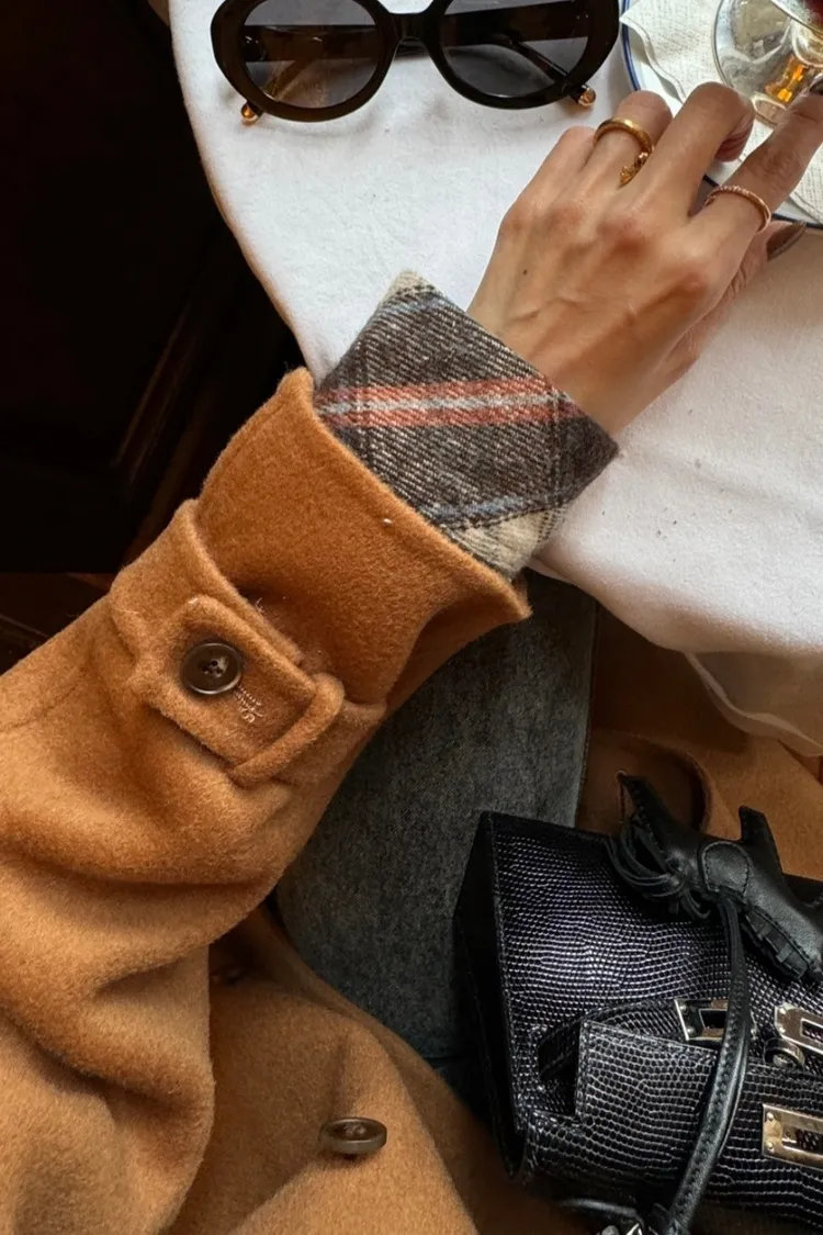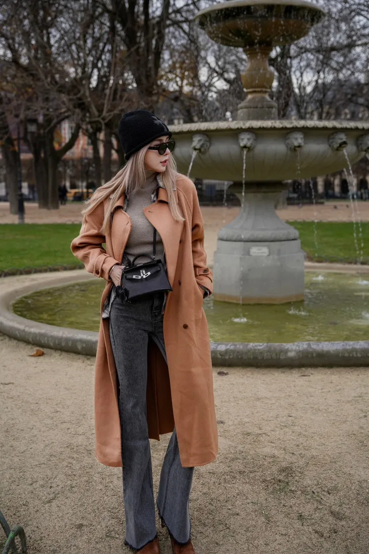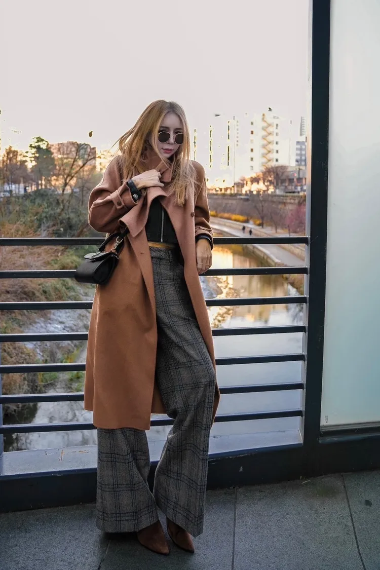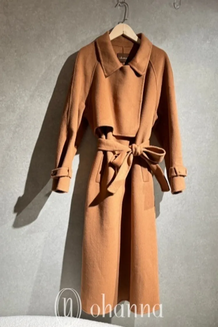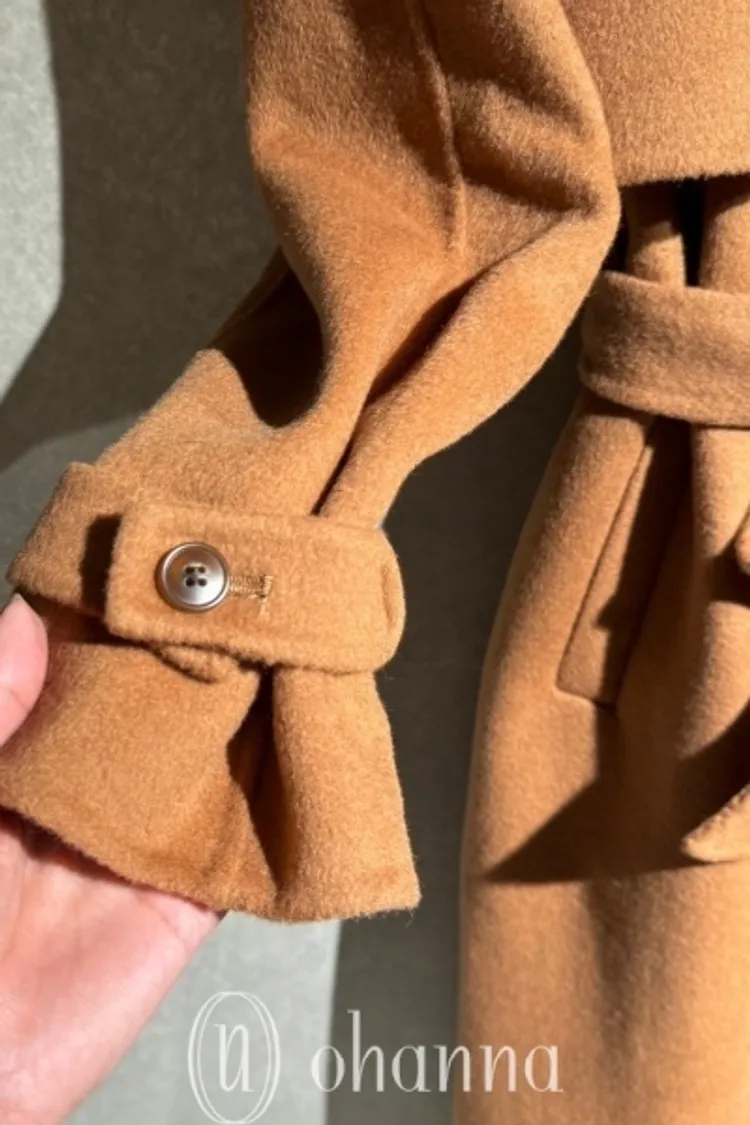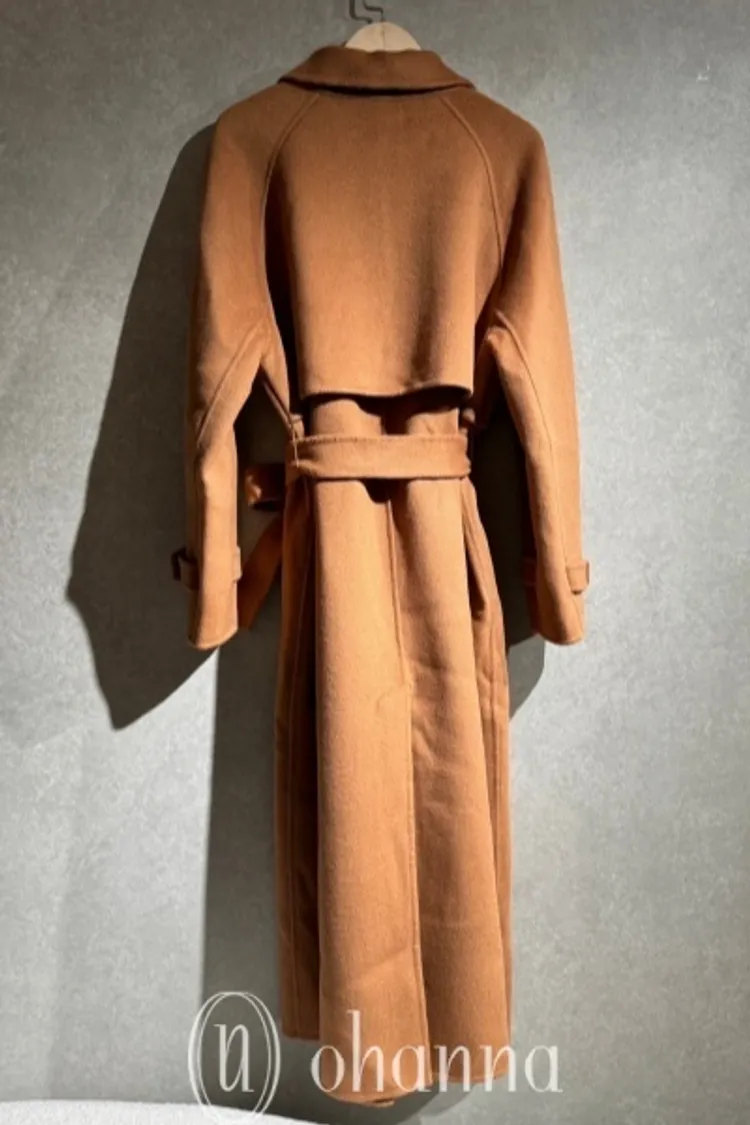 U119(自訂款)駝色翻領羊毛長大衣(附綁帶)