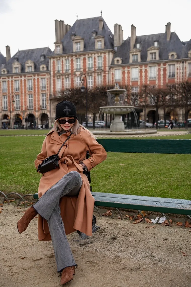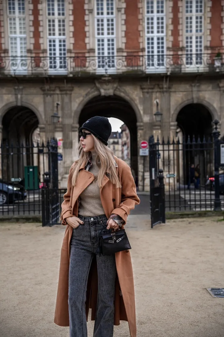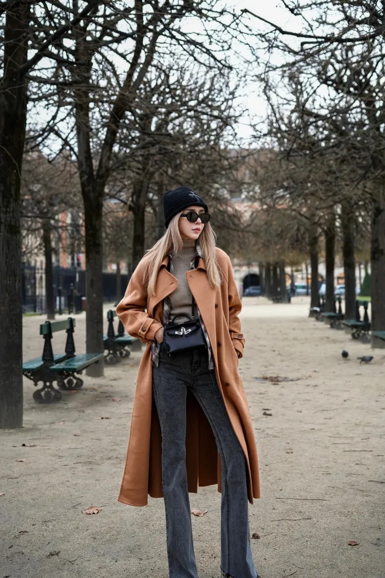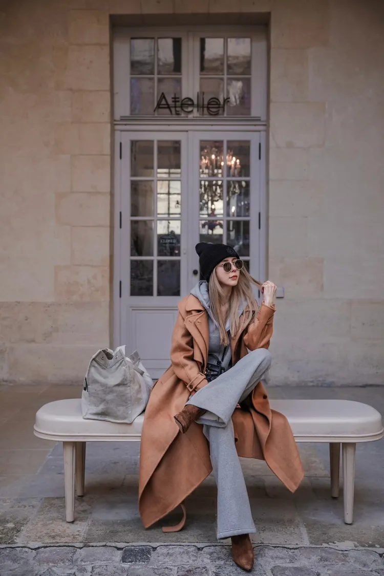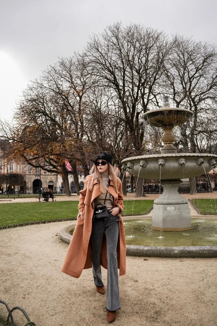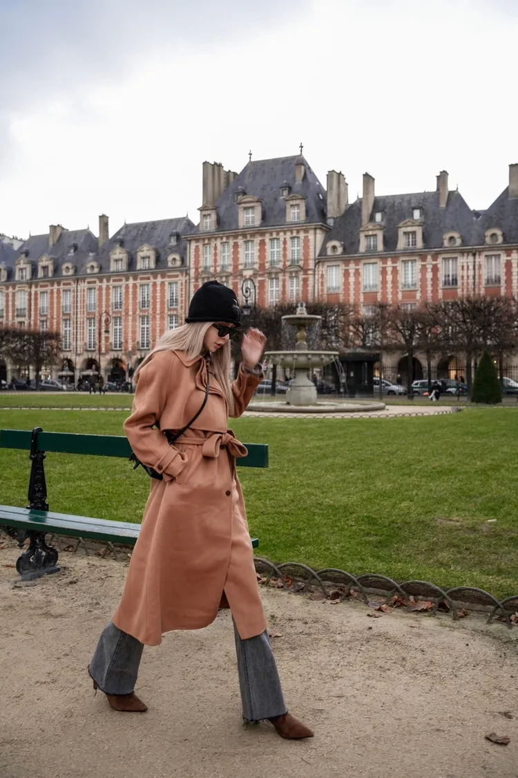 U119(自訂款)駝色翻領羊毛長大衣(附綁帶)