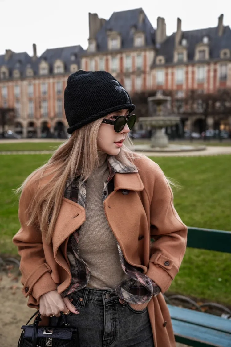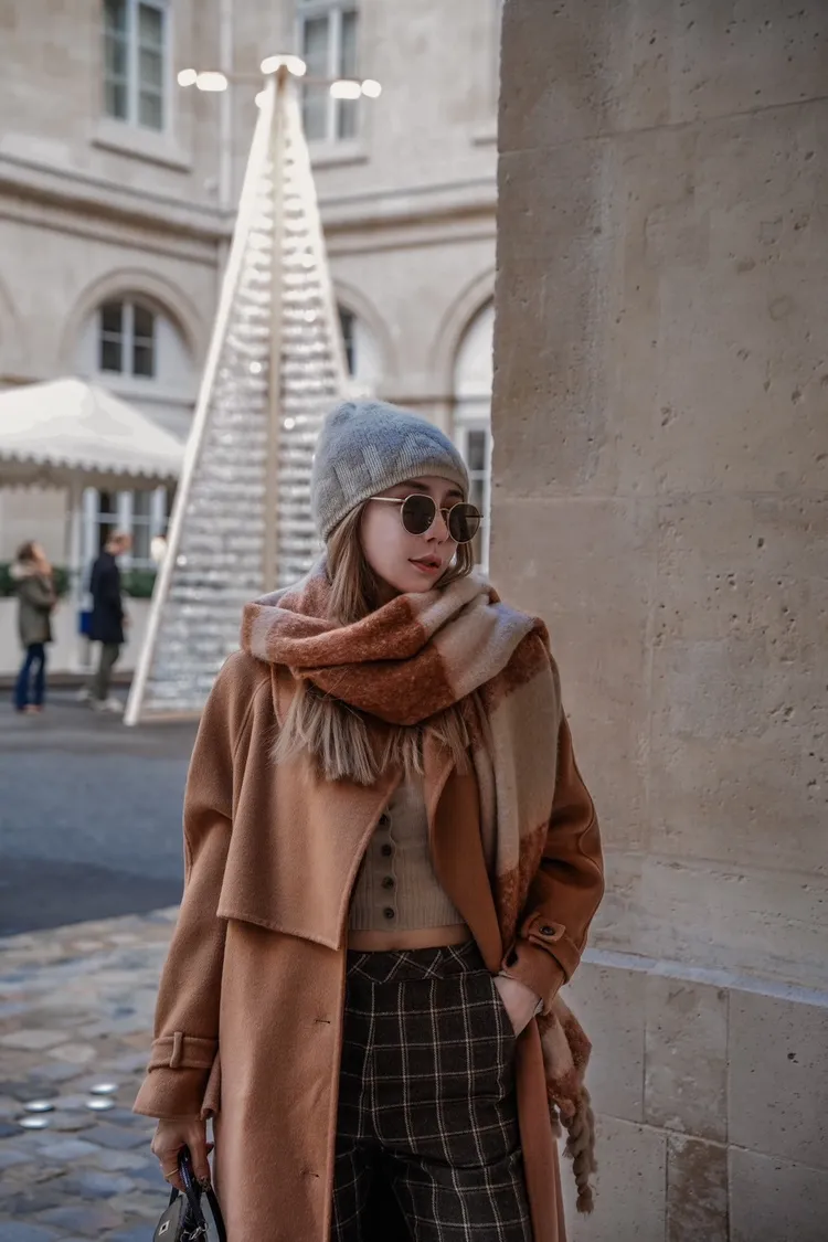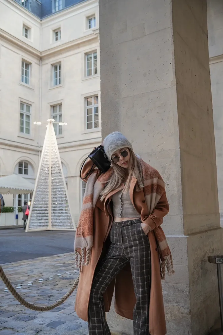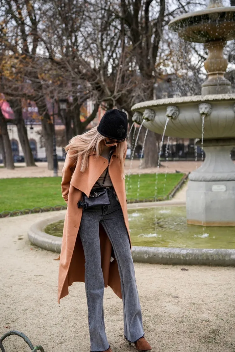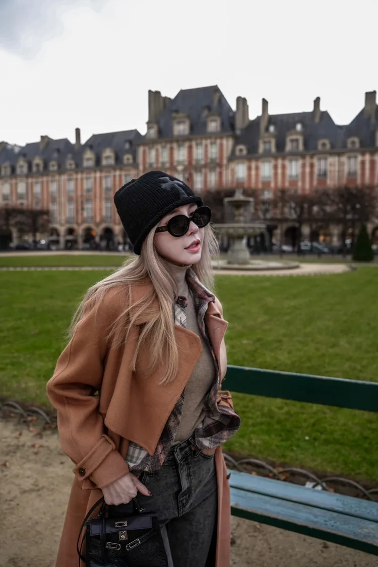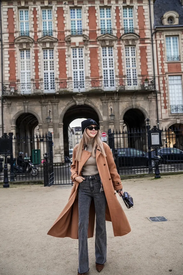U119(自訂款)駝色翻領羊毛長大衣(附綁帶)