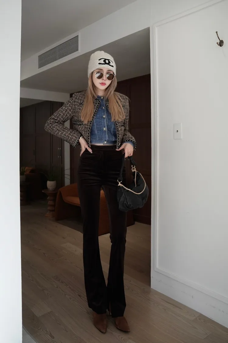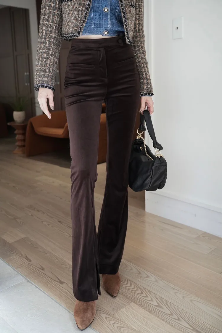 U131(自訂款)側釦假口袋絨面靴型褲