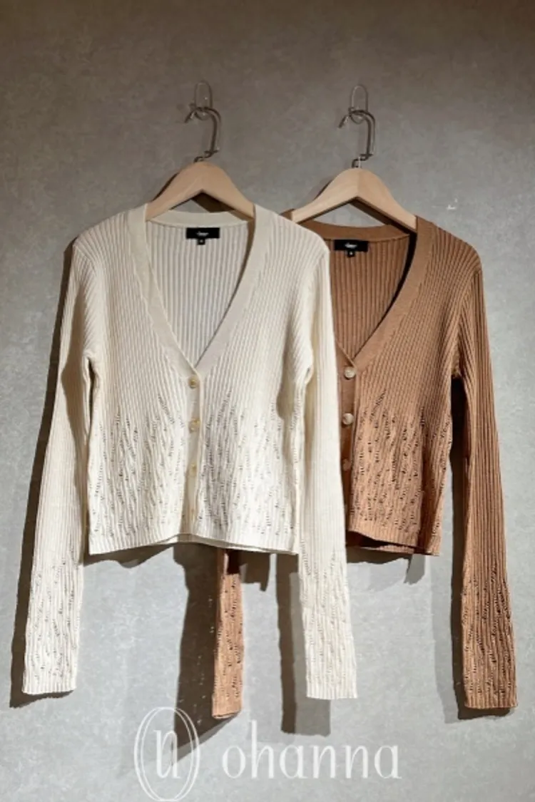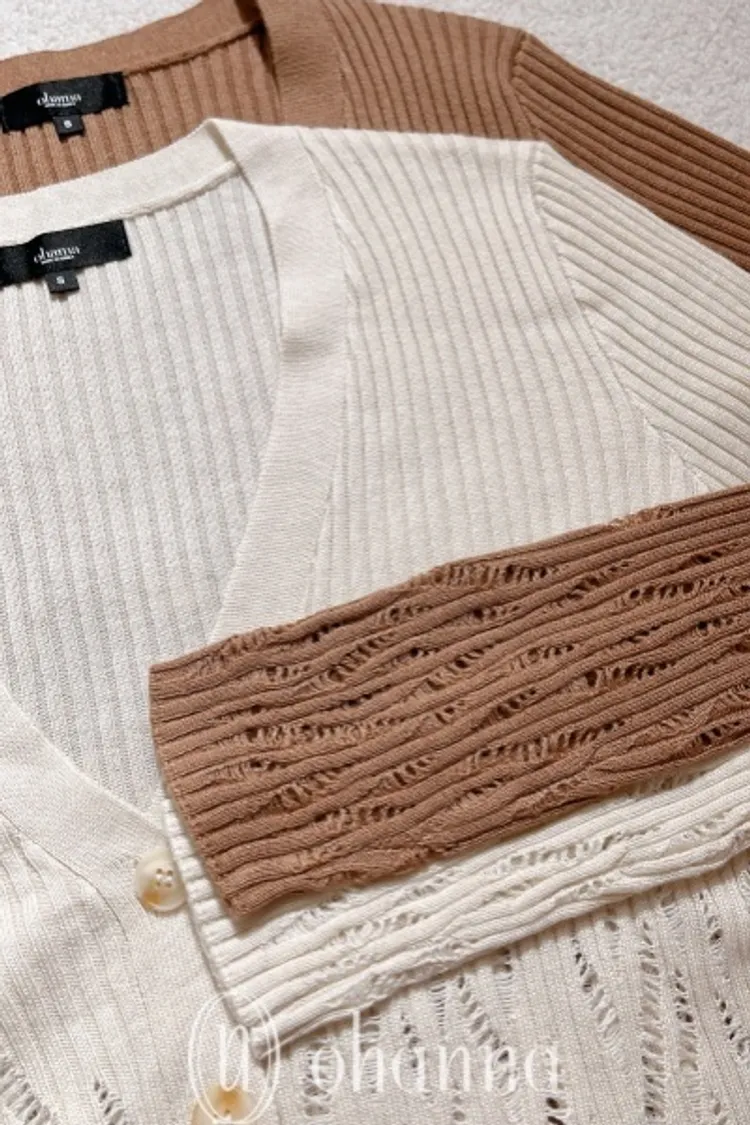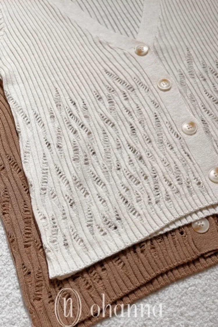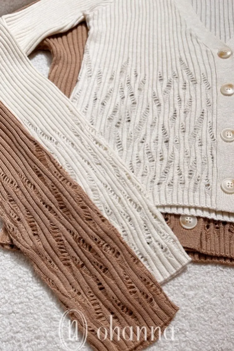 U141(自訂款)坑條下擺簍空針織排扣上衣