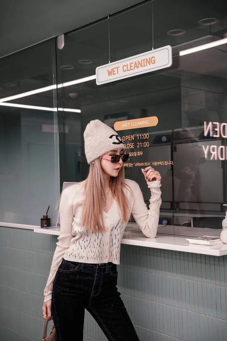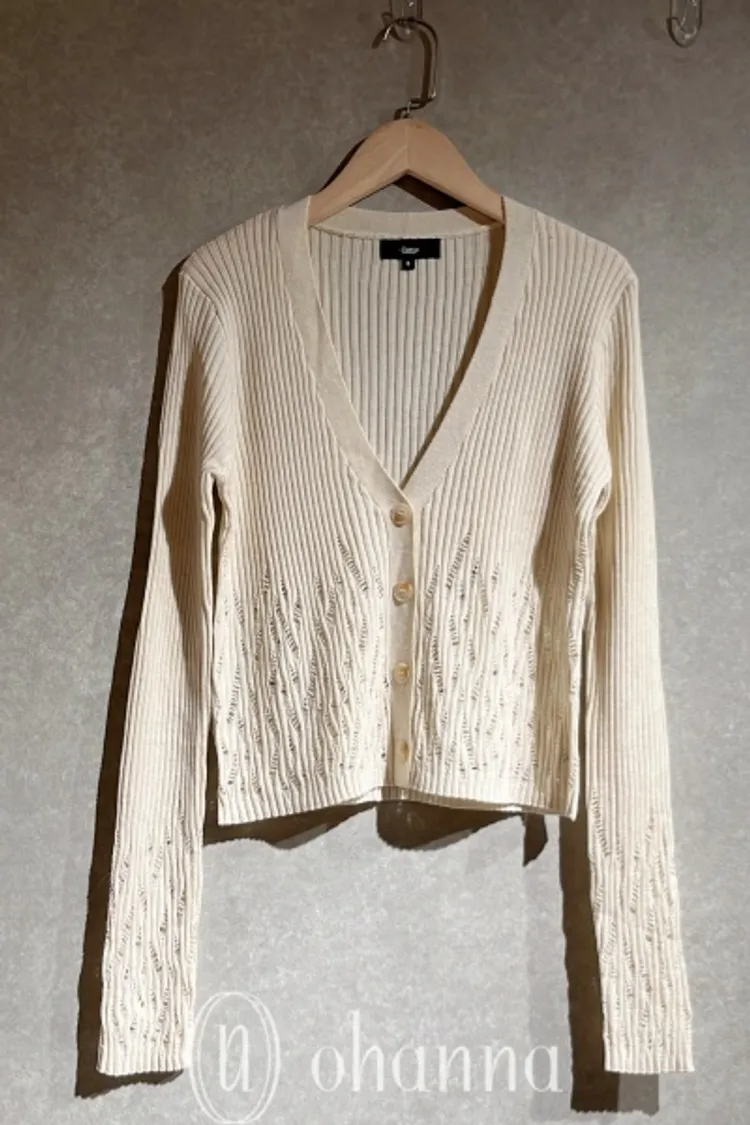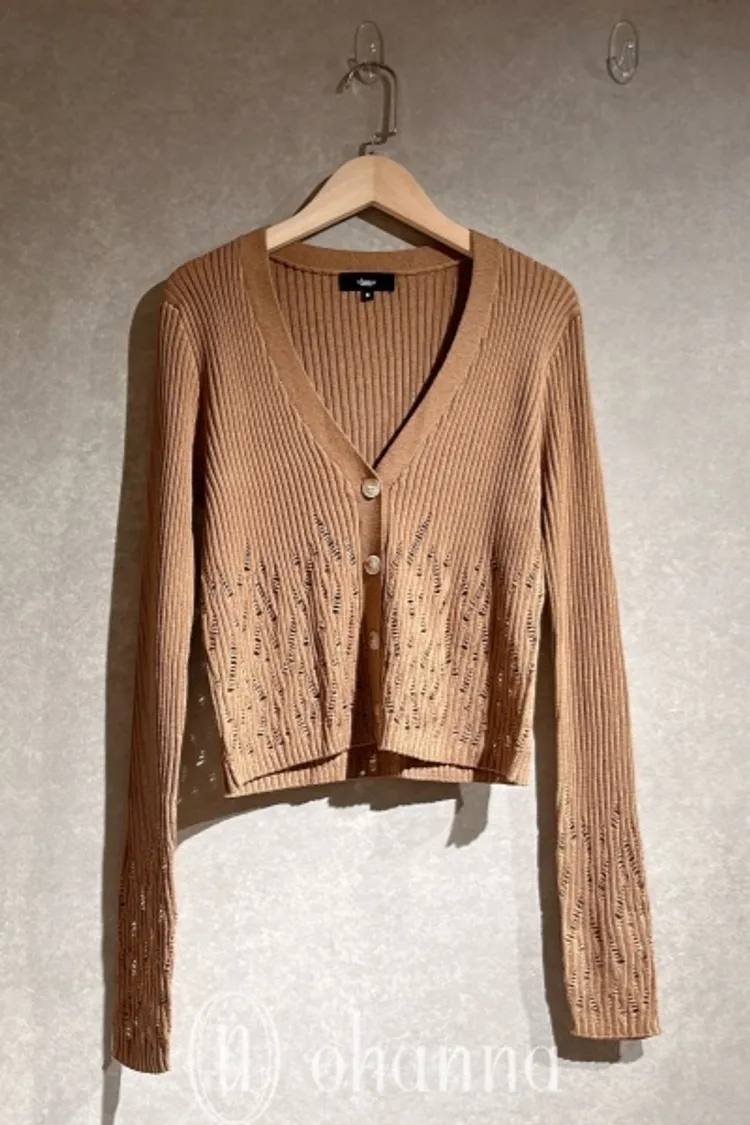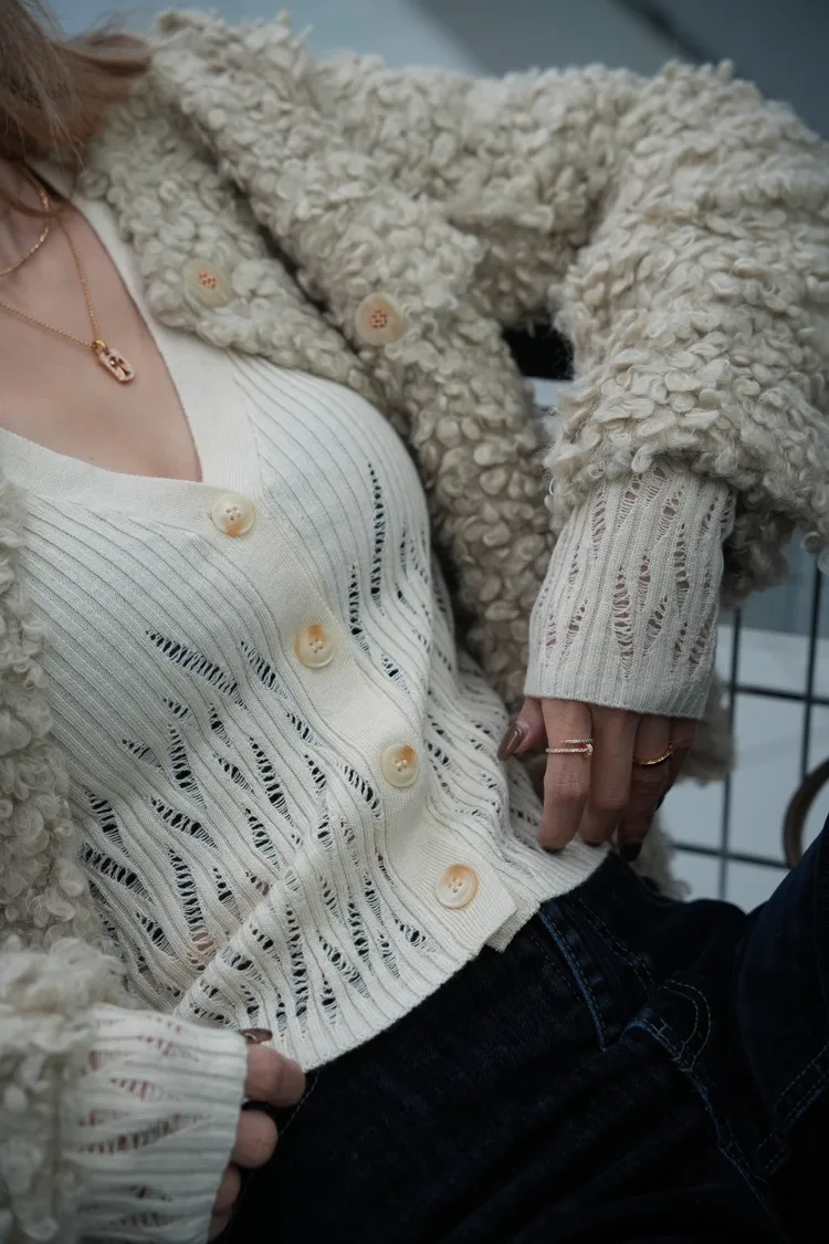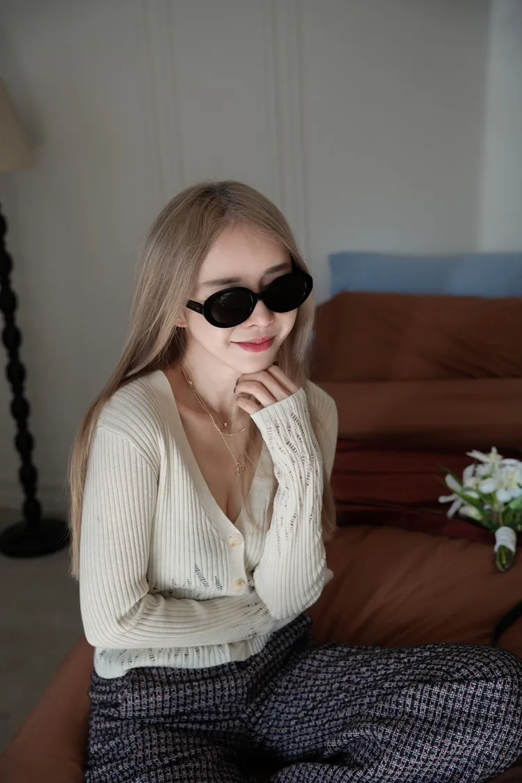 U141(自訂款)坑條下擺簍空針織排扣上衣