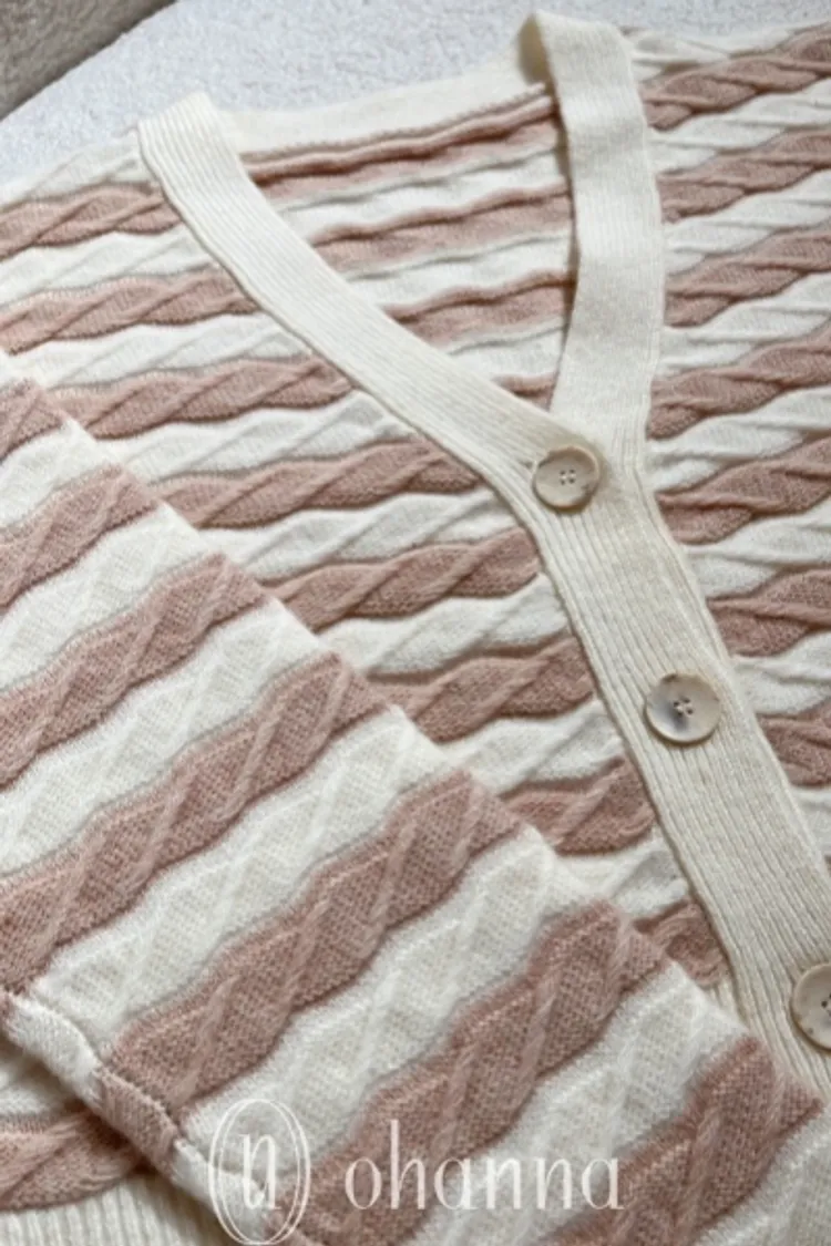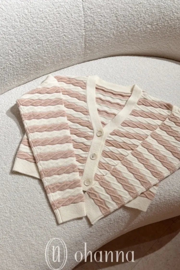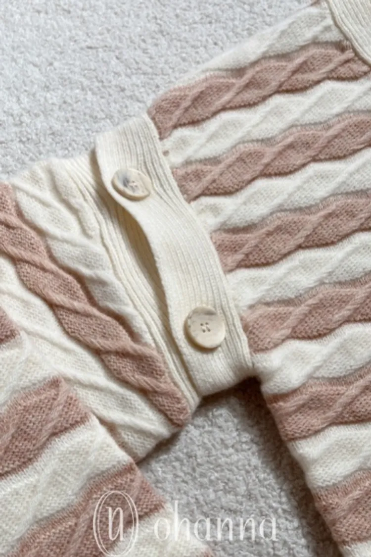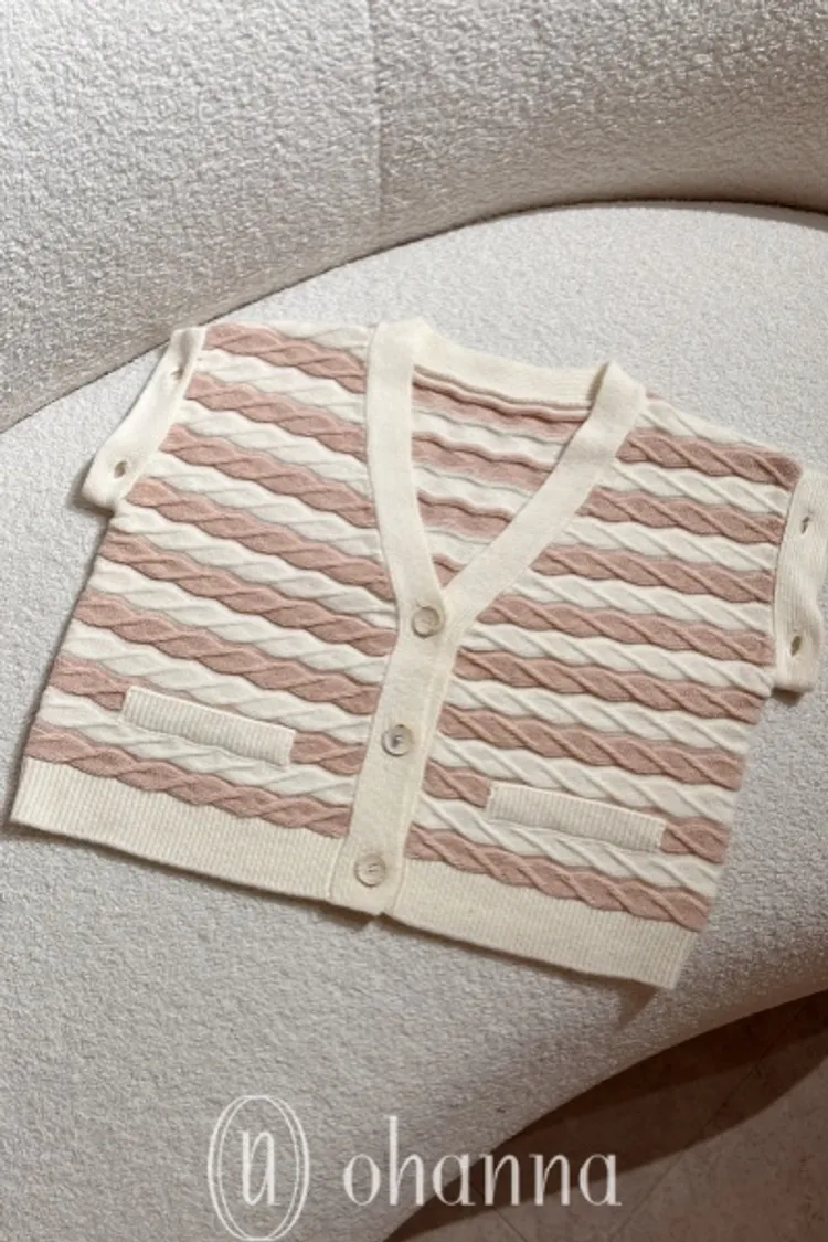 U142(自訂款)米杏橫條袖可拆針織上衣