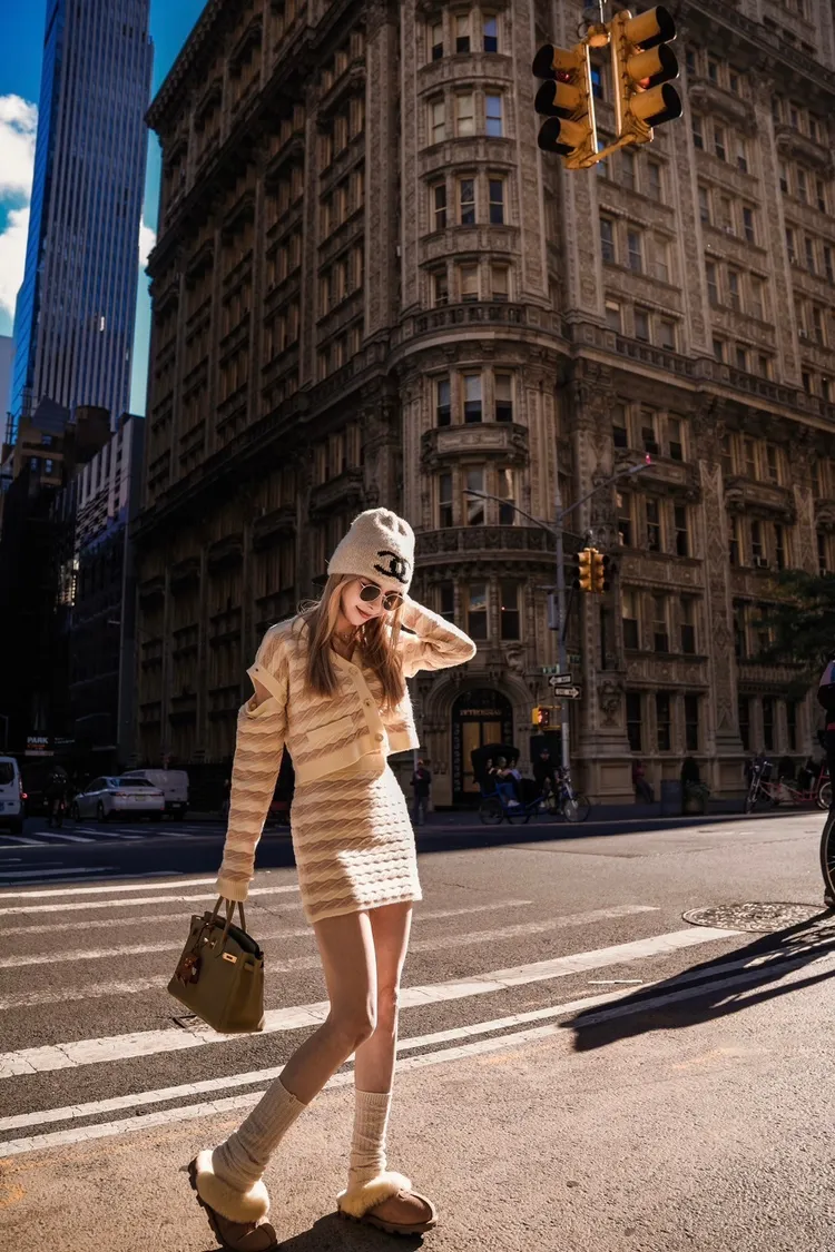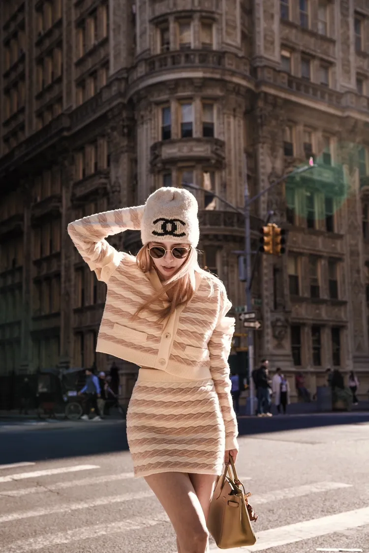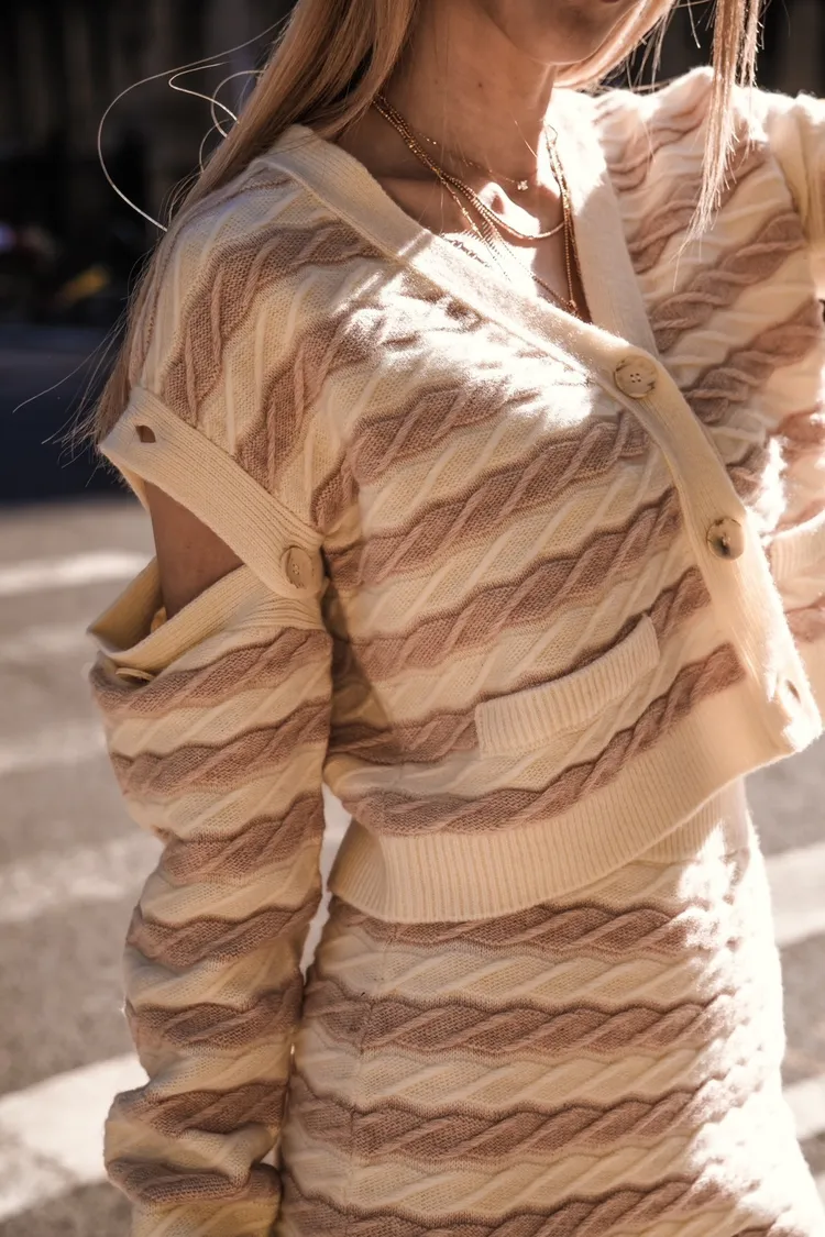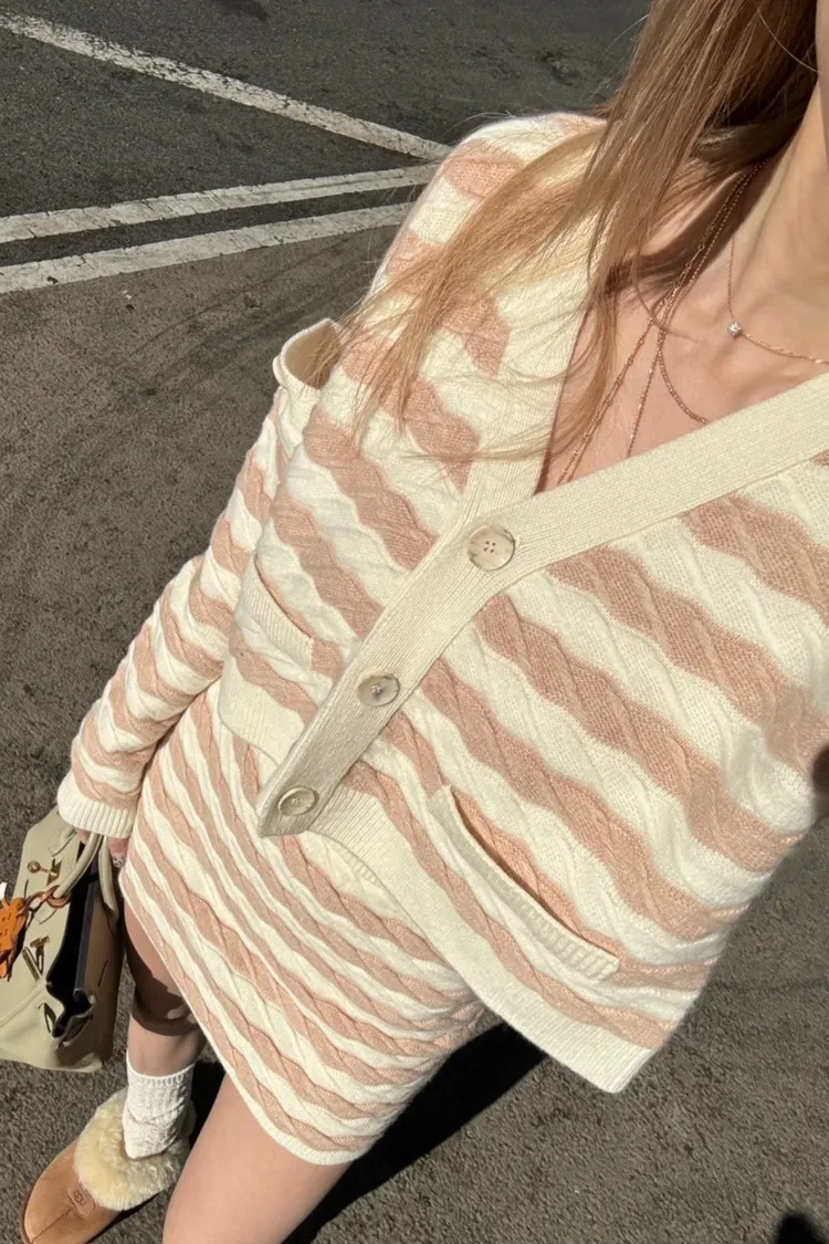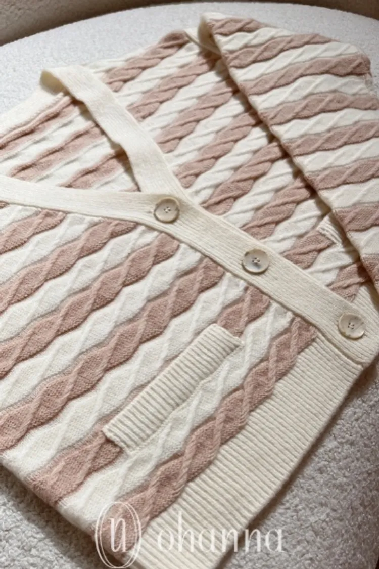 U142(自訂款)米杏橫條袖可拆針織上衣