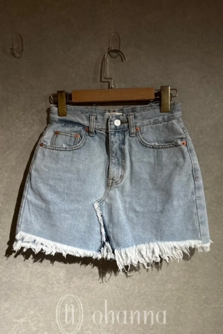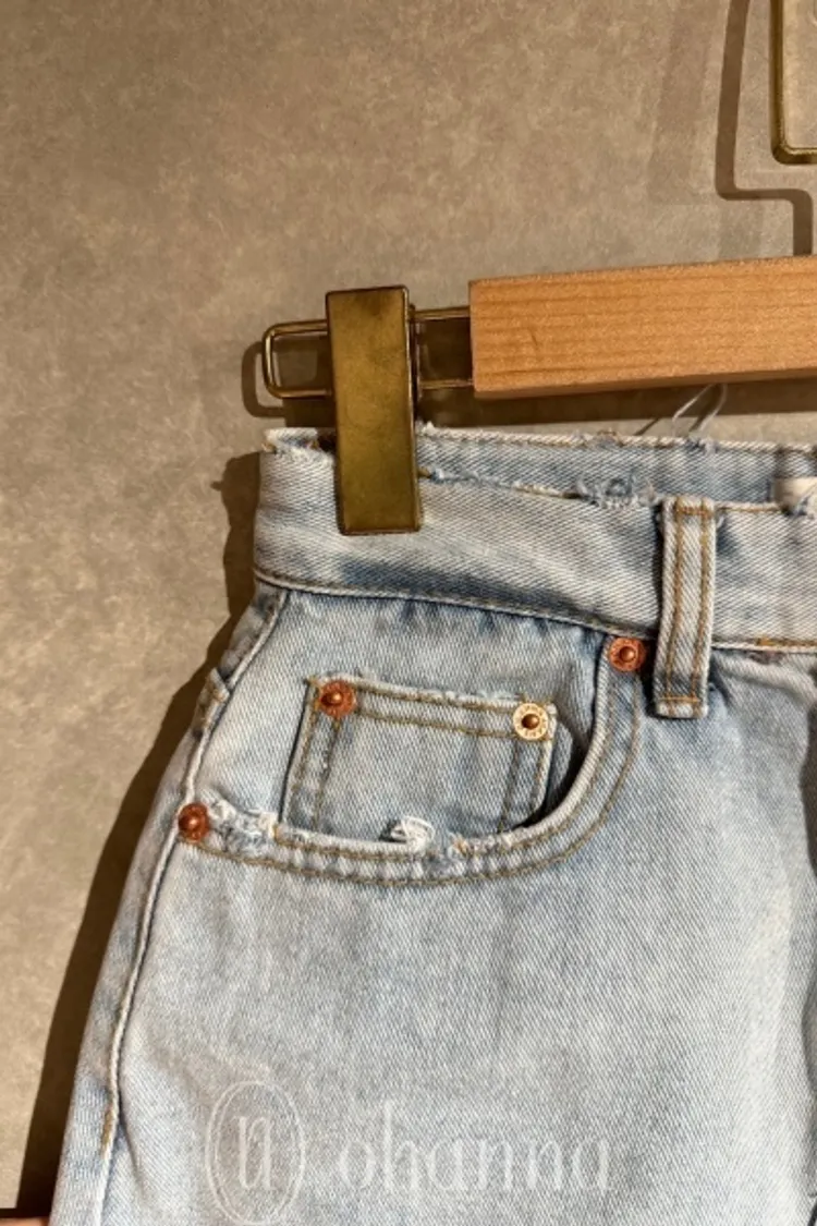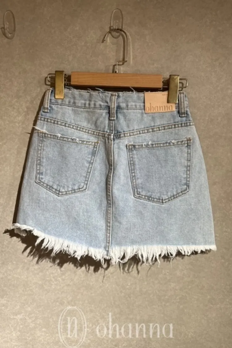 U153(自訂款)淺藍褲頭破損鬚鬚褲裙