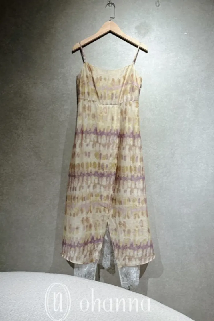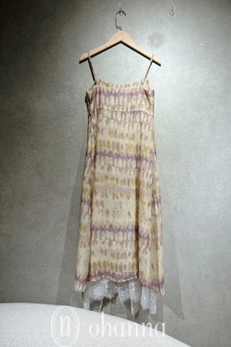 A004(自訂款)綠紫圖案內接白蕾絲細肩帶洋裝