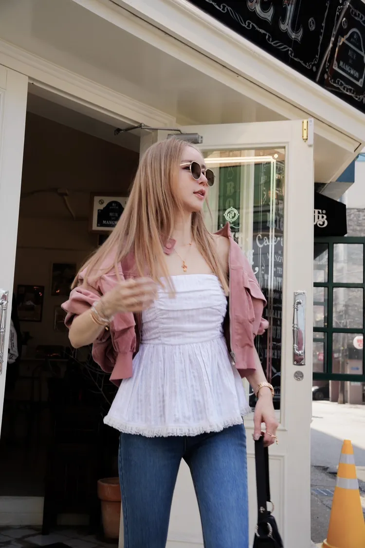 A018(自訂款)胸抓皺平口荷葉背心