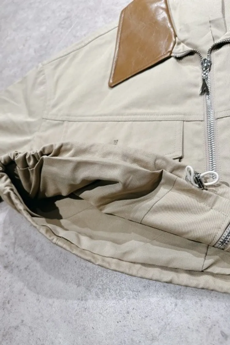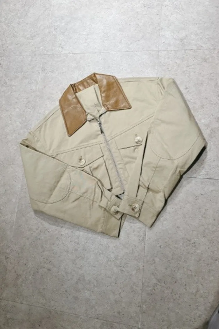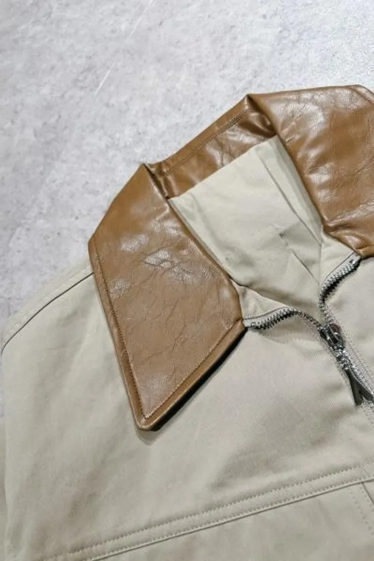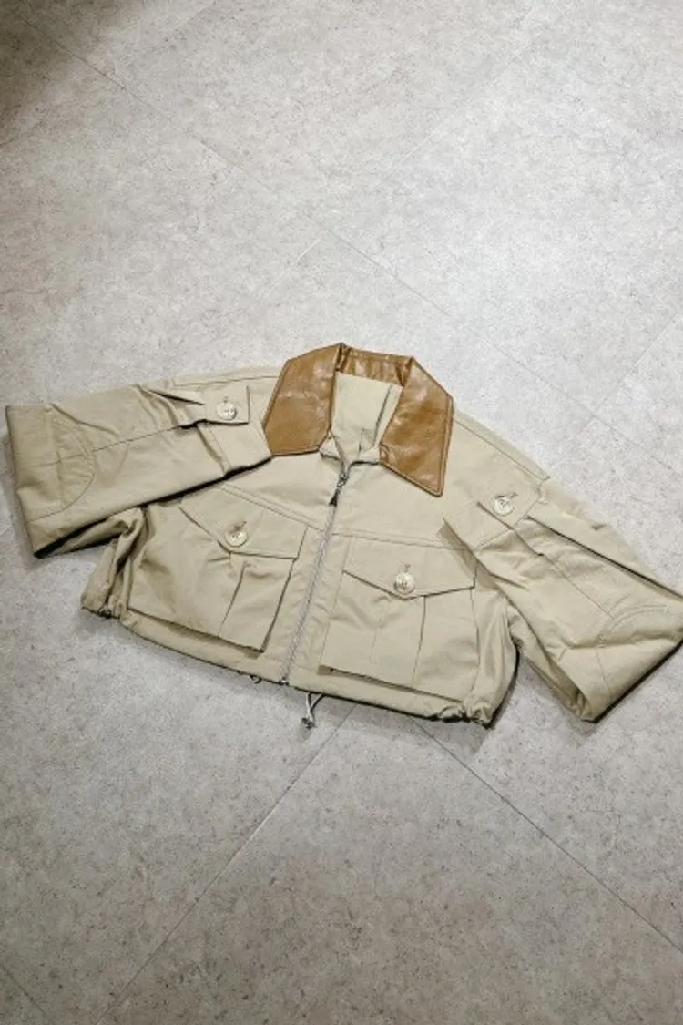 A024(自訂款)卡其拼接領皮革口袋短外套