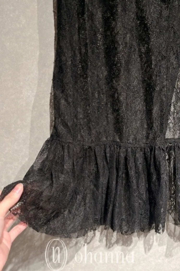 C065(自訂款)黑色假兩件下接蕾絲長裙