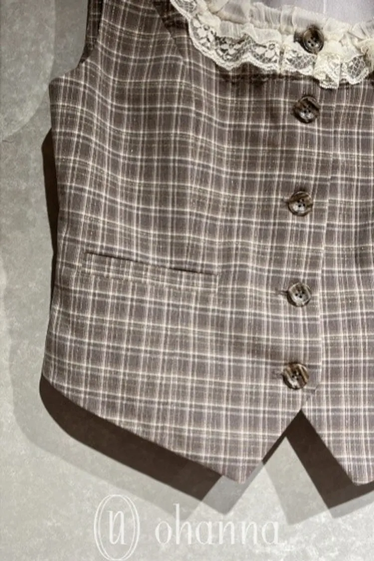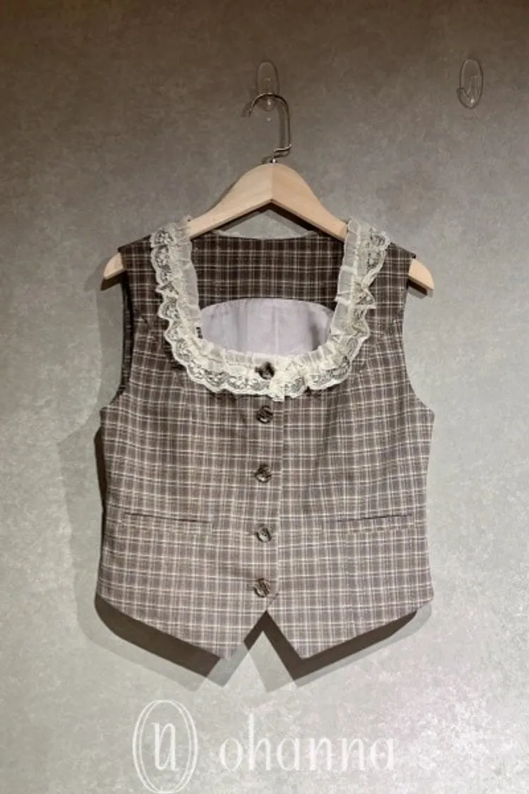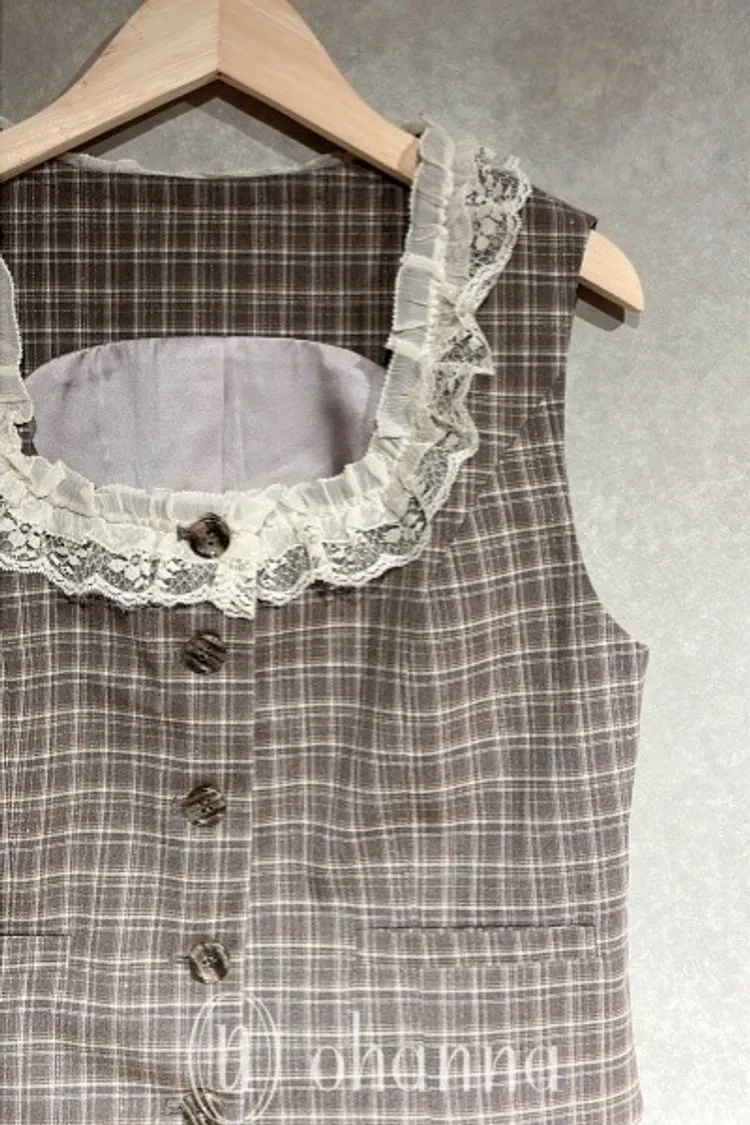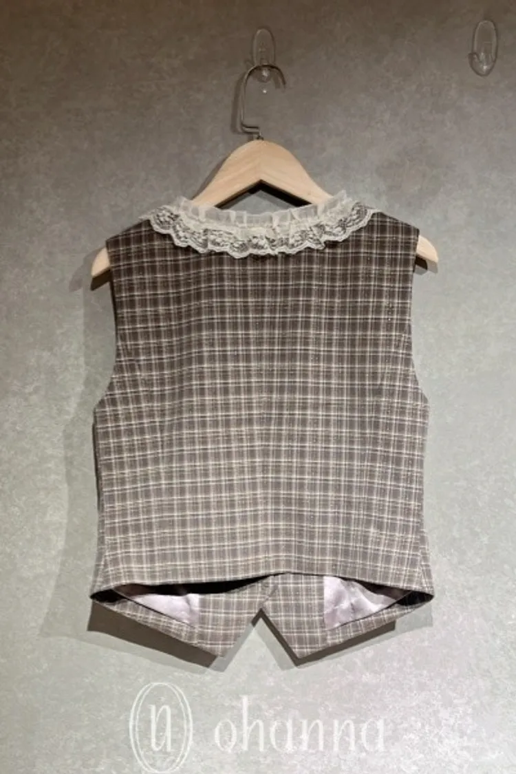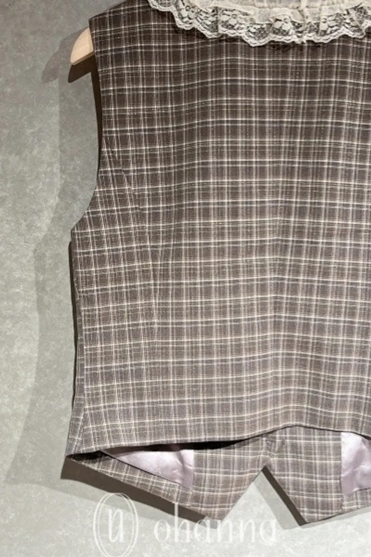 C068(自訂款)格紋領蕾絲排扣西裝背心