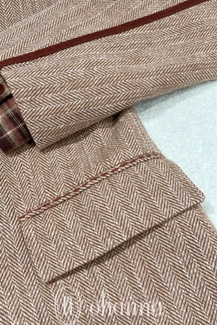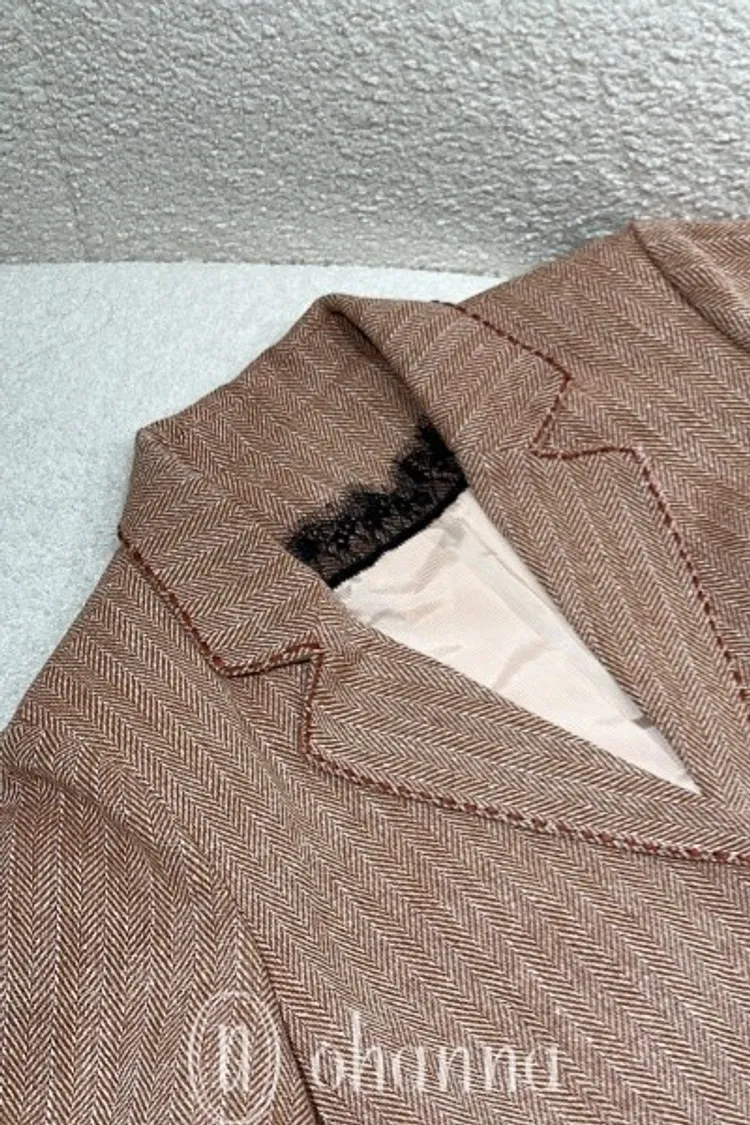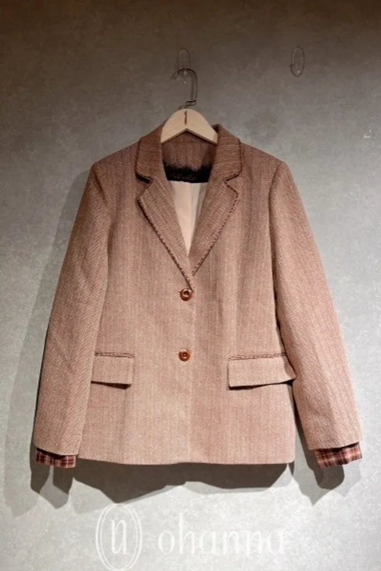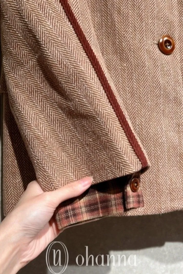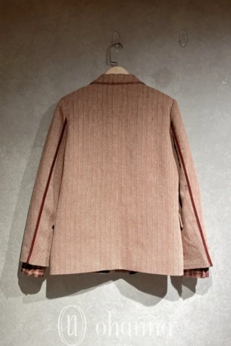 C069(自訂款)領手縫線袖口拼接格紋西裝外套