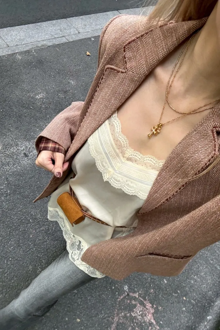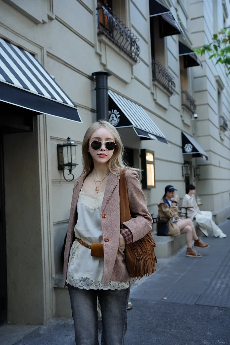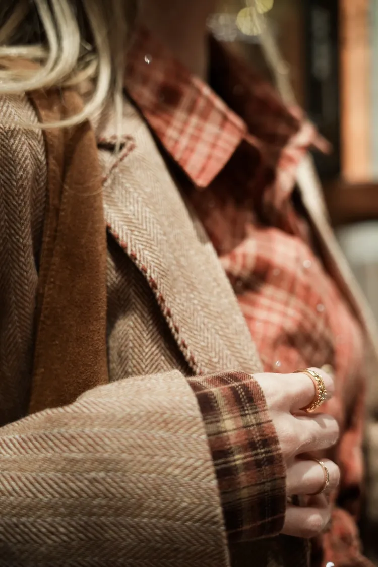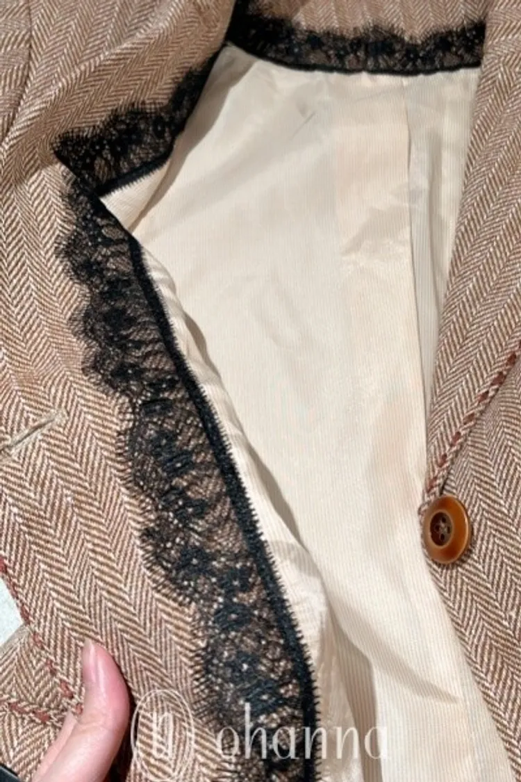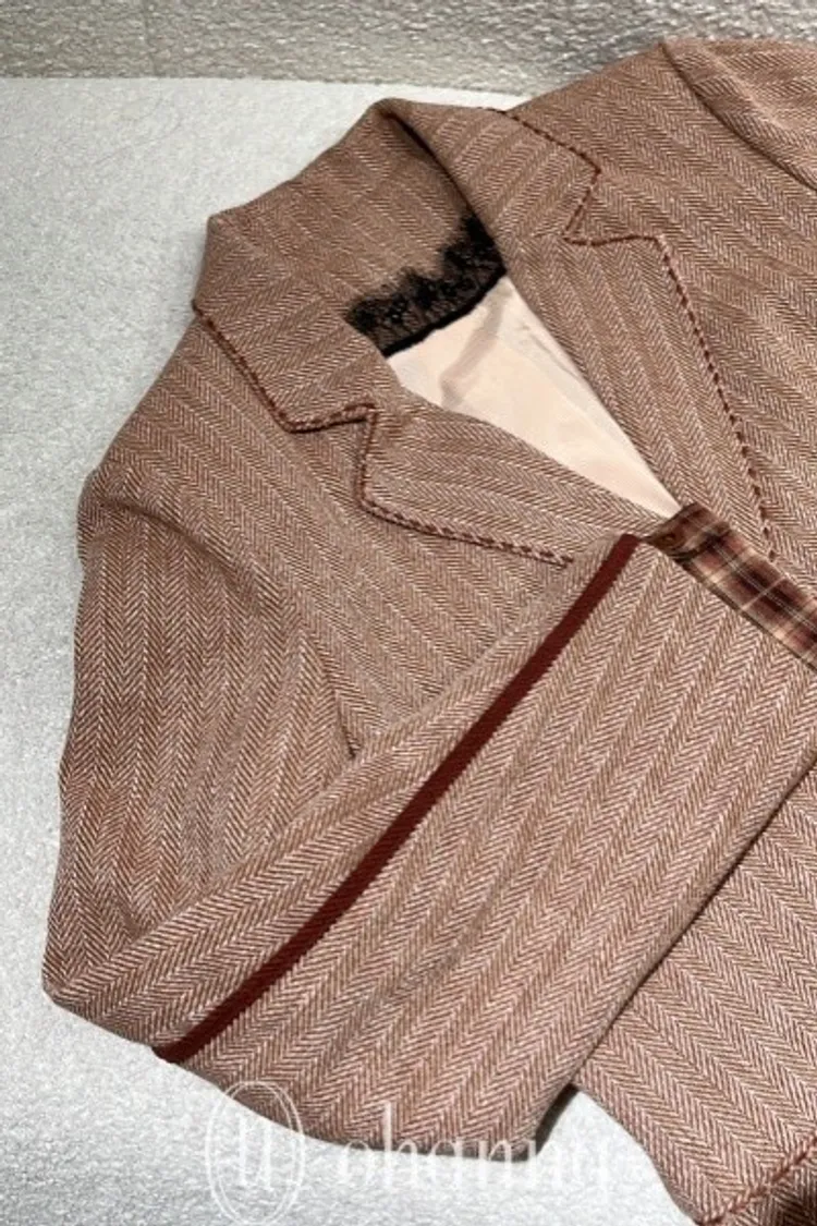 C069(自訂款)領手縫線袖口拼接格紋西裝外套