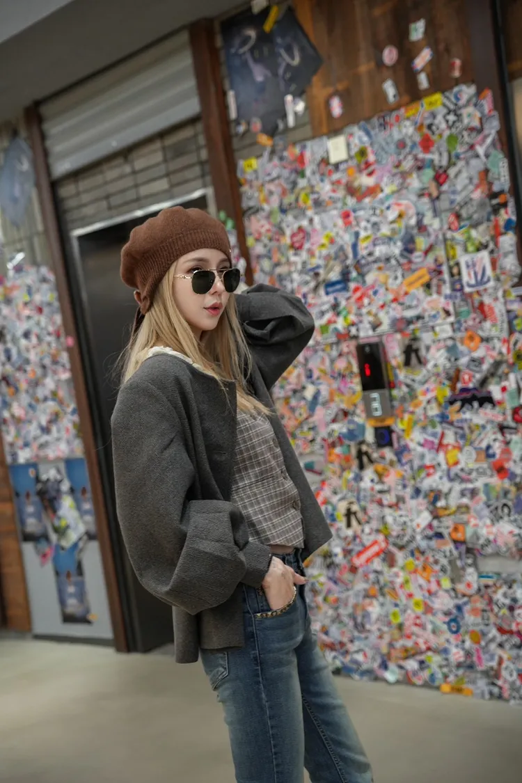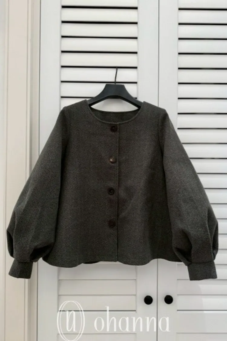 C096(自訂款)灰色袖壓折腰綁帶外套